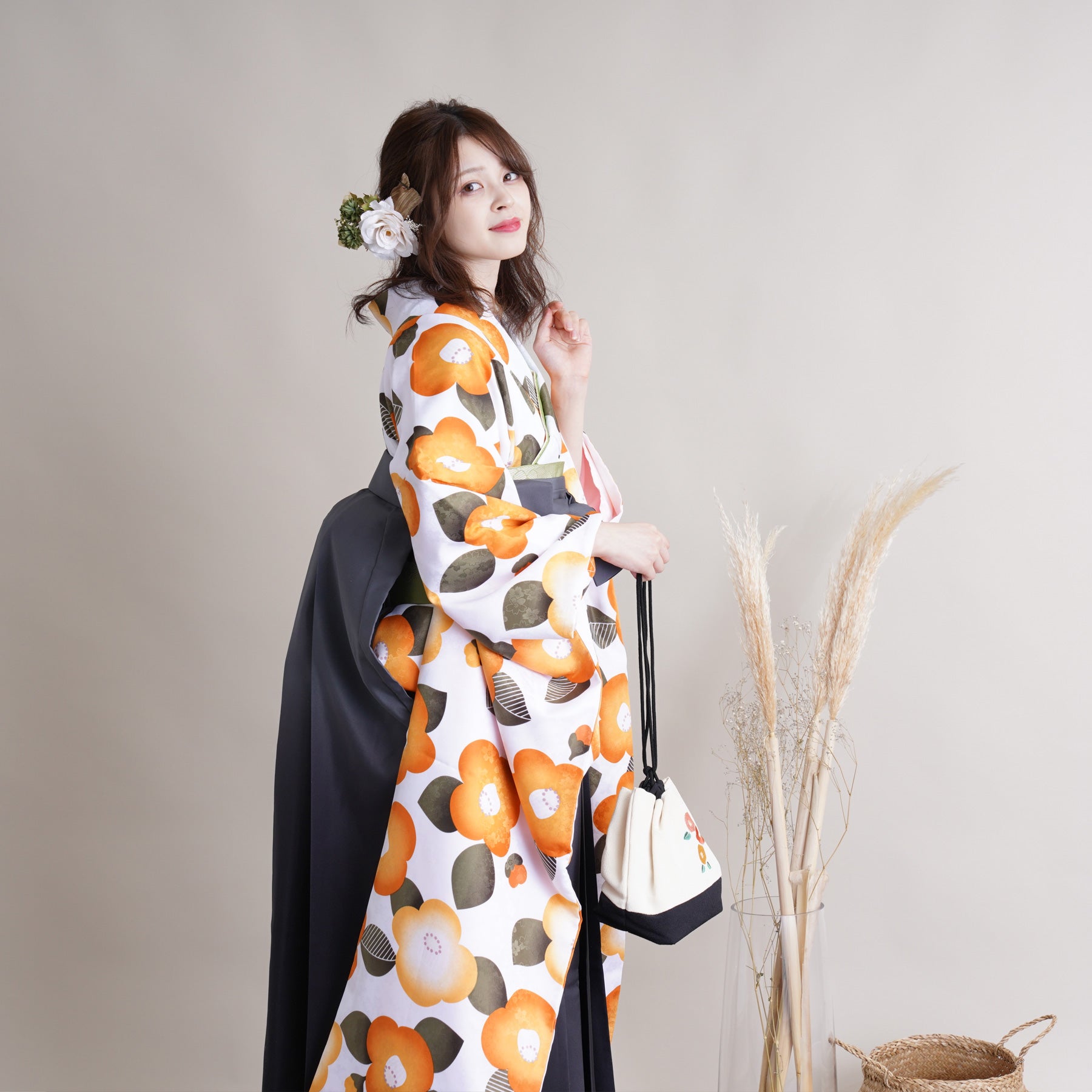 【リサイクル着物】 振袖+袴 2点セット 販売品 中古 USED ツバキ 袴91cm(身長153-158cm)卒業式 大学生 ひよこ商店(5182602311)【中古販売】