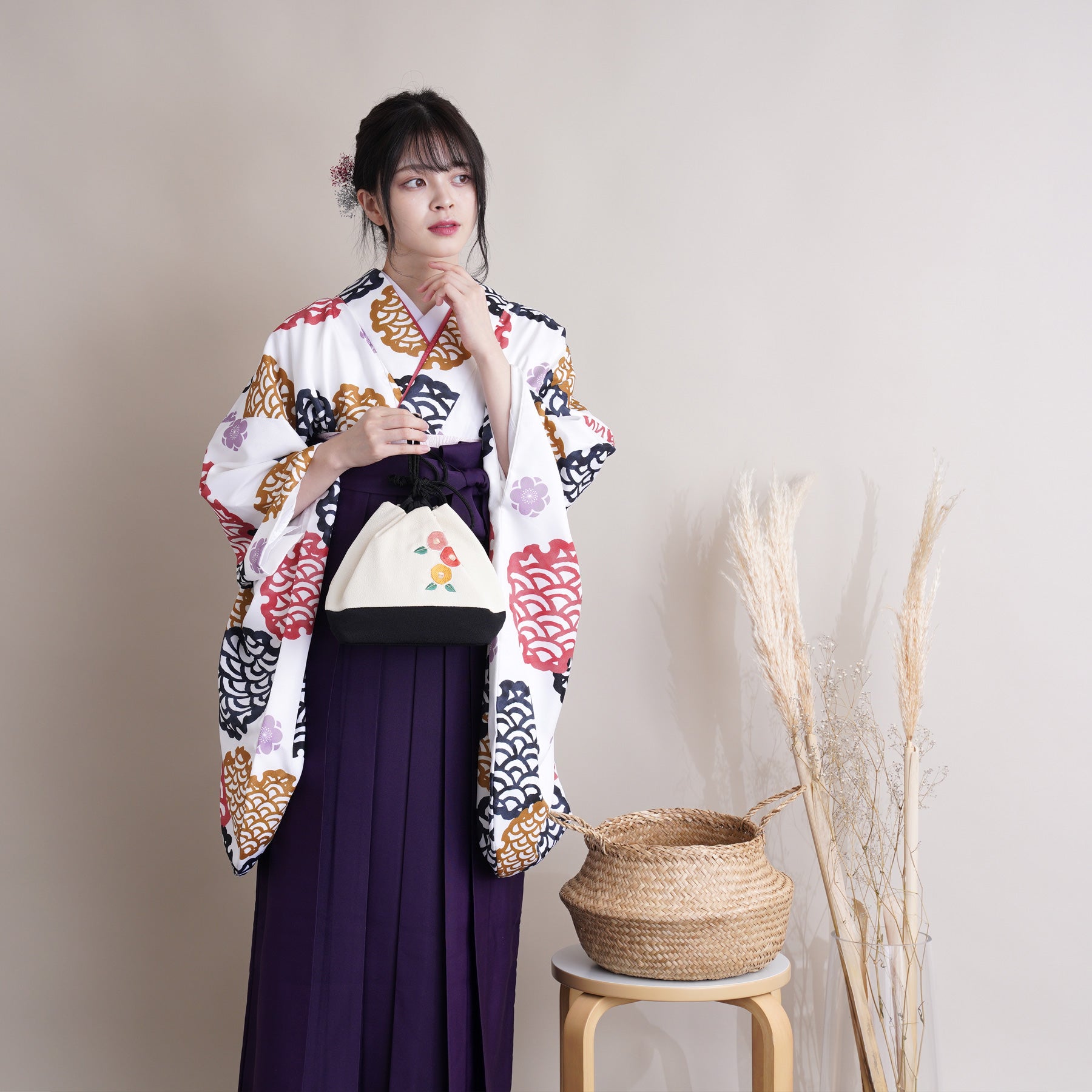 【リサイクル着物】 2尺袖着物 袴 2点セット 販売品 中古 USED 白系 雪輪 袴91cm(身長153-158cm)卒業式 大学生 (5182620111)【中古販売】