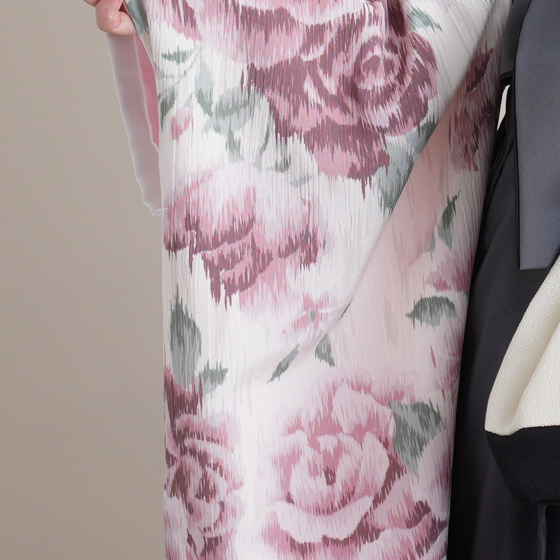 【リサイクル着物】 2尺袖着物 袴 2点セット 販売品 中古 USED くすみピンク バラ 袴91cm(身長153-158cm)卒業式 大学生 (5182670211)【中古販売】