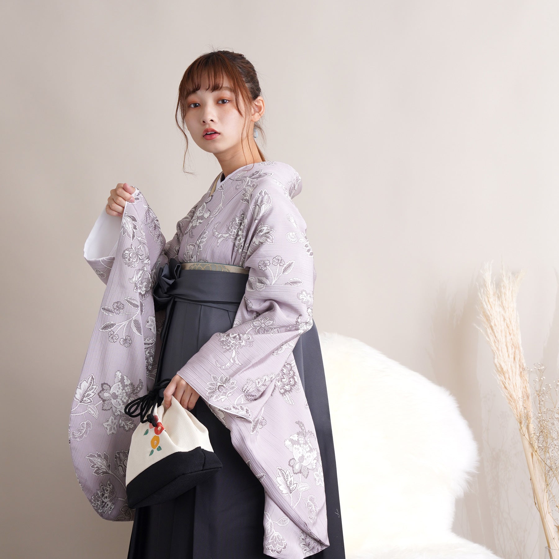 【リサイクル着物】 2尺袖着物 袴 2点セット 販売品 中古 USED  花柄 袴91cm(身長153-158cm)卒業式 大学生 (5182671411)【中古販売】