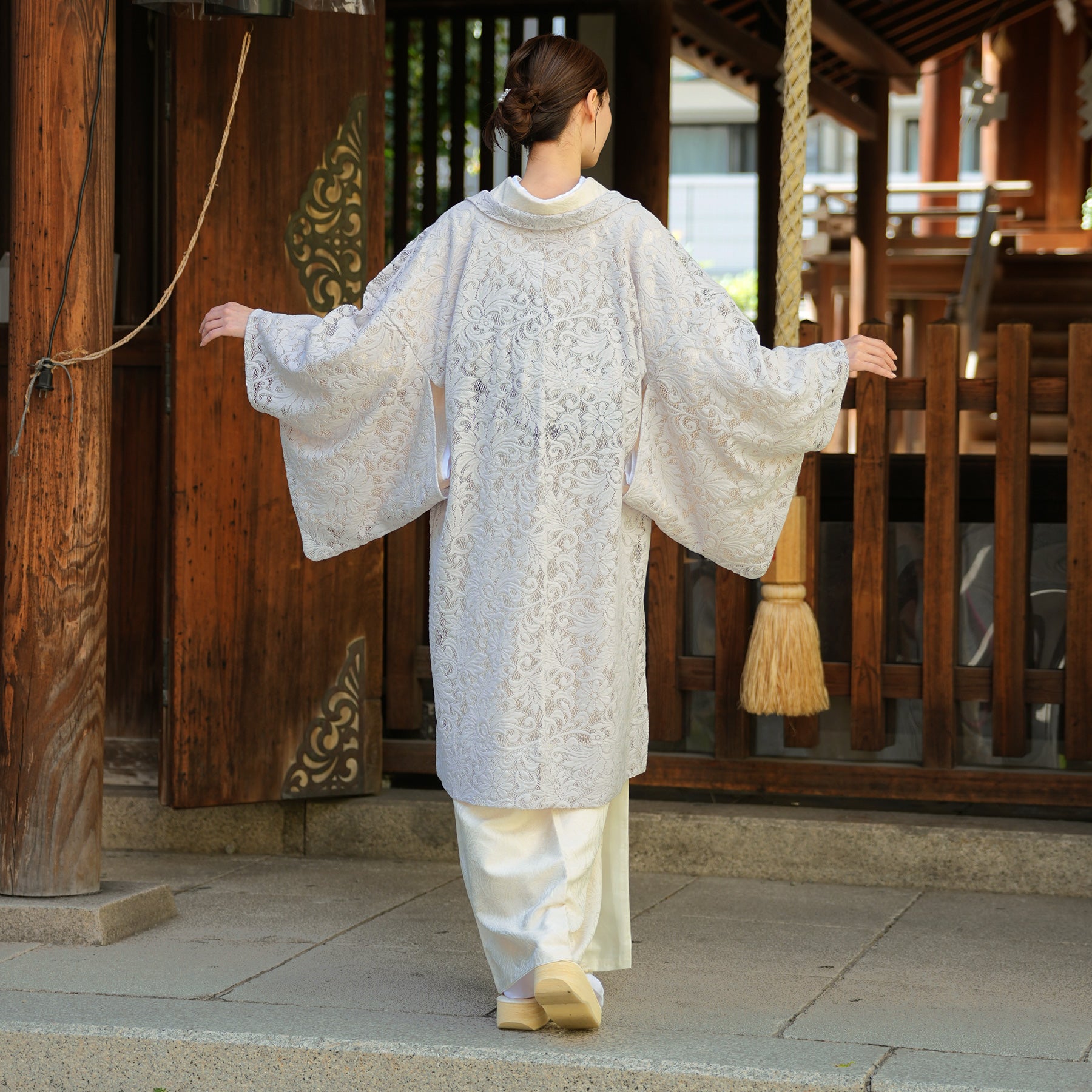 やわらかく、さらりとした肌触りが特徴のミルパレースを使用したレース羽織。