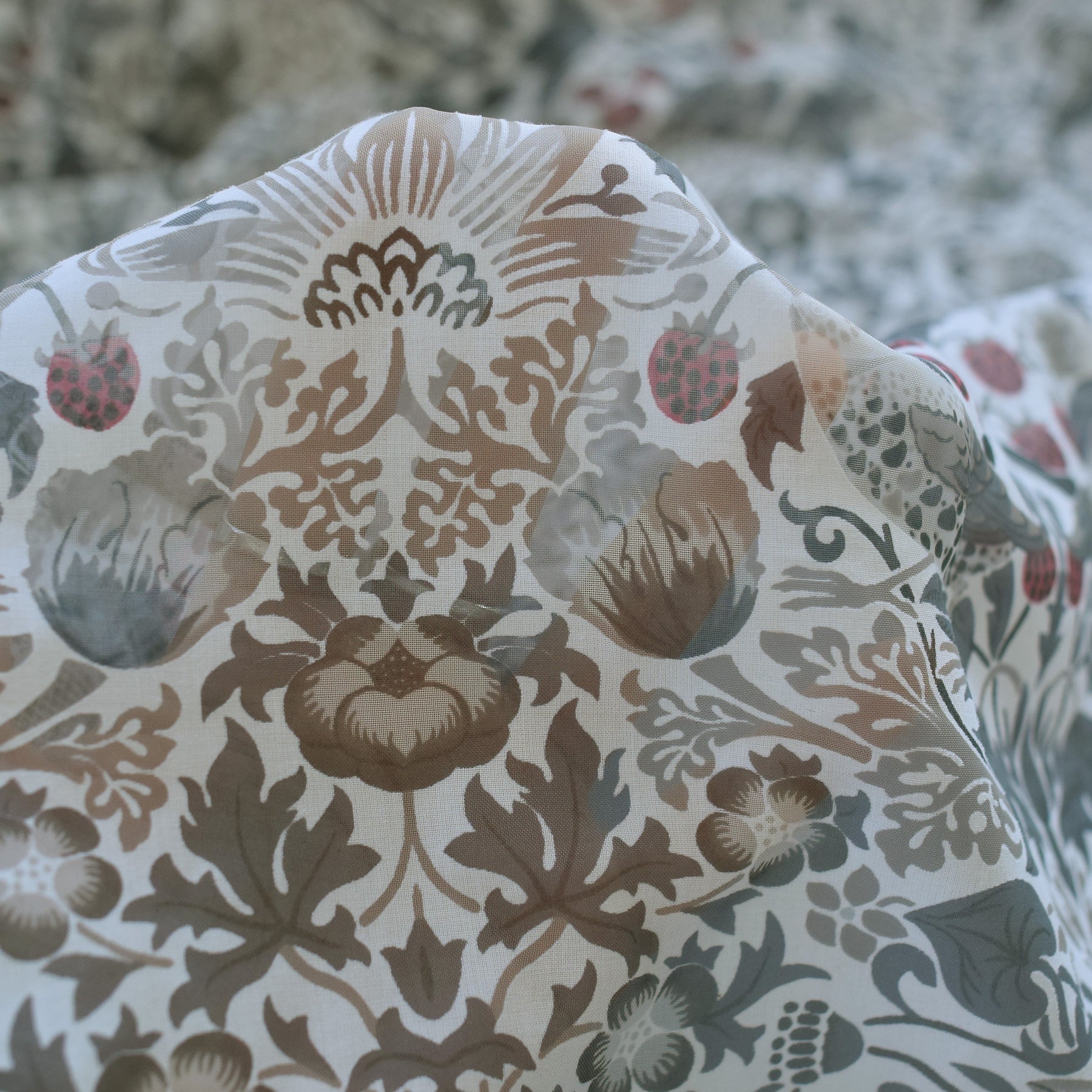 英国の芸術家 ウィリアム・モリスによる代表作「Strawberry Thief(いちご泥棒)」の柄を用いた、