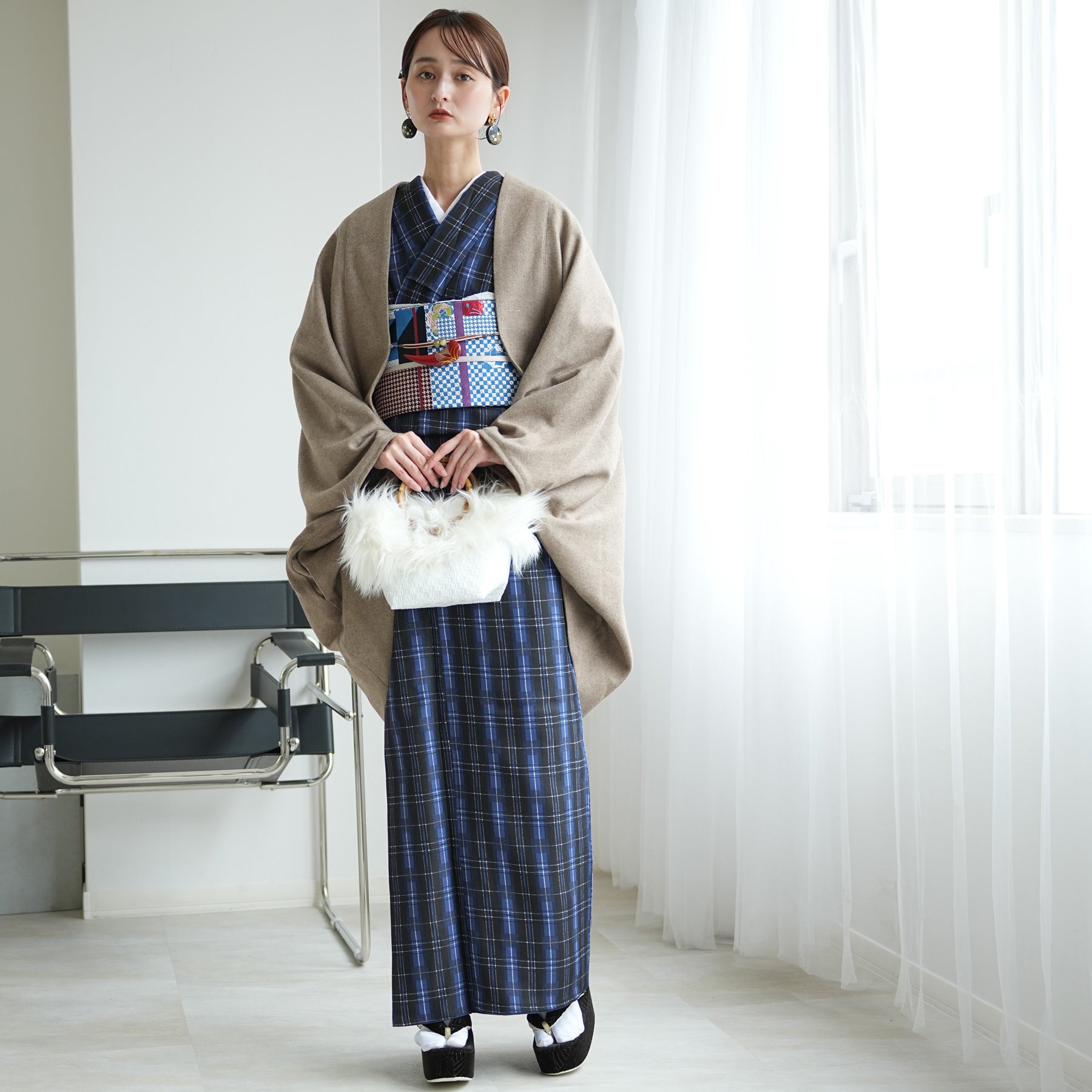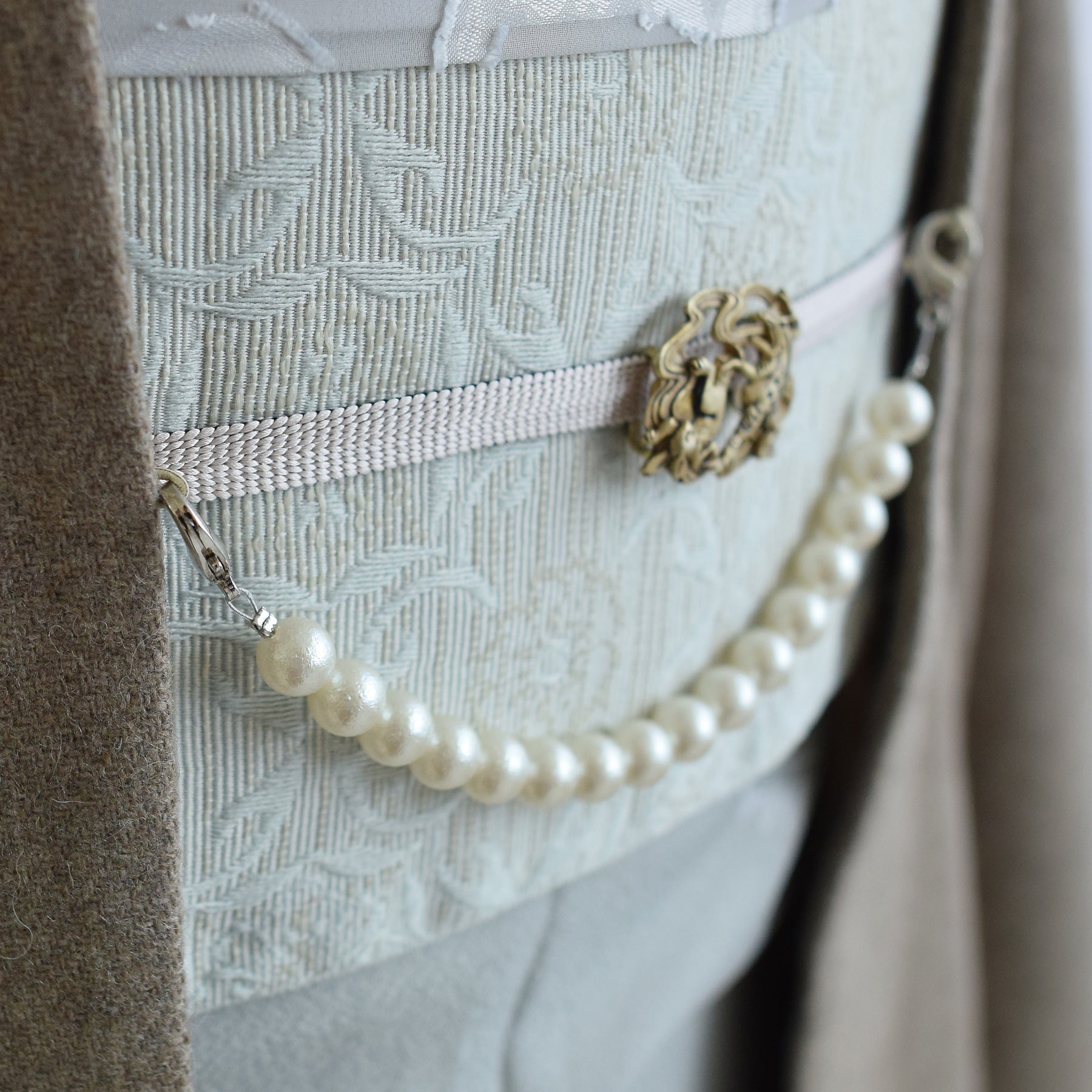 ゆとりのあるサイズ感でお太鼓帯の邪魔にもなりづらく、お洋服の上にも合わせやすいデザインです。