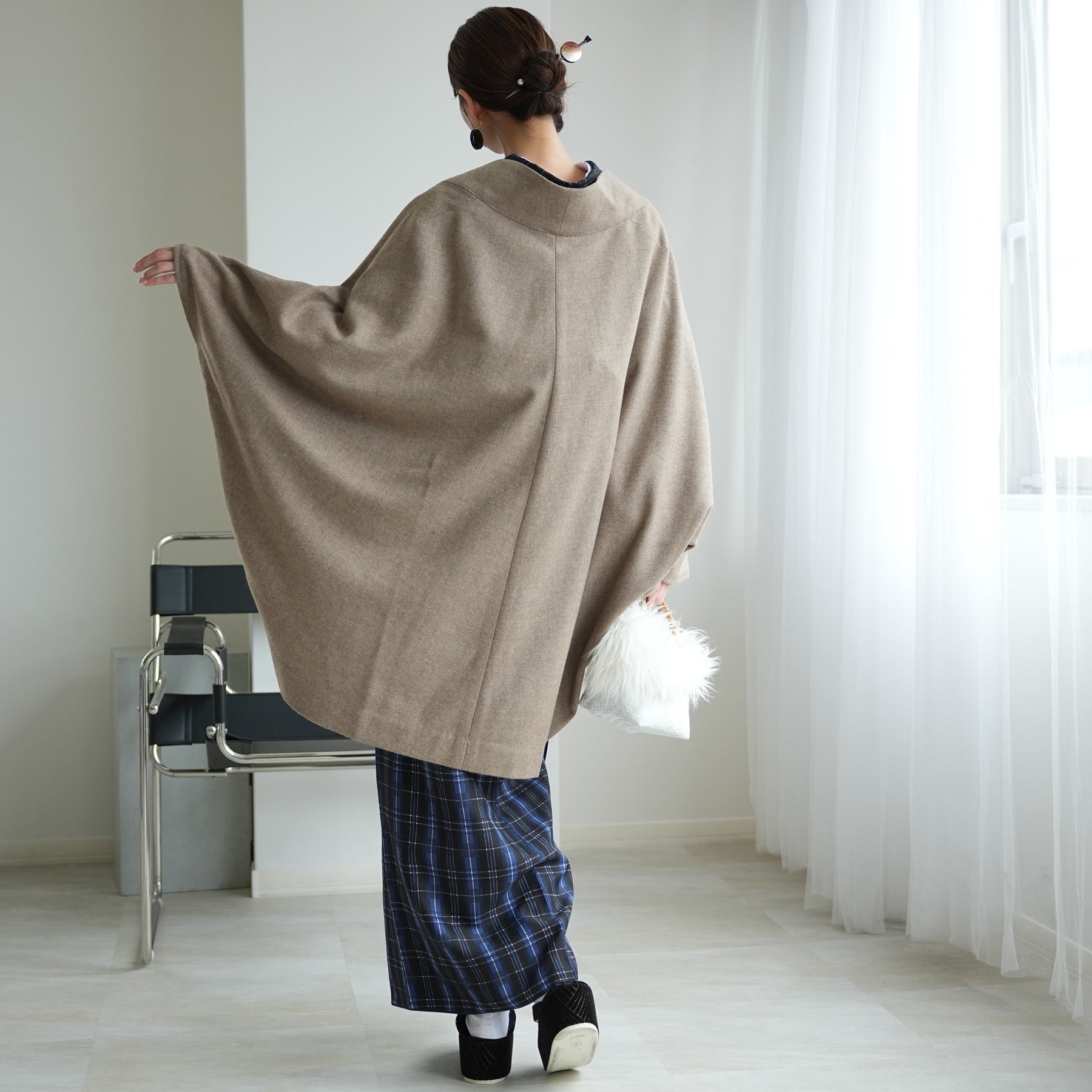 裏地のない単衣仕立てなので秋~冬まで長く防寒にお使いいただけます。