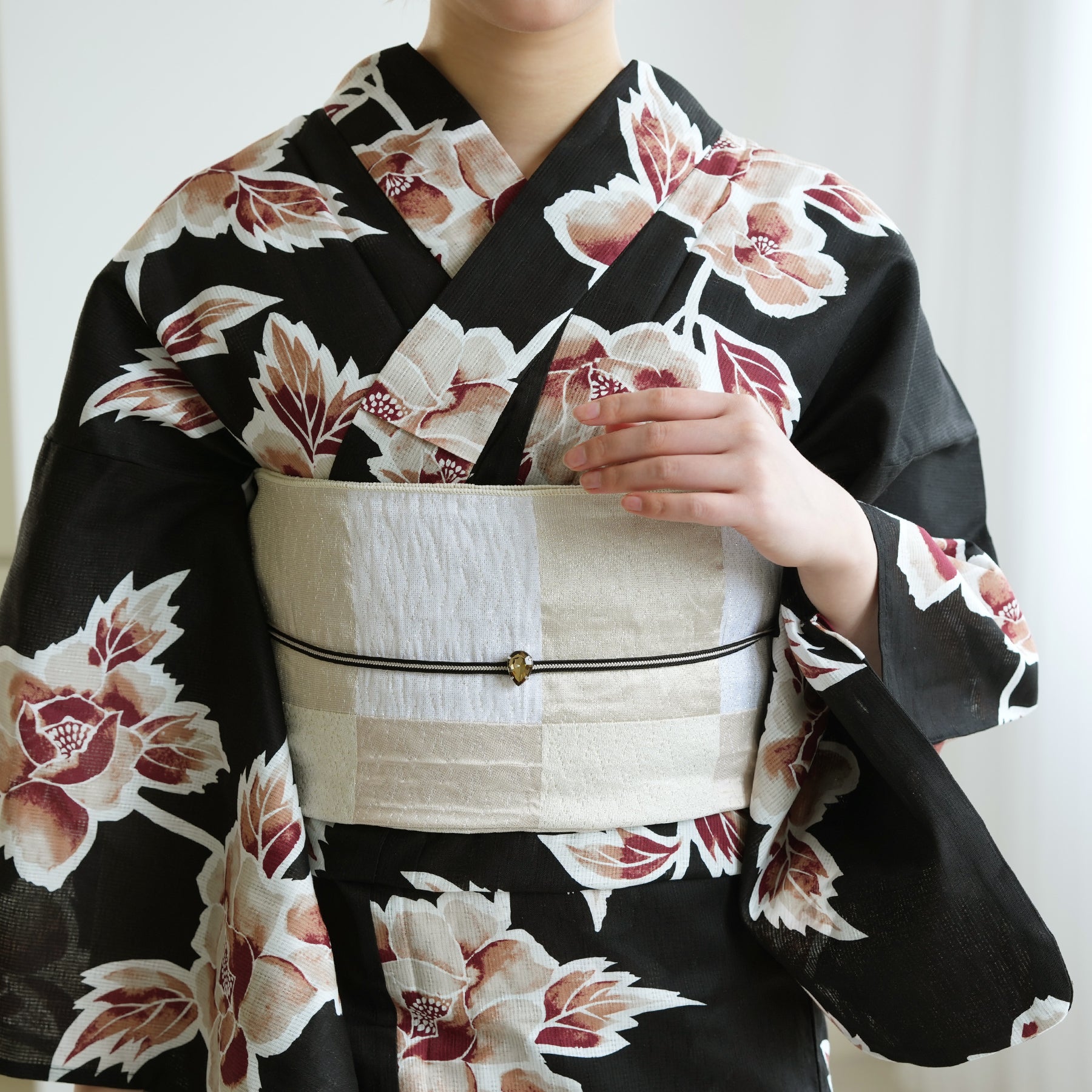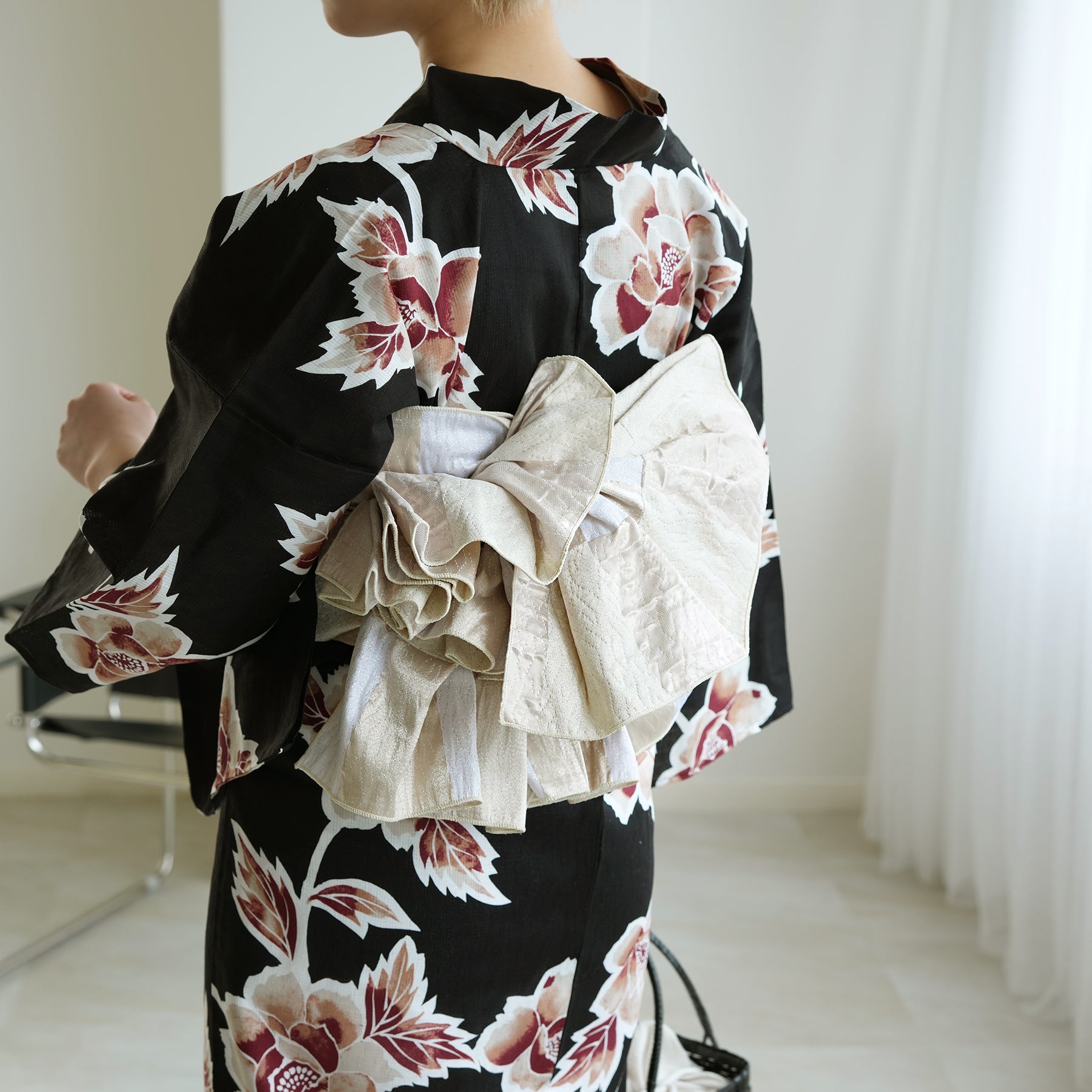 柔らかく結びやすいので、定番の帯結びから変わり結びまで幅広く対応。