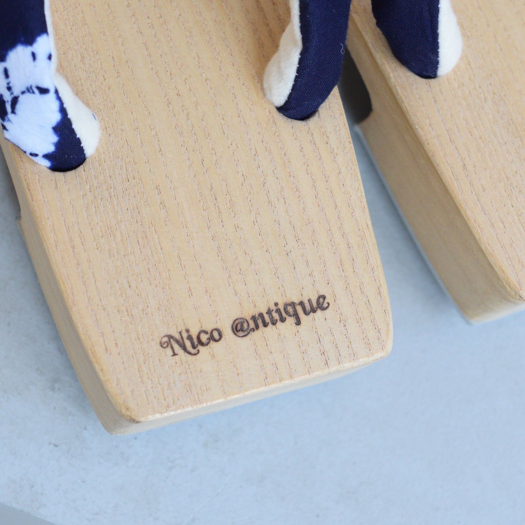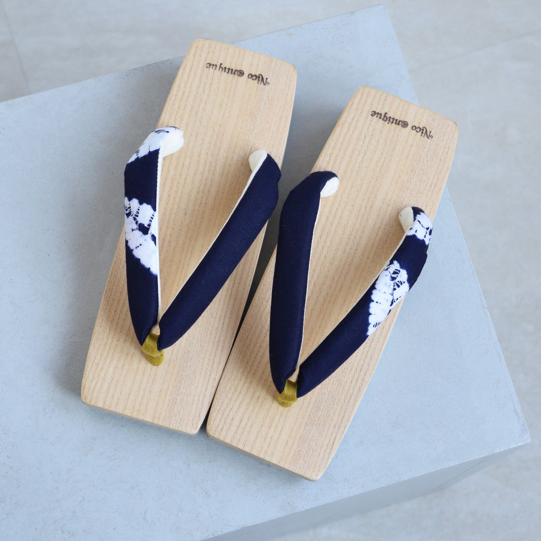 【下駄  角型右近 白木】ニコアンティーク桐下駄 単品 Sサイズ レディース 有松絞り鼻緒 日本製 下駄職人さんの手仕事(5300610700)