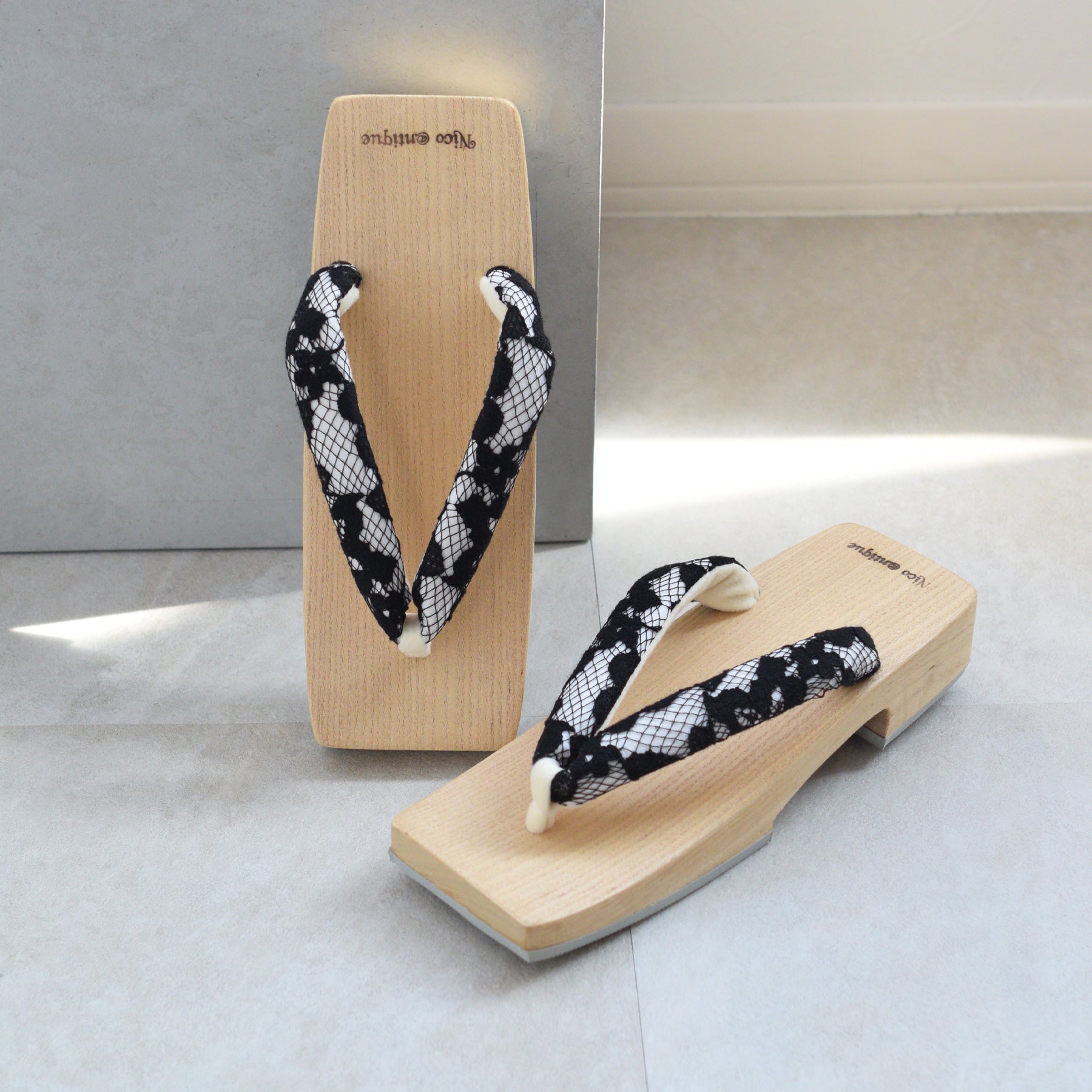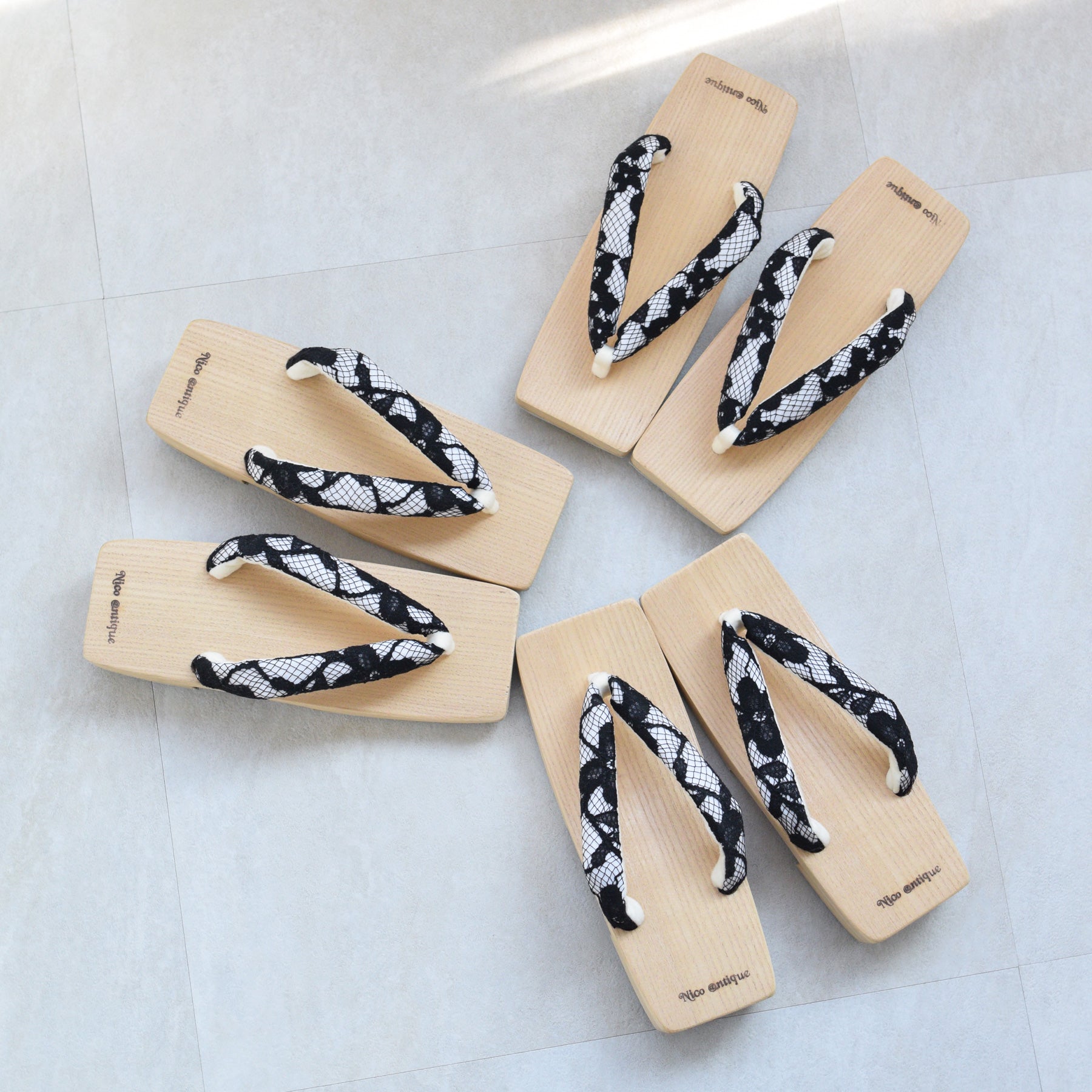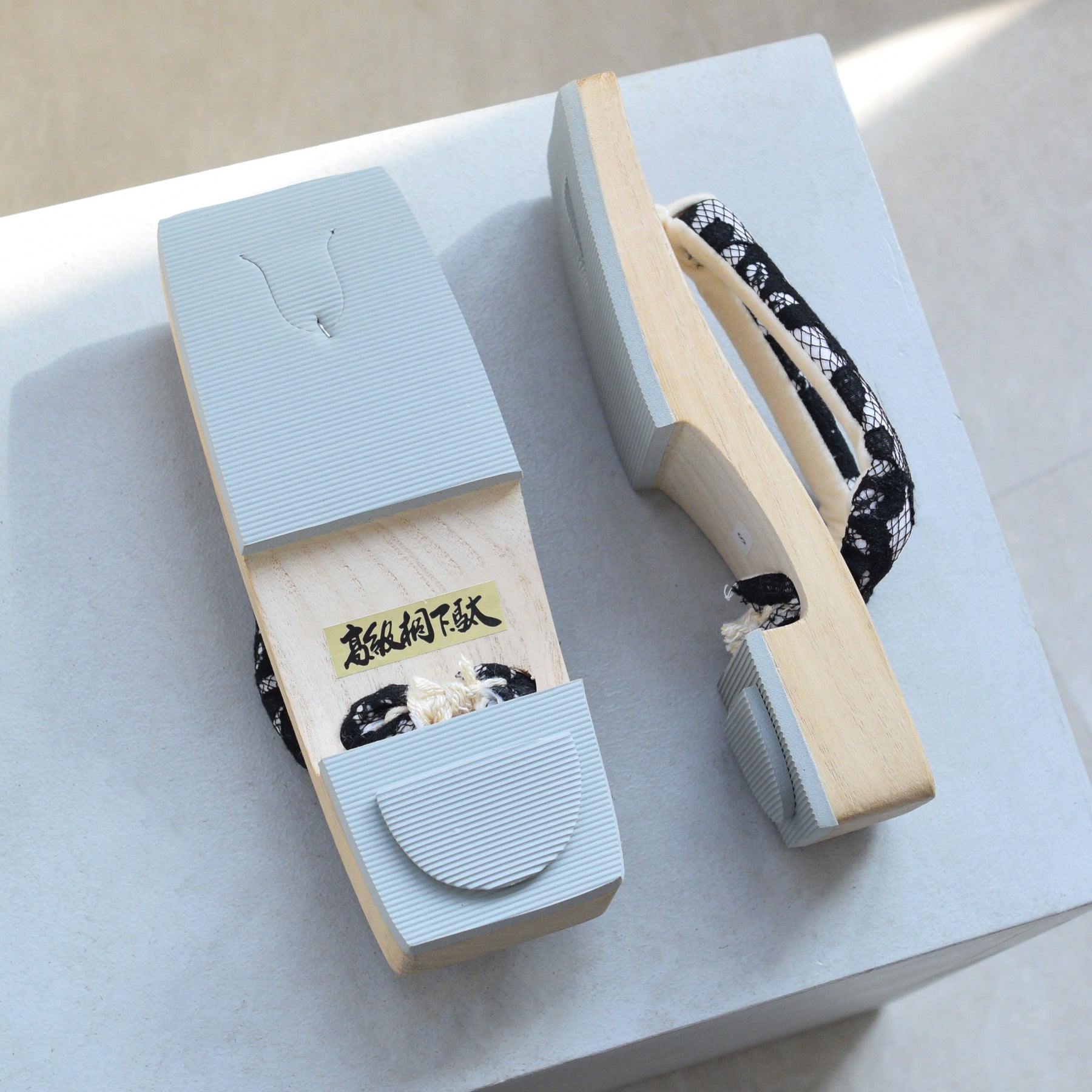 汗を吸収し足裏もベタつきにくいので履き心地が爽やかな白木台座になります。