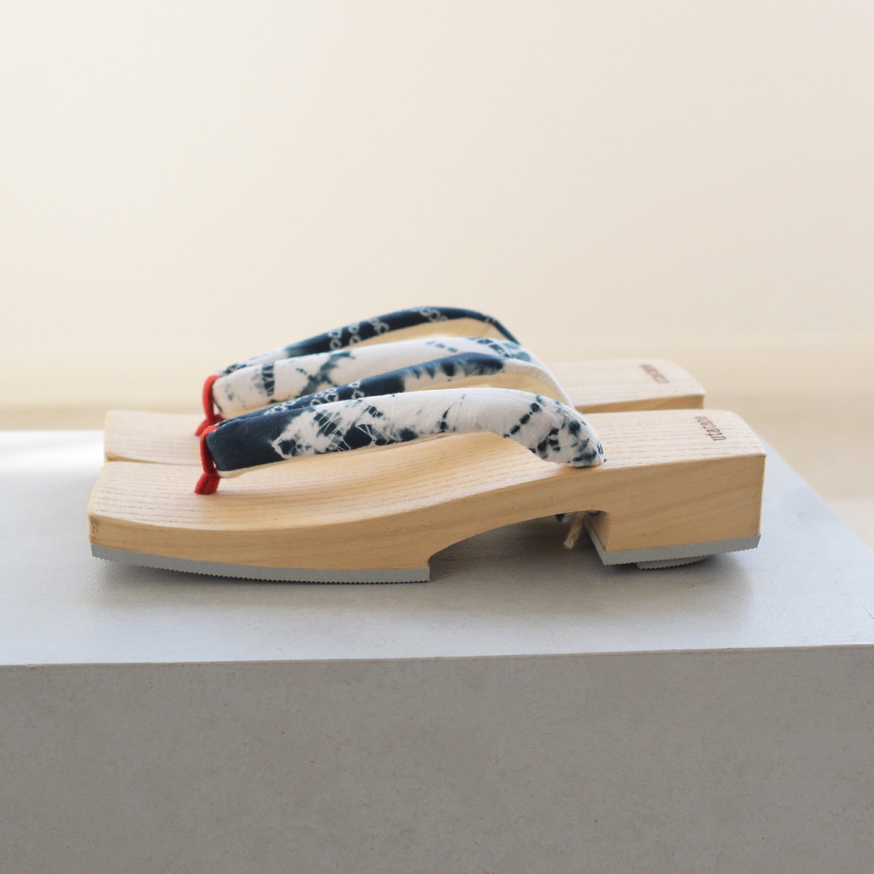 汗を吸収し足裏もベタつきにくいので履き心地が爽やかな白木台座になります。