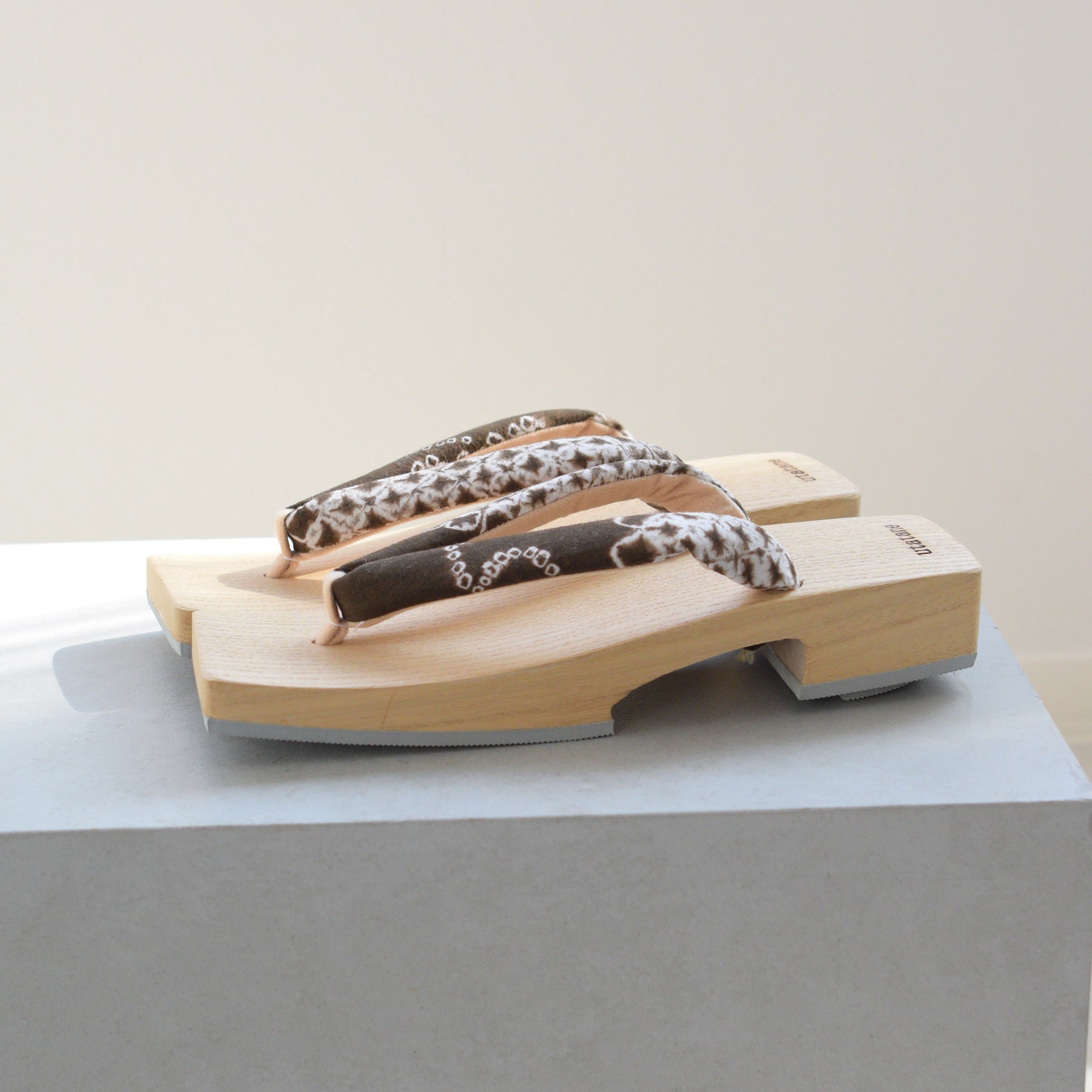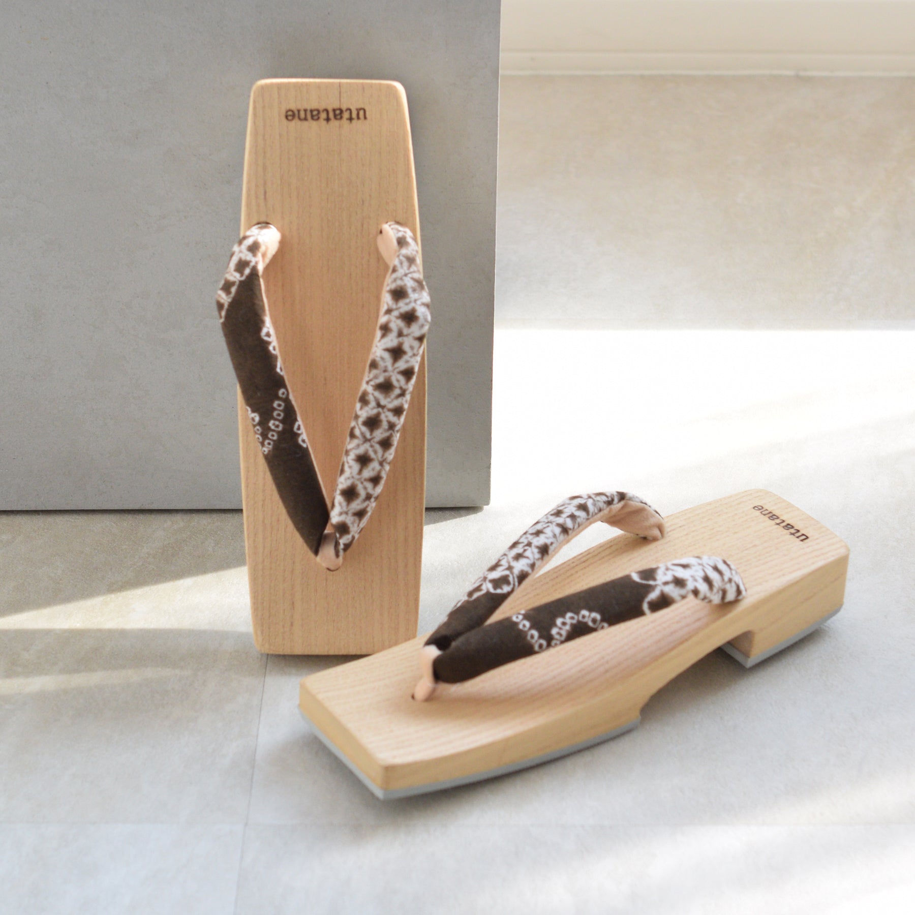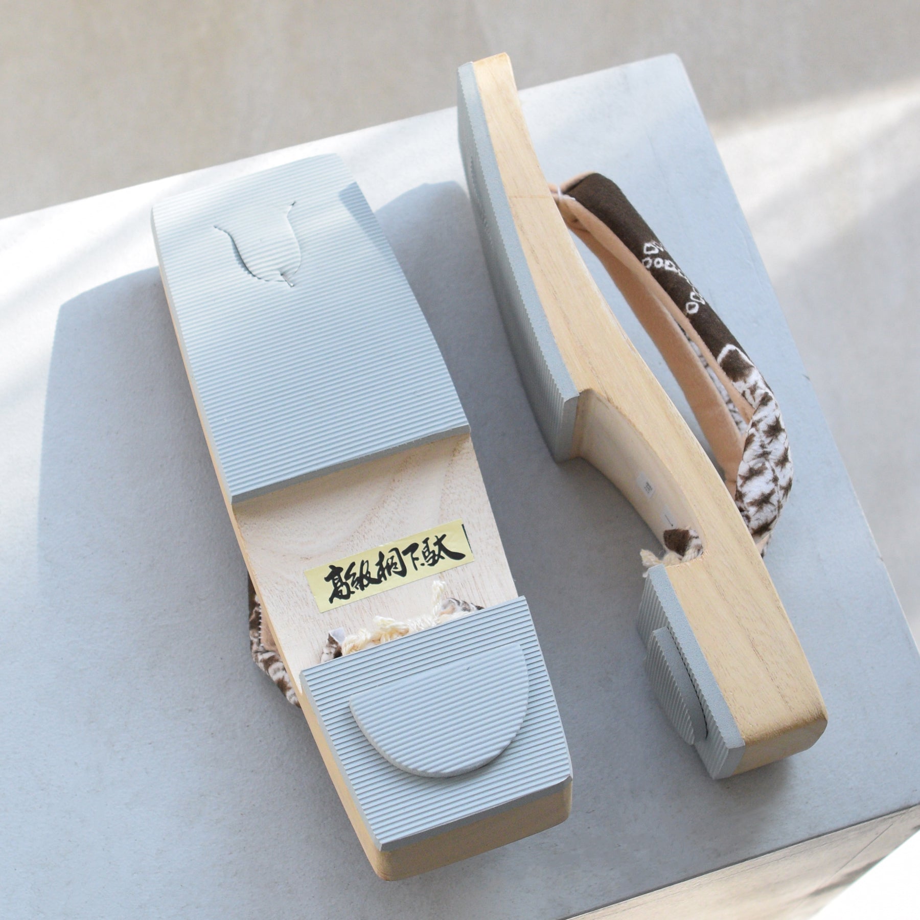 汗を吸収し足裏もベタつきにくいので履き心地が爽やかな白木台座になります。
