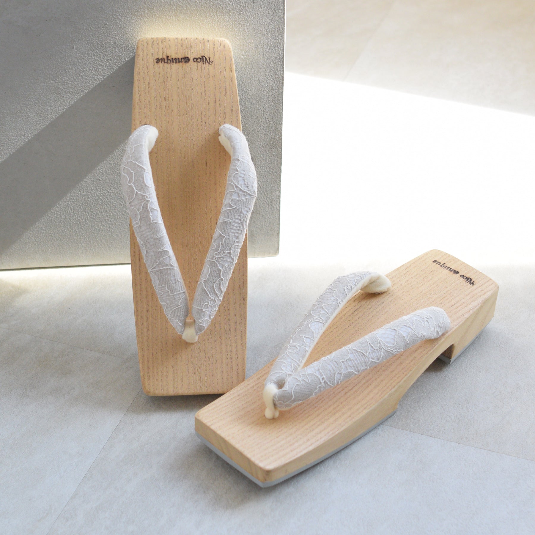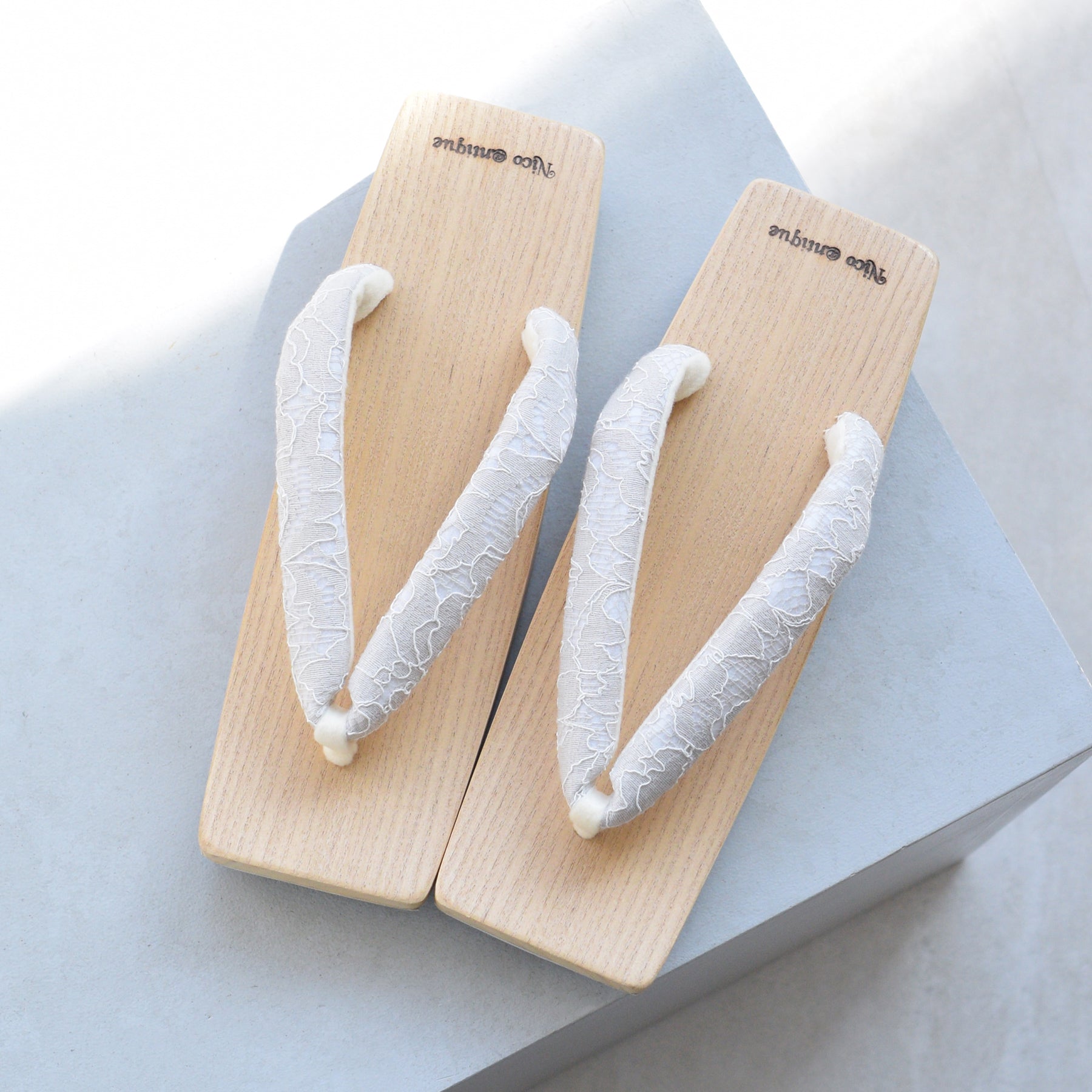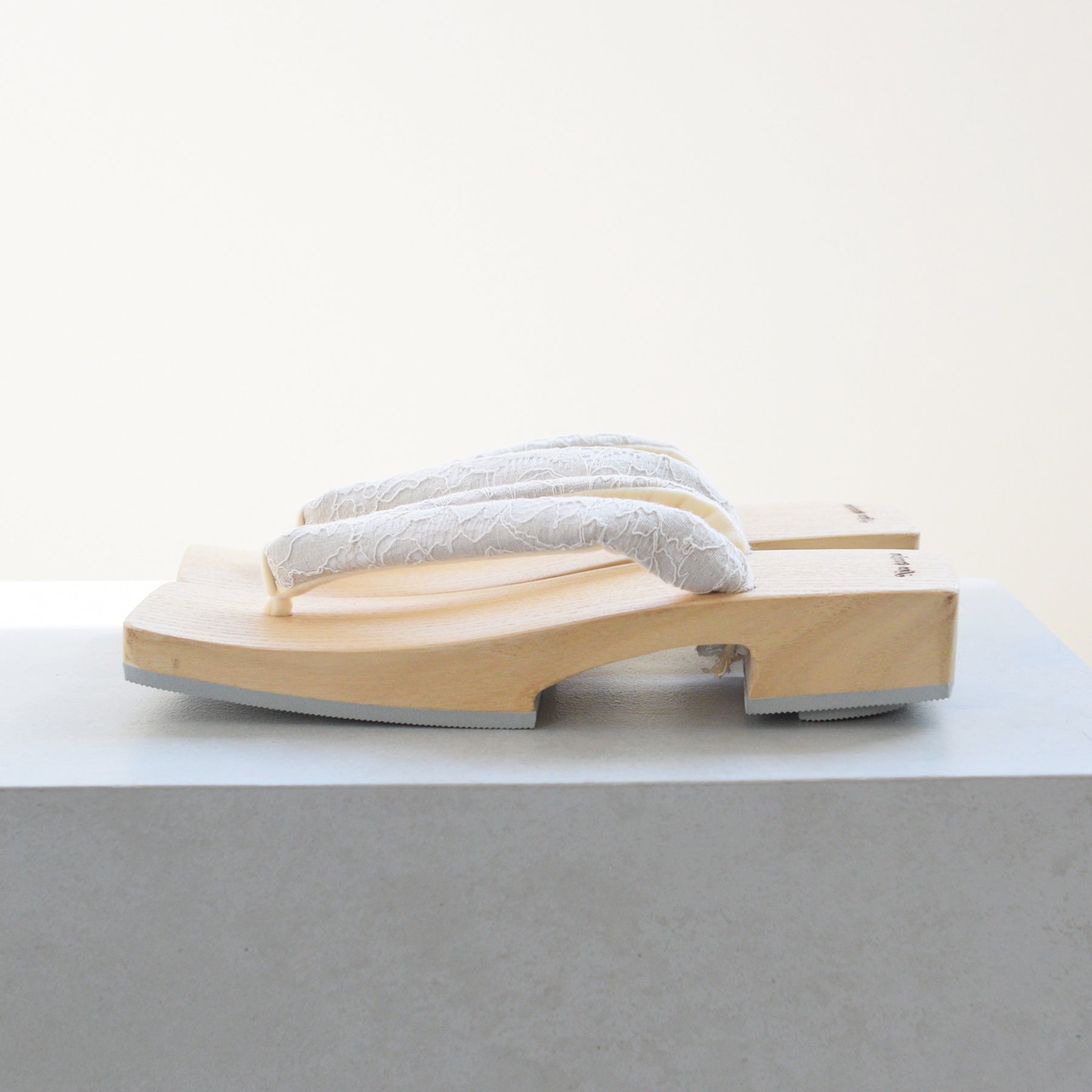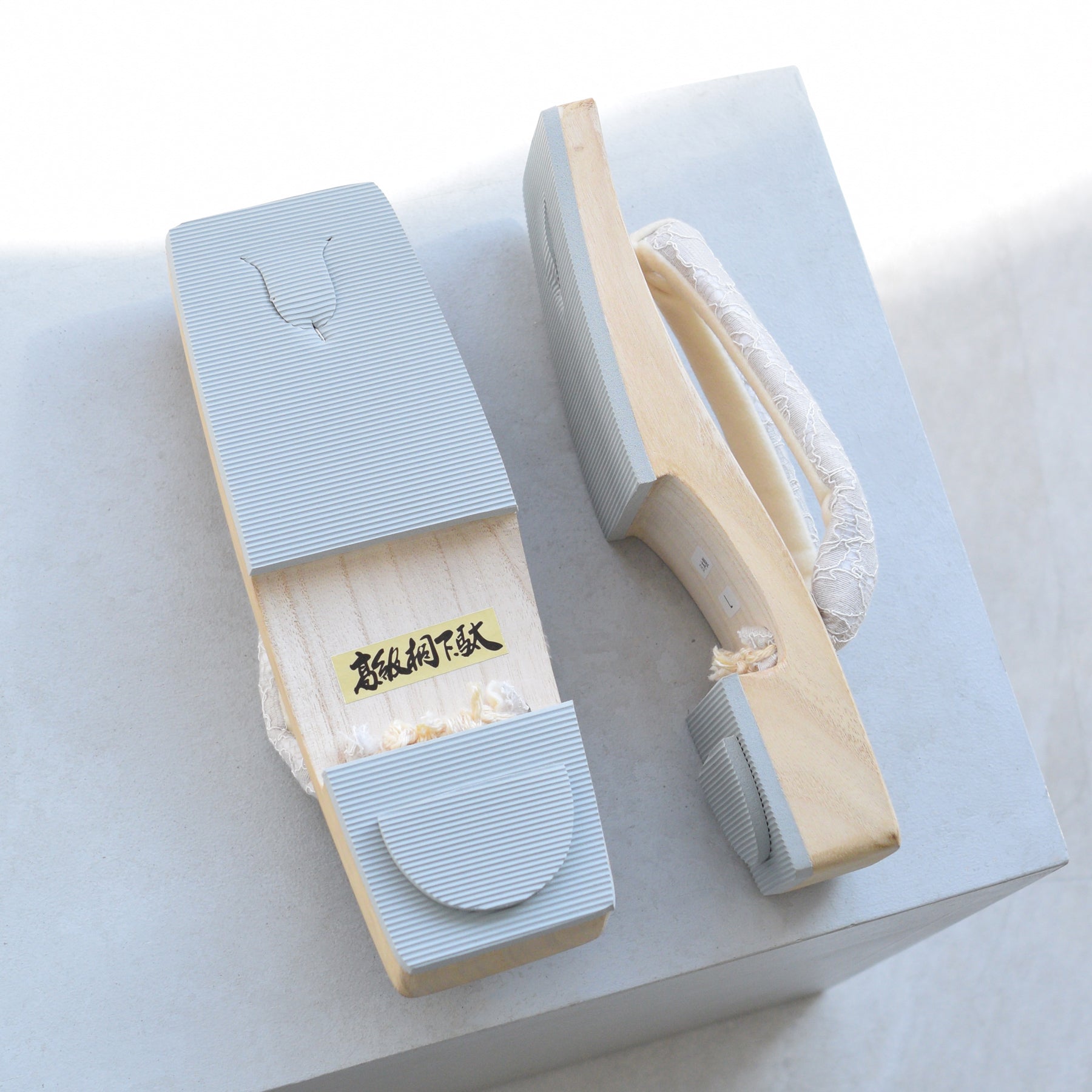 汗を吸収し足裏もベタつきにくいので履き心地が爽やかな白木台座になります。