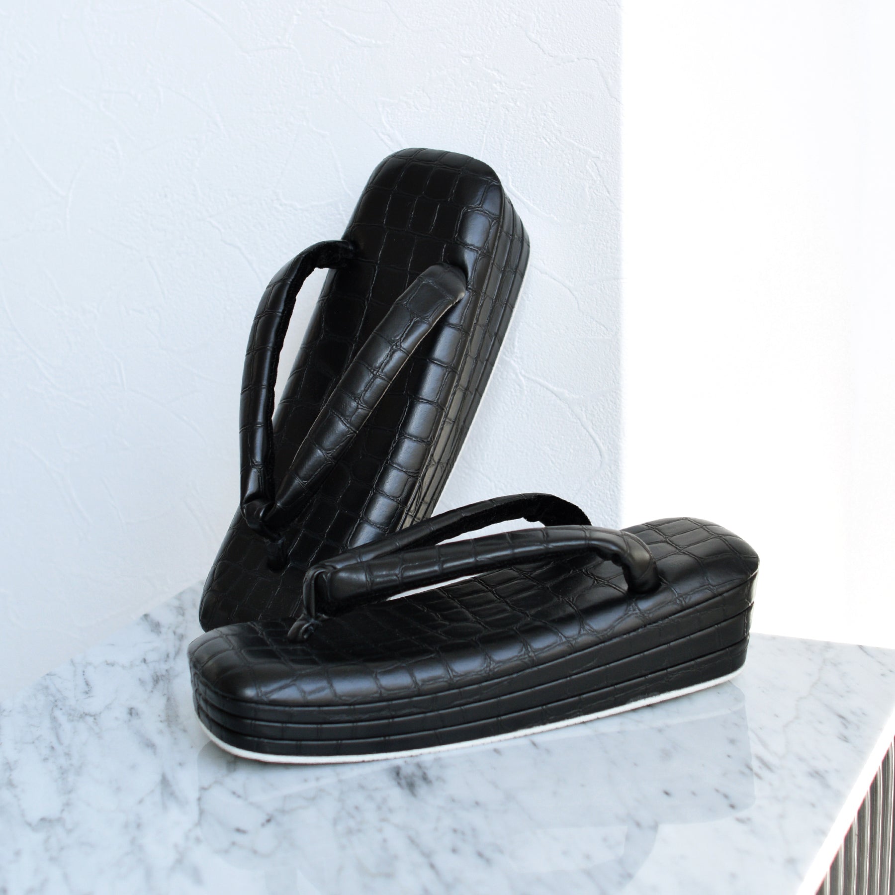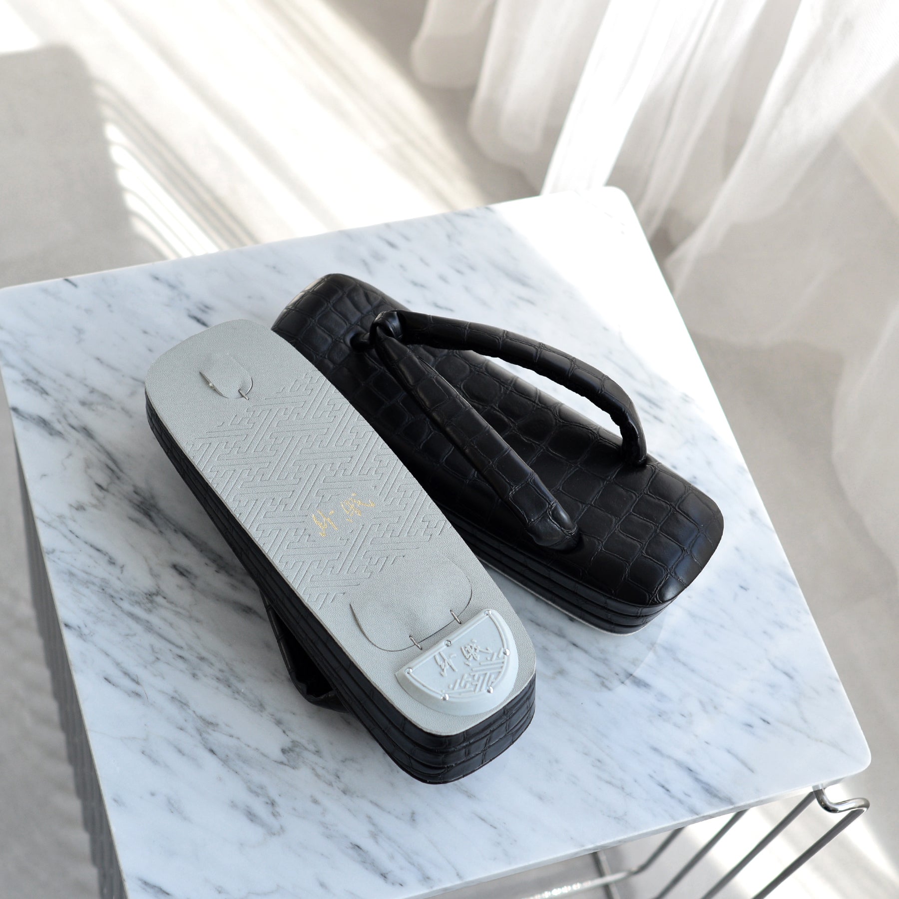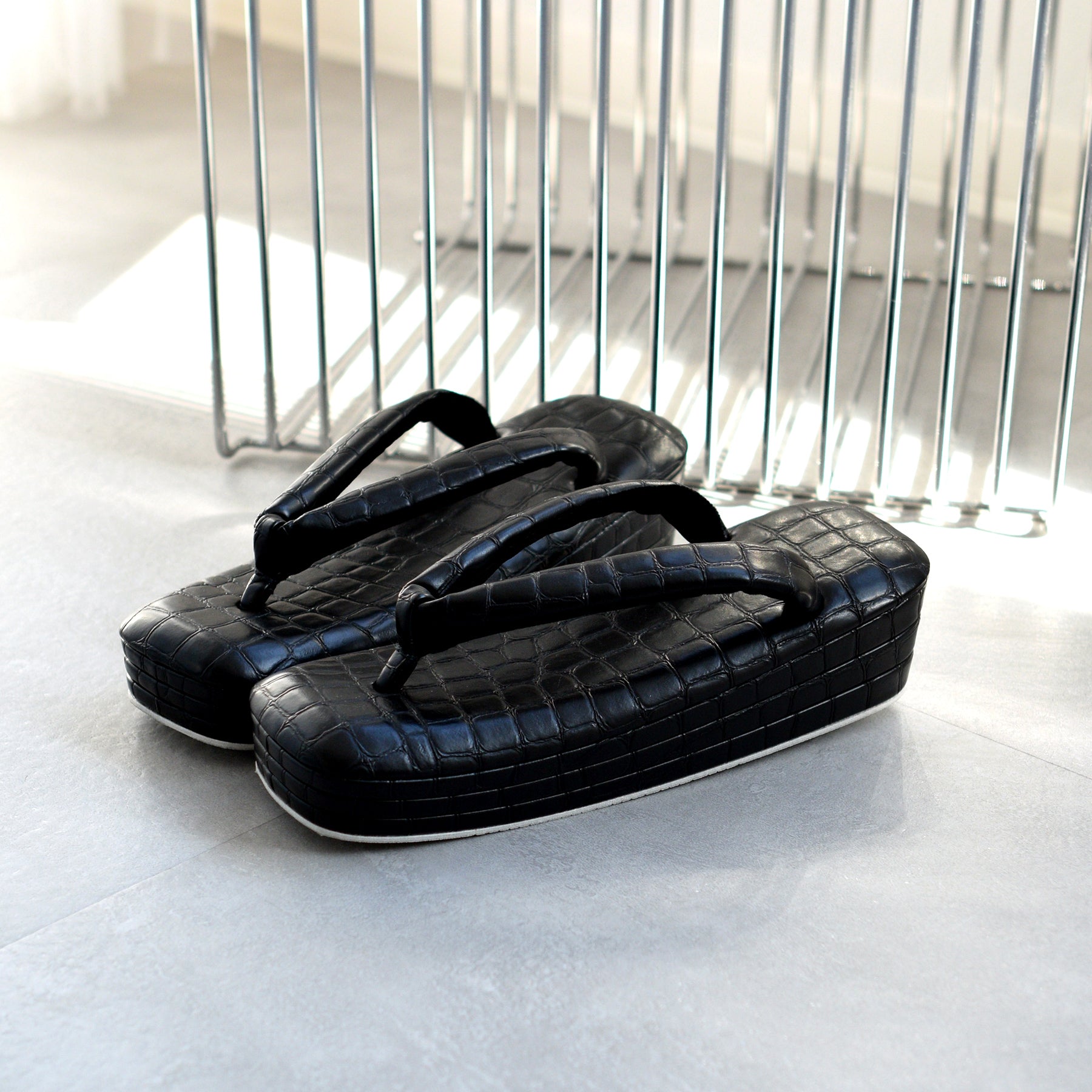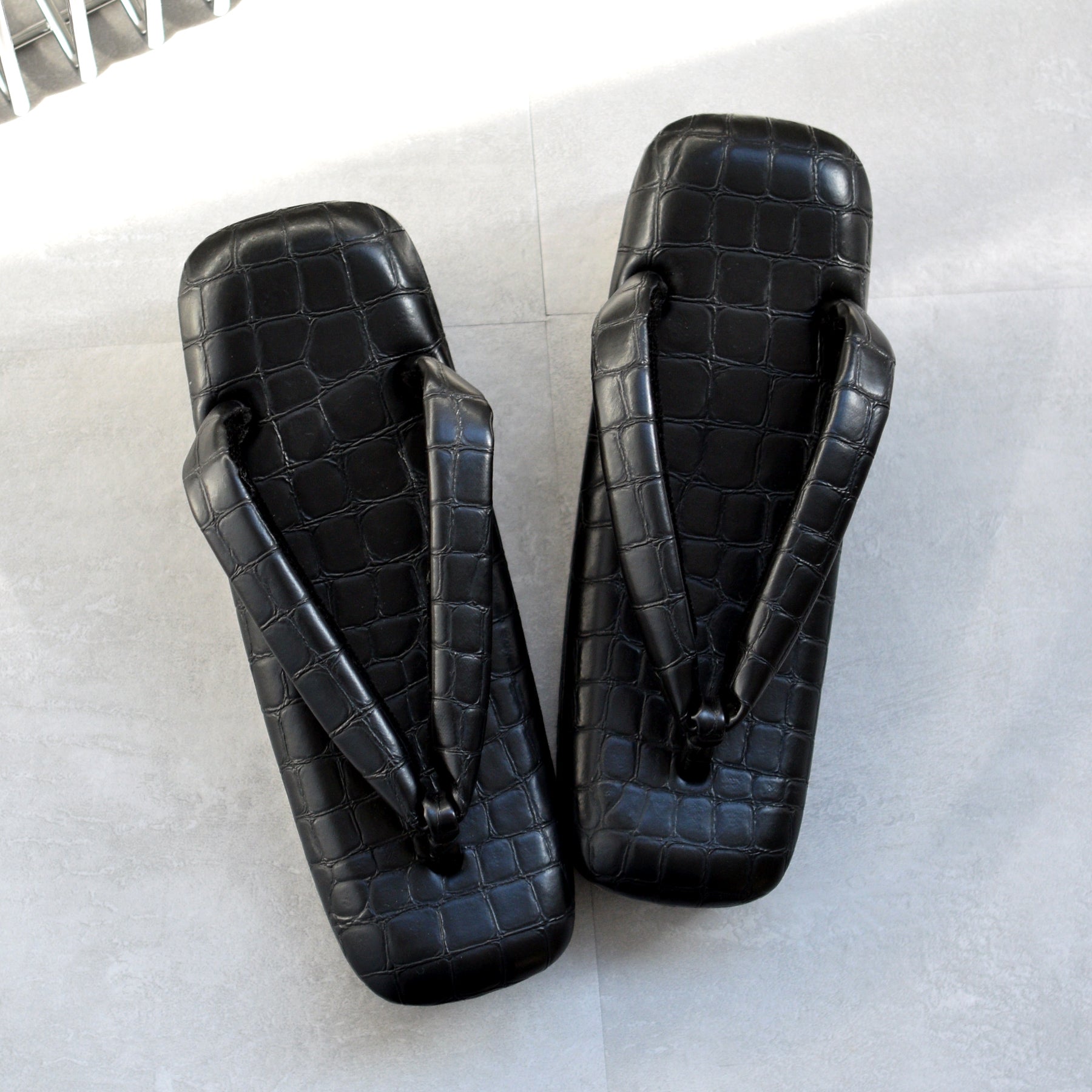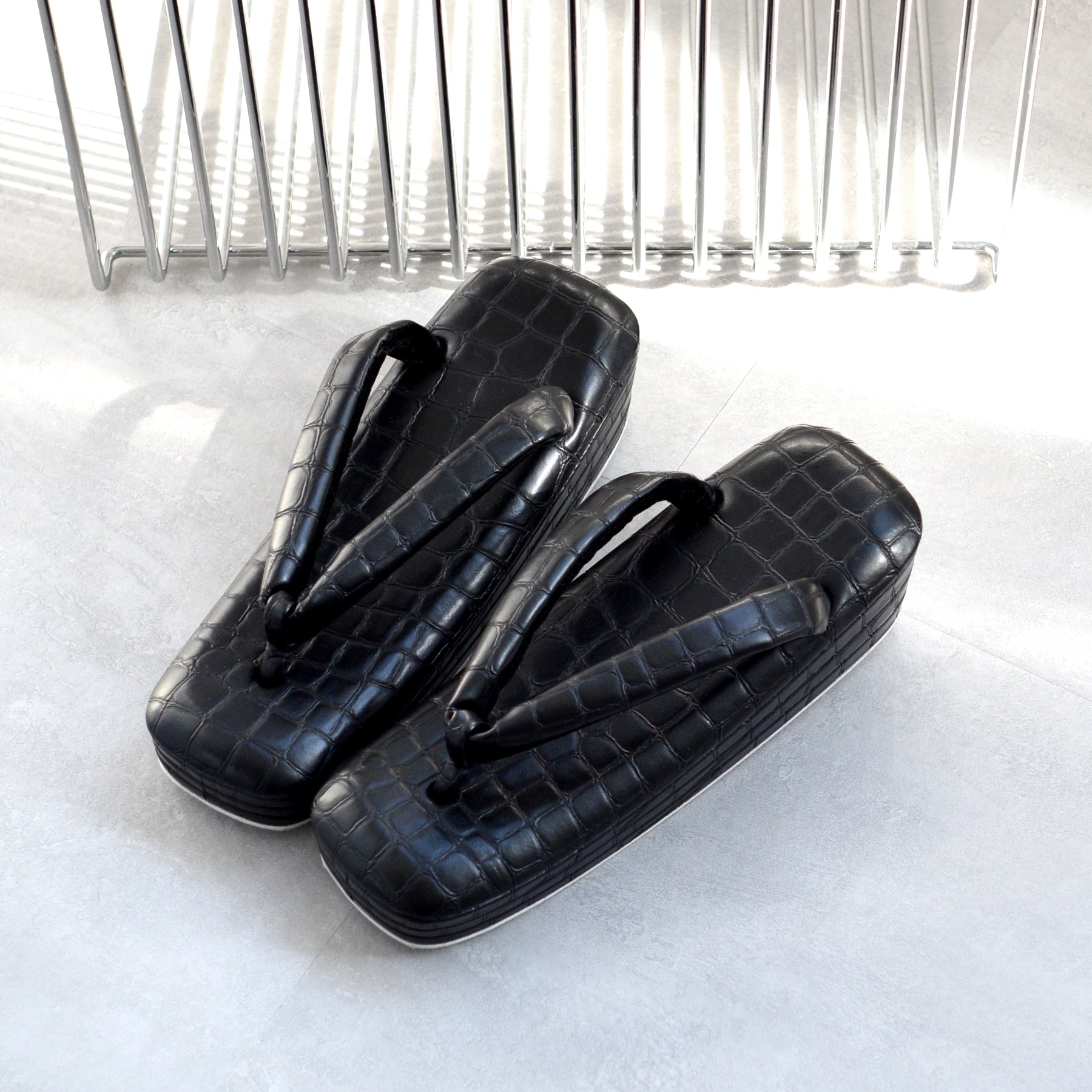 直線的なフォルムが際立つスクエア型草履。