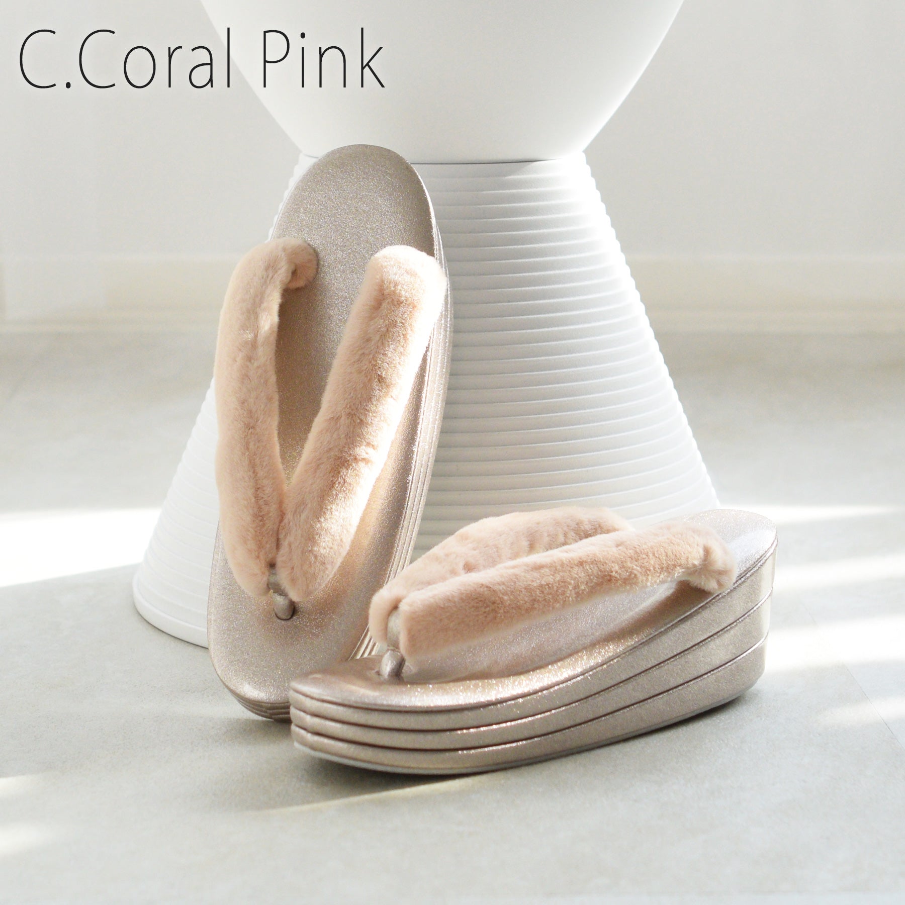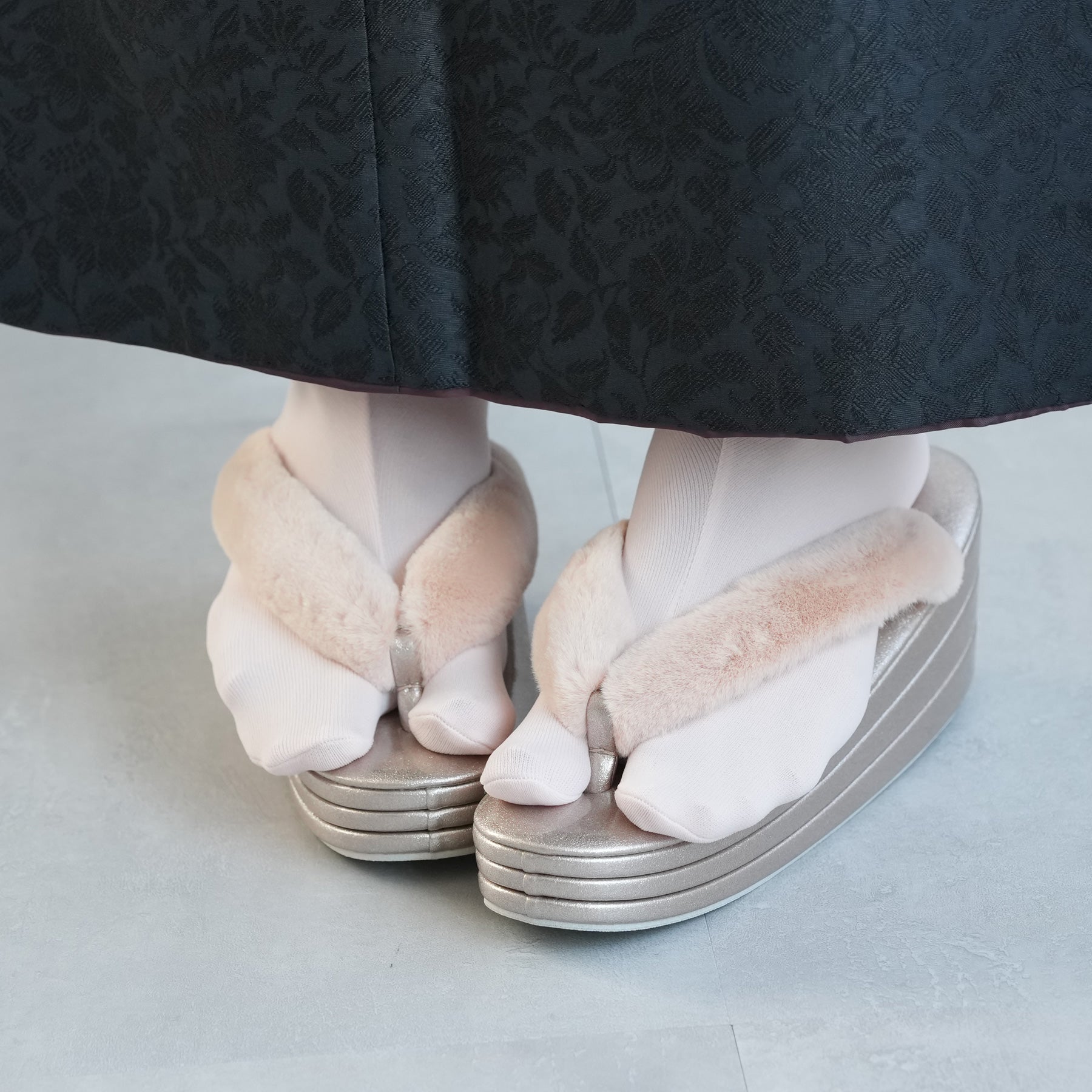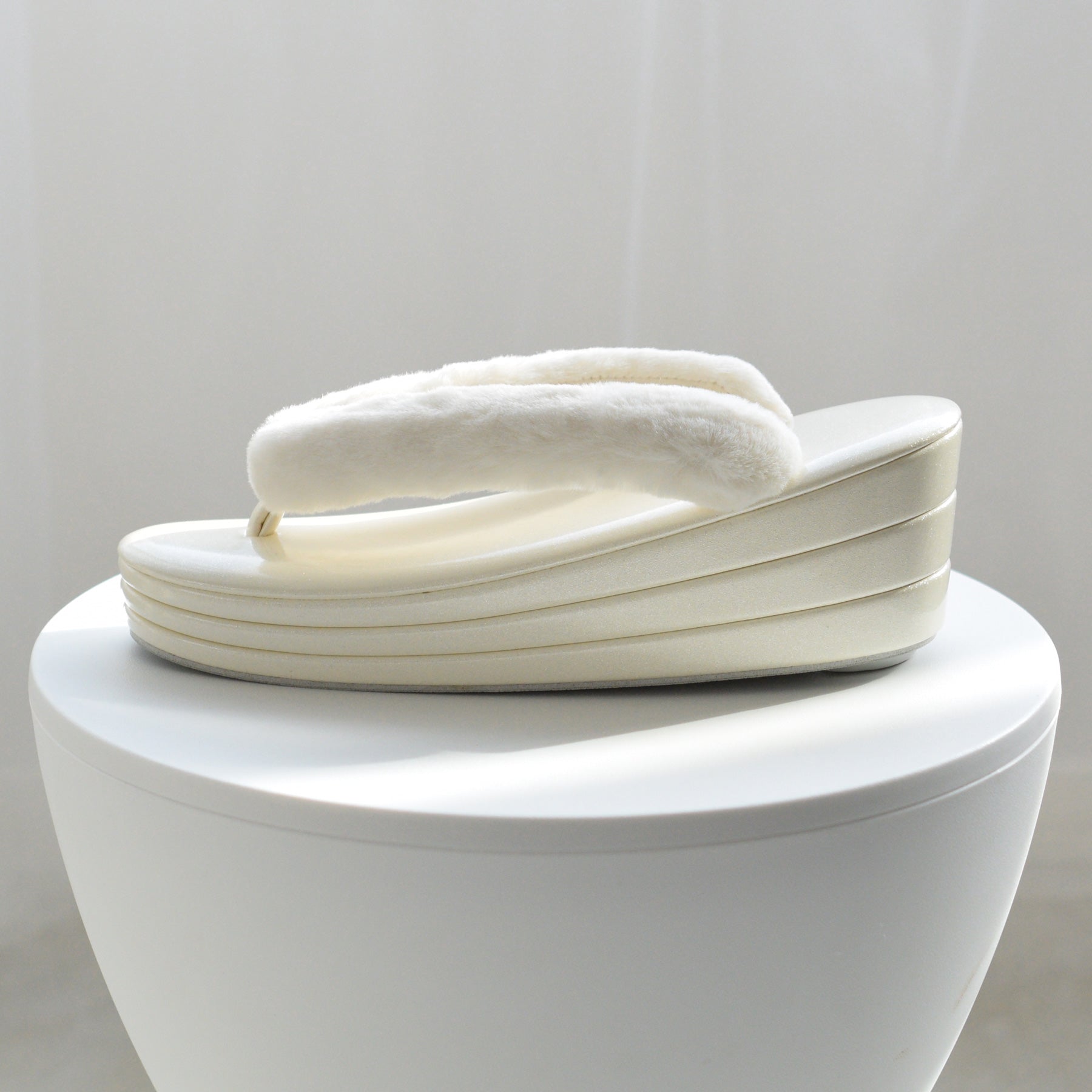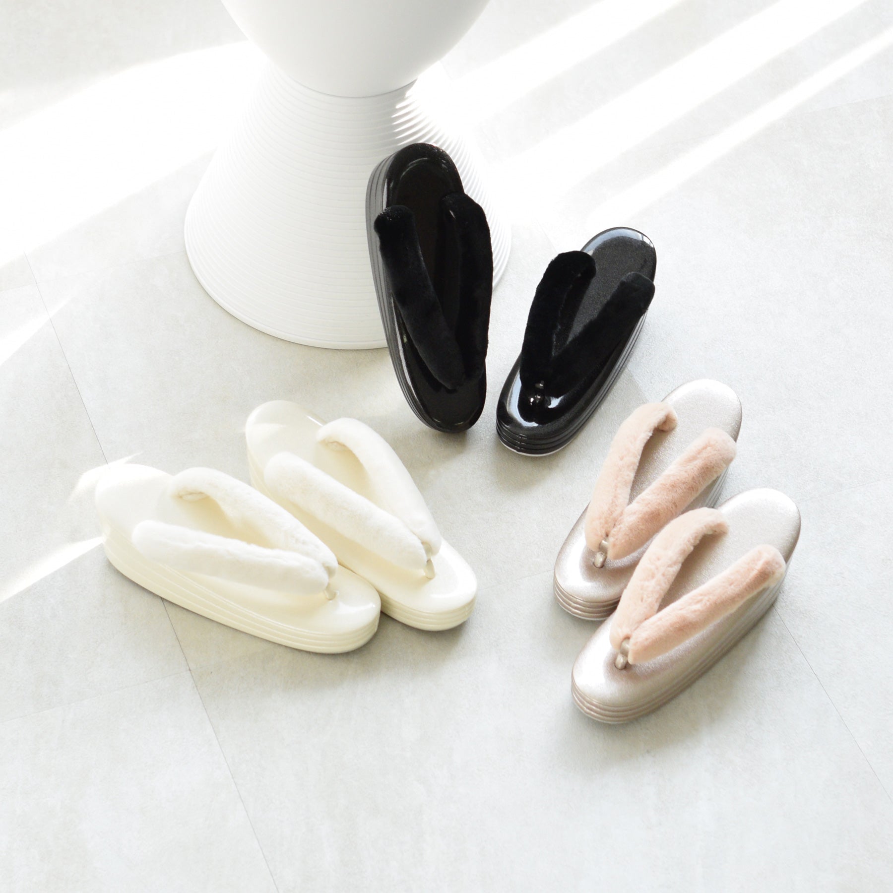 ふわふわのファー素材を使用した鼻緒とコーディネートしやすい上品カラー。
