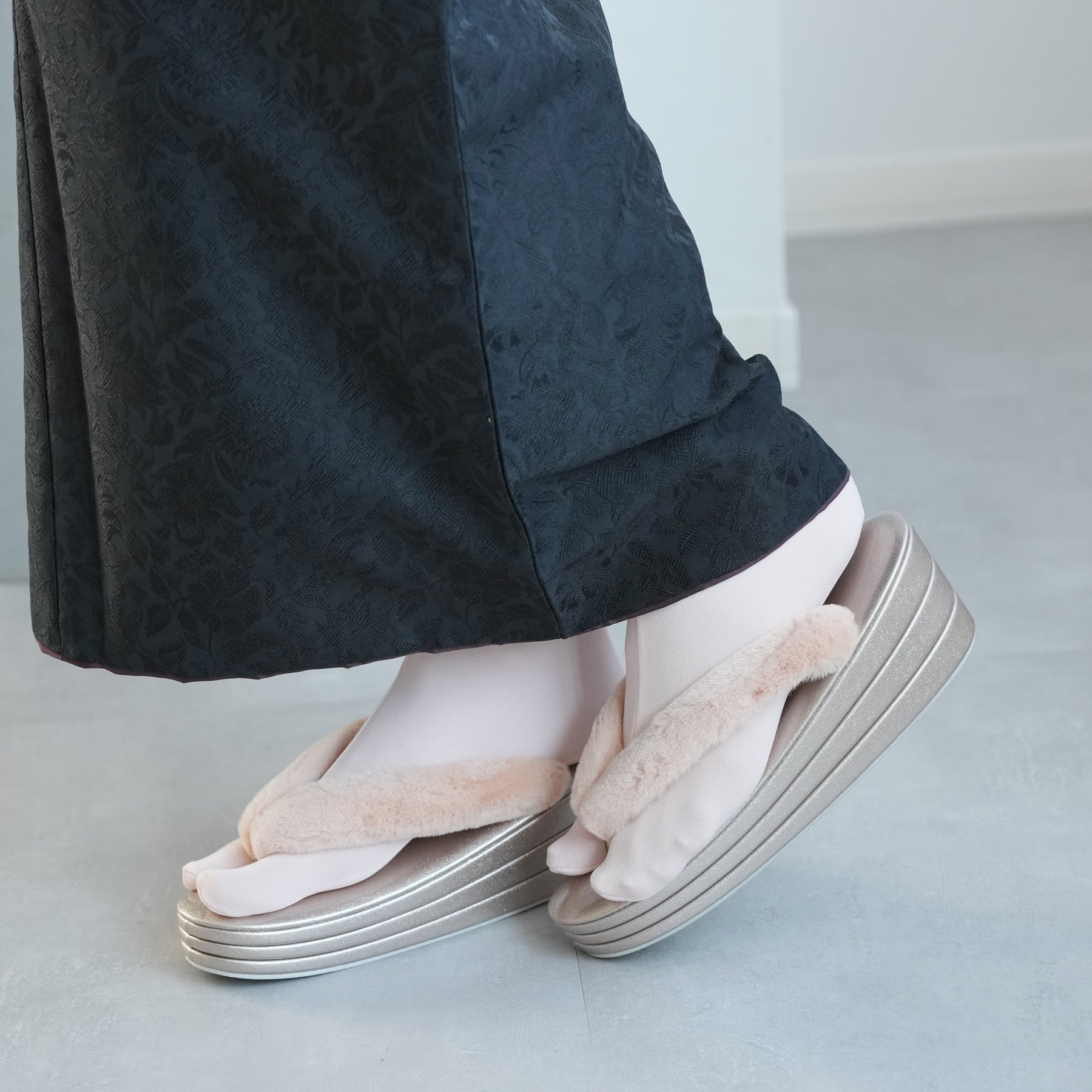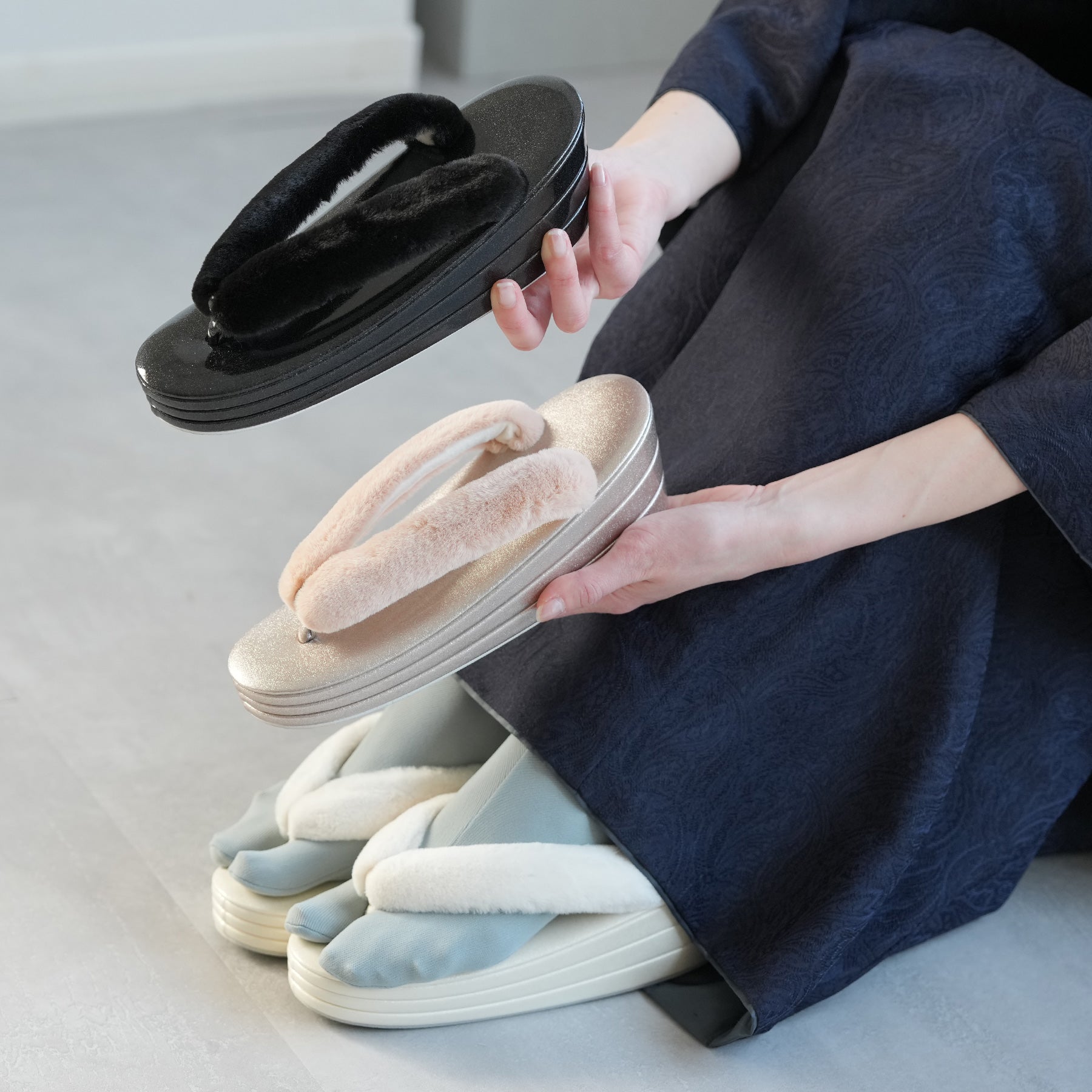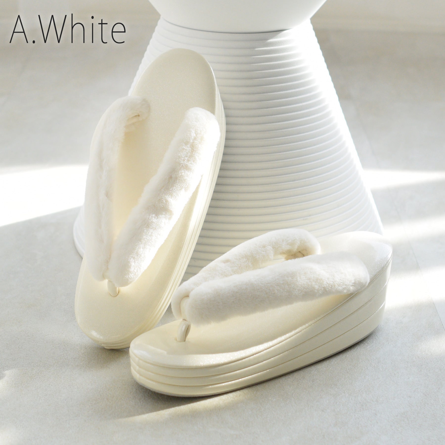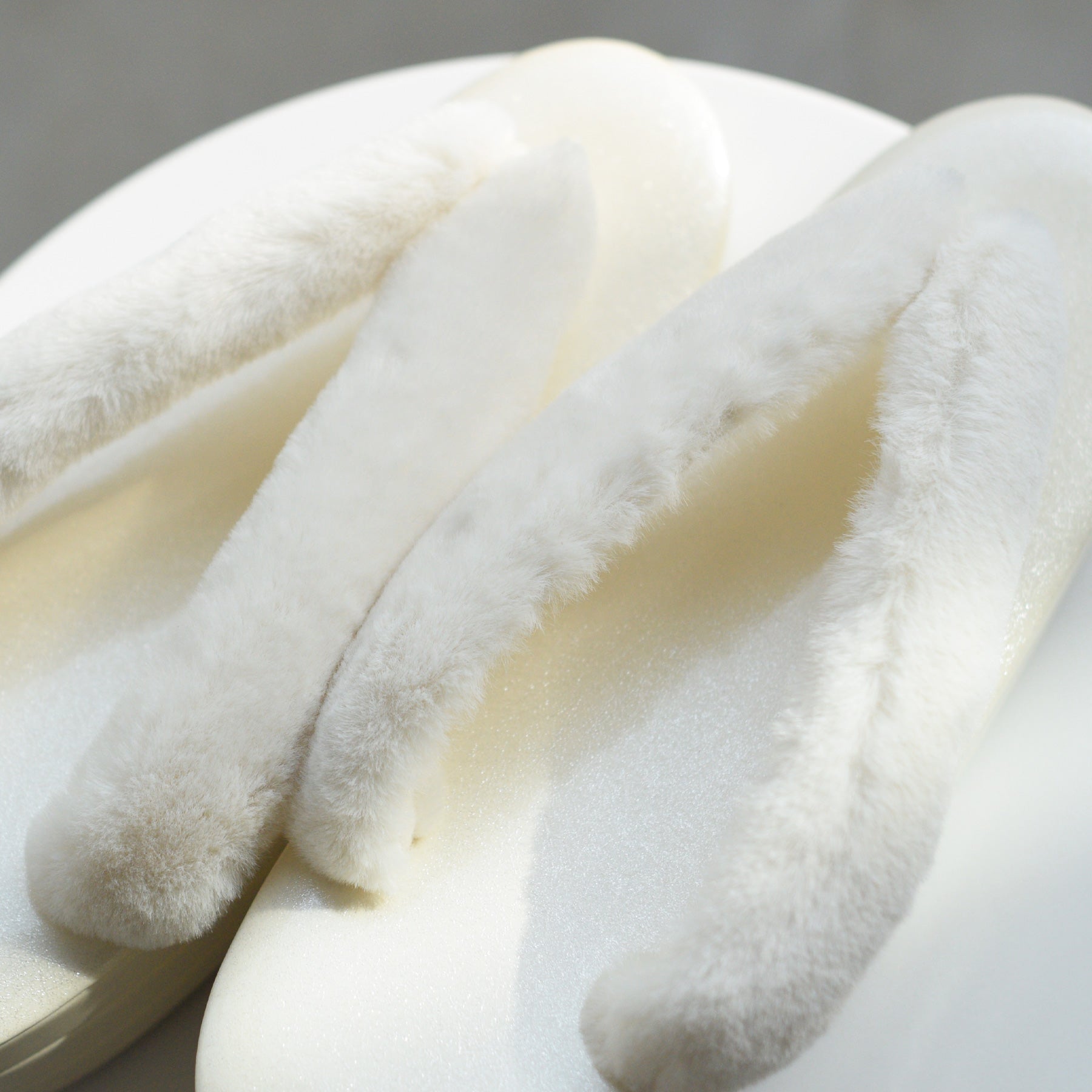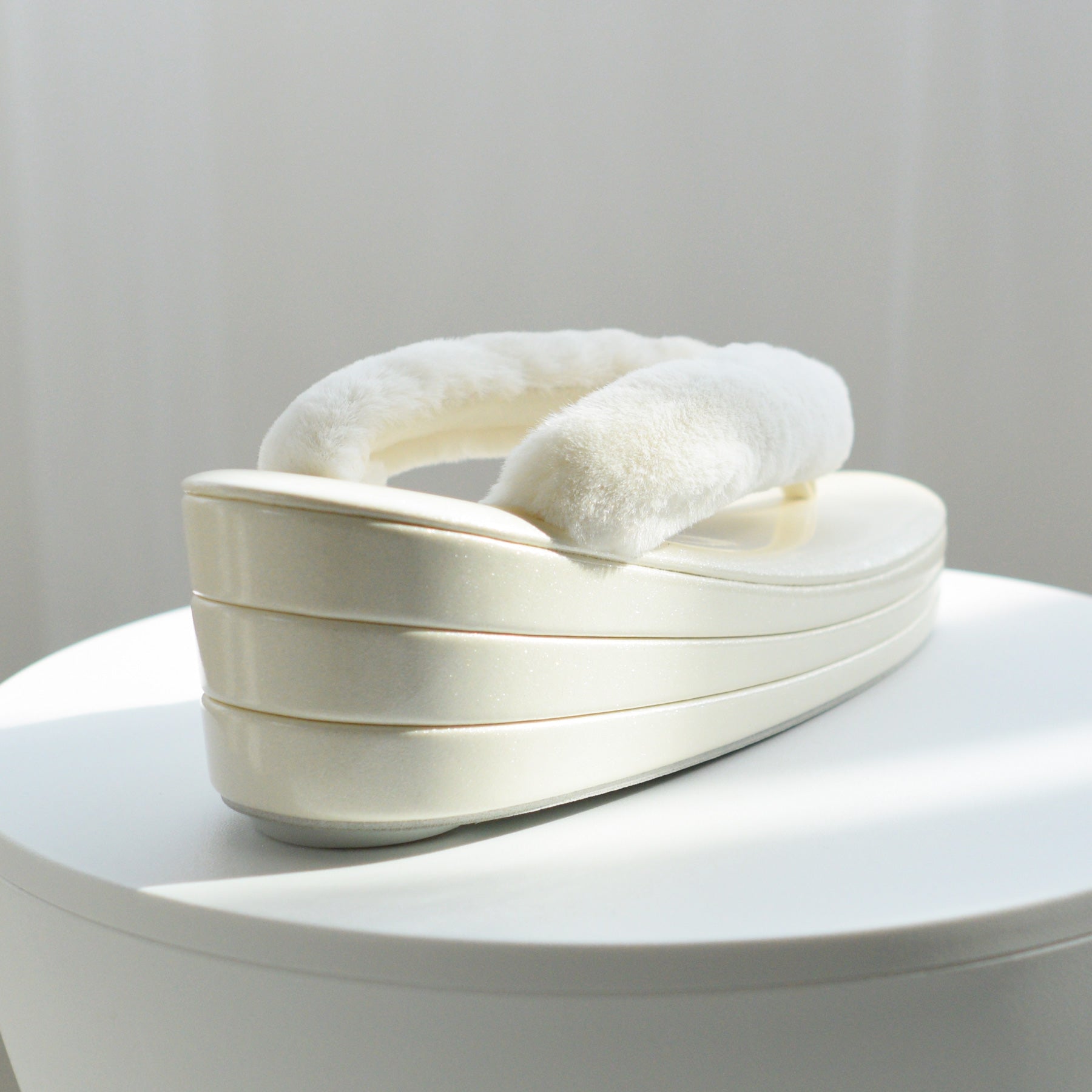 ふわふわのファー素材を使用した鼻緒とコーディネートしやすい上品カラー。