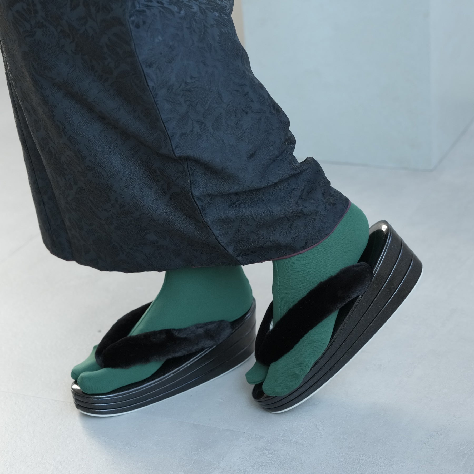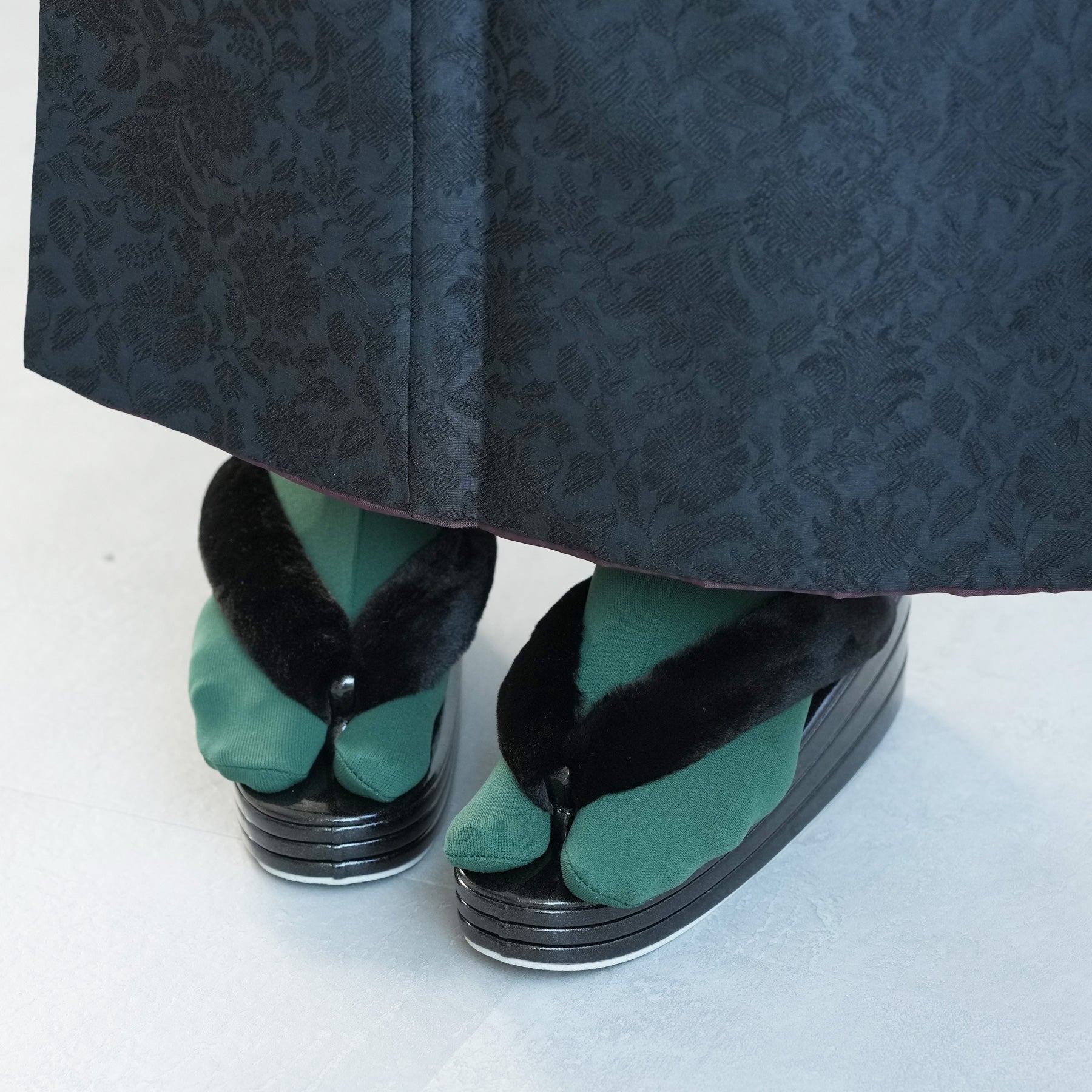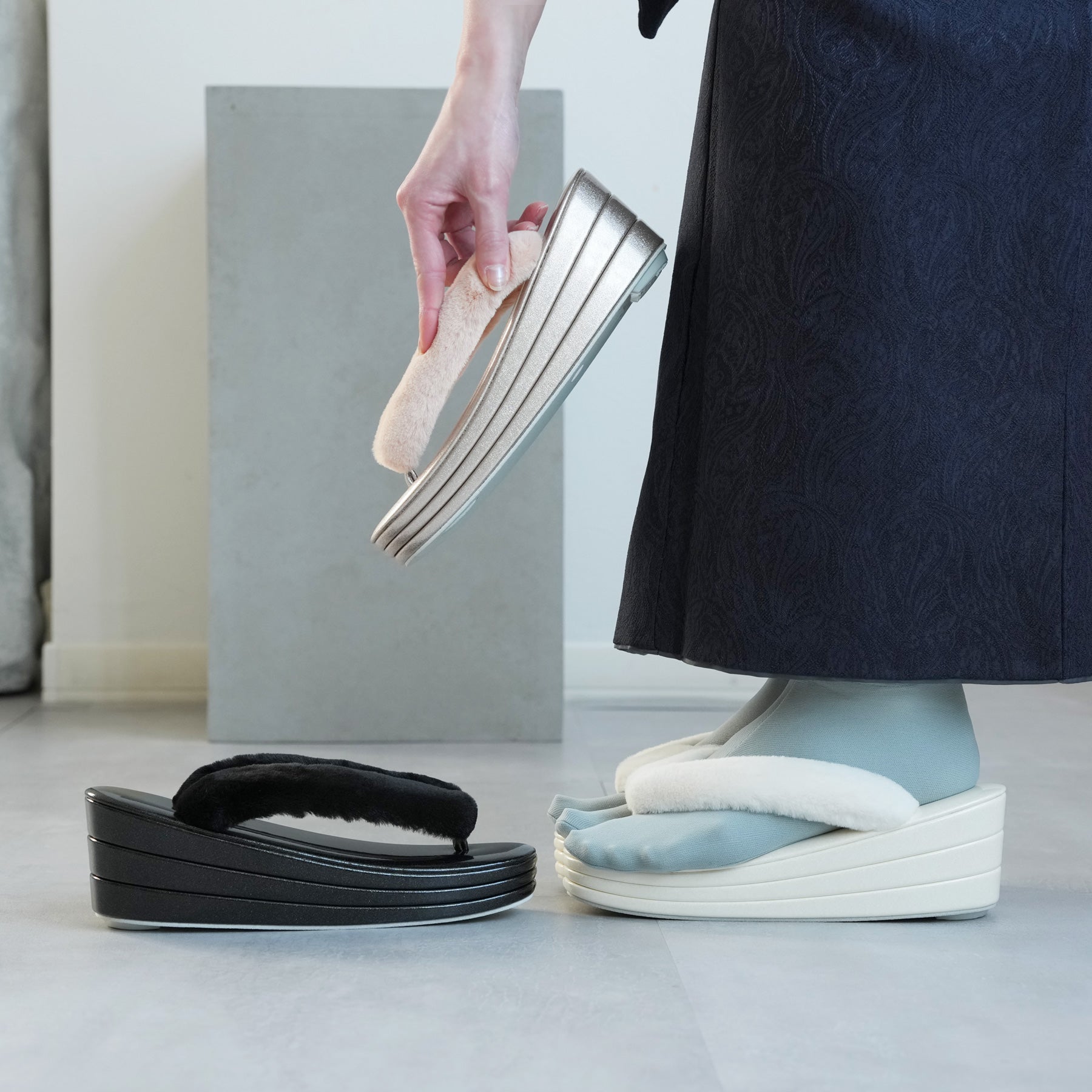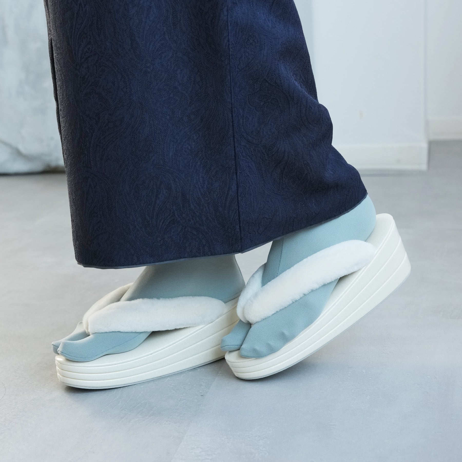 ふわふわのファー素材を使用した鼻緒とコーディネートしやすい上品カラー。