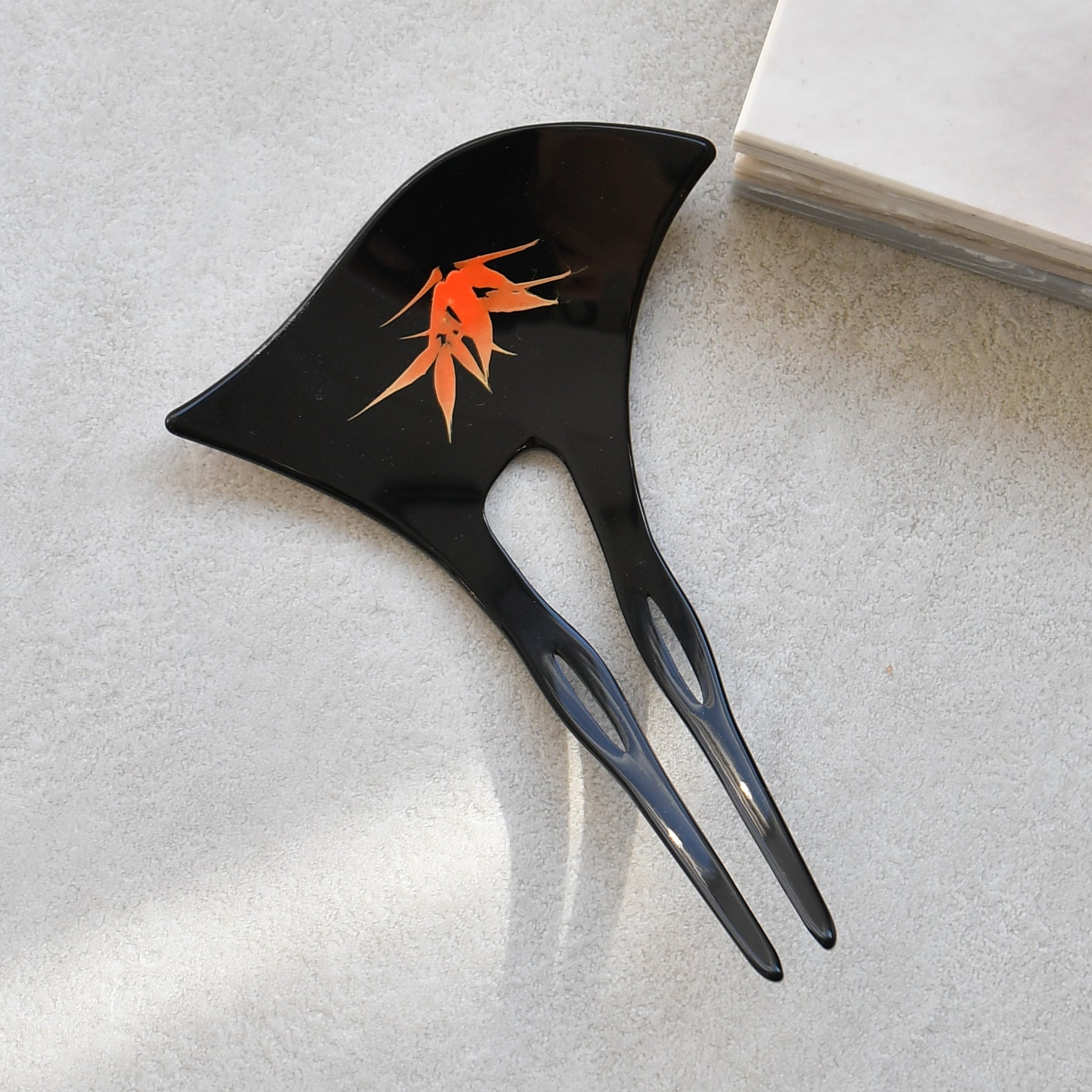 髪にすっと差し込むだけで、上品な和の装いを完成させるバチ型かんざし。