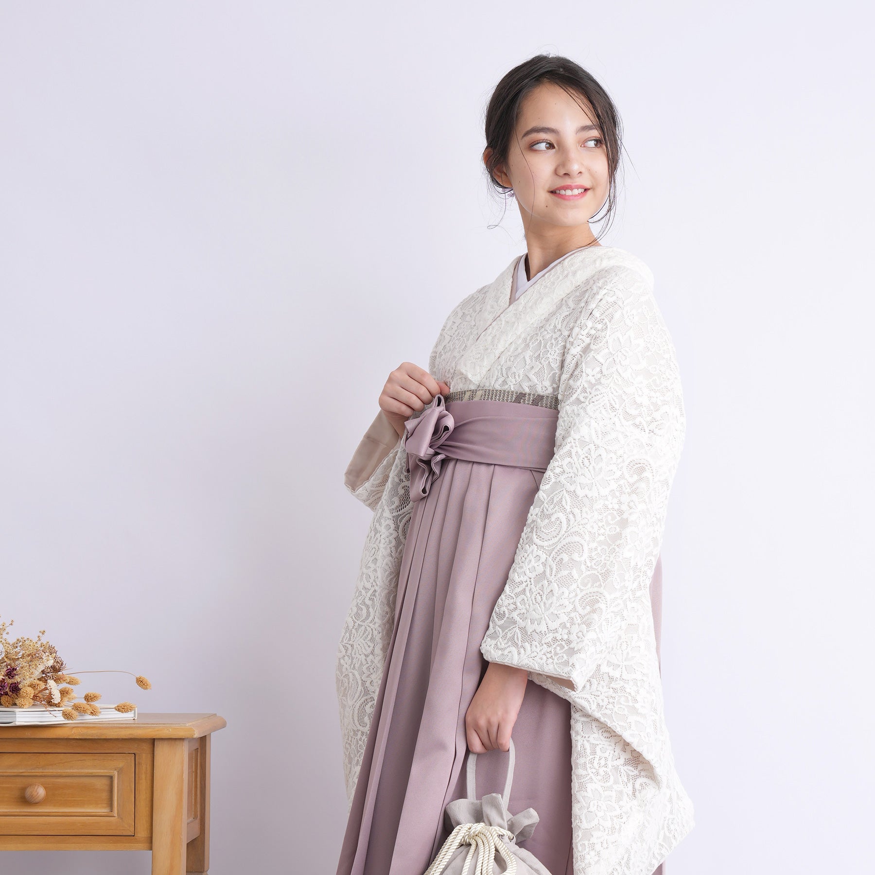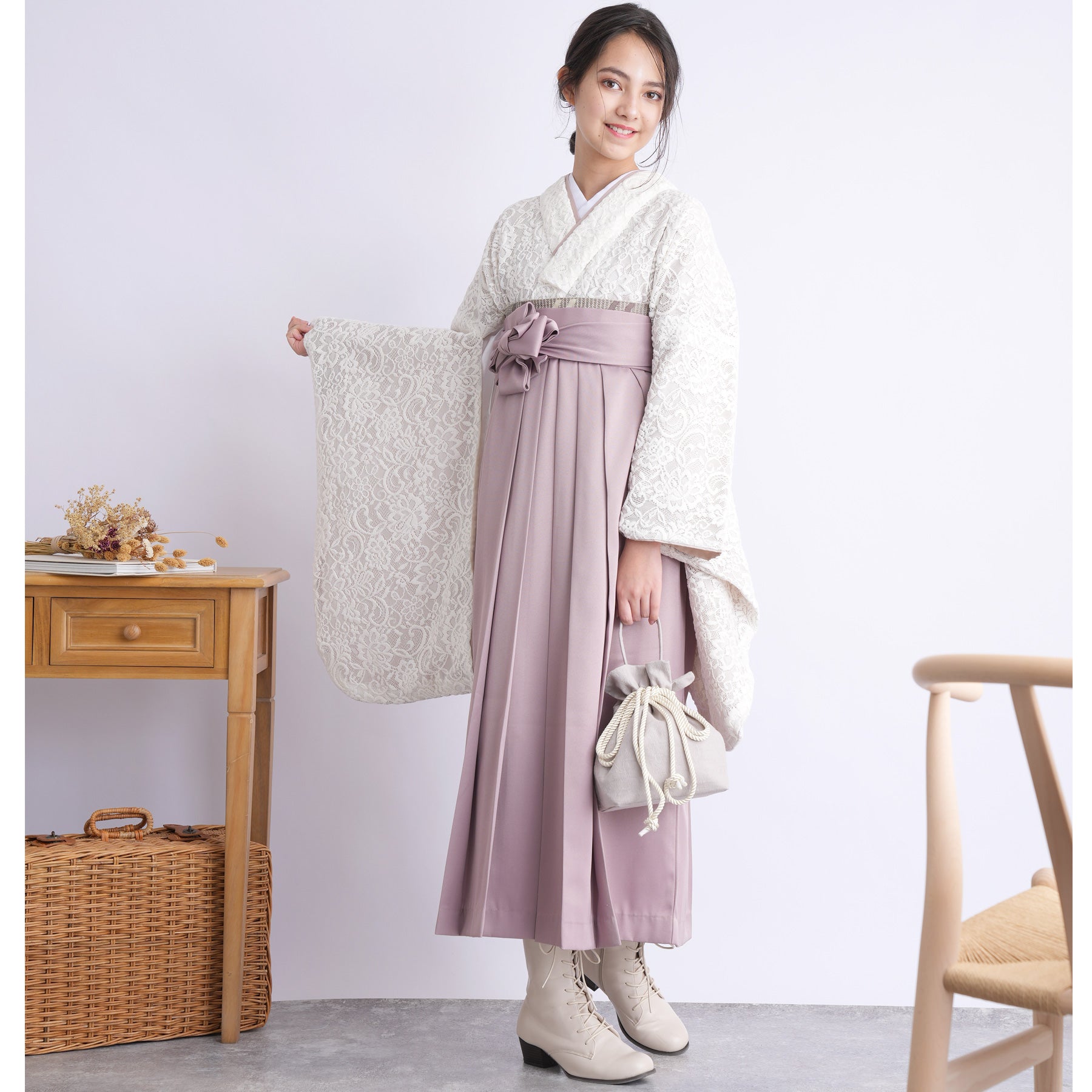 【リサイクル着物】 2尺袖着物 袴 2点セット 販売品 中古 USED レース アイボリー ベージュ 袴83-87cm(身長138-152cm) 小学生 ジュニア 低身長コーデ 重ね衿縫い付済 (6732703001)【中古販売】