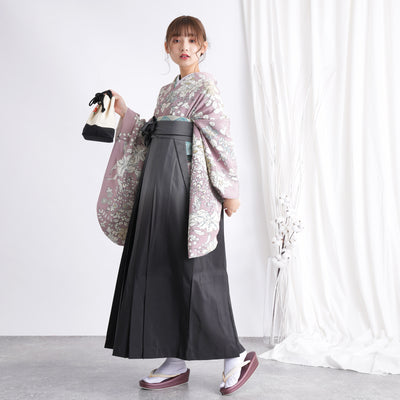 【リサイクル着物】 2尺袖着物 袴 2点セット 販売品 中古 USED グレー 小花 袴91cm(身長153-158cm)卒業式 大学生 (5182669011)【中古販売】