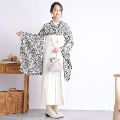 【リサイクル着物】 2尺袖着物 袴 2点セット 販売品 中古 USED 白系 雪輪 袴91cm(身長153-158cm)卒業式 大学生 (5182620111)【中古販売】