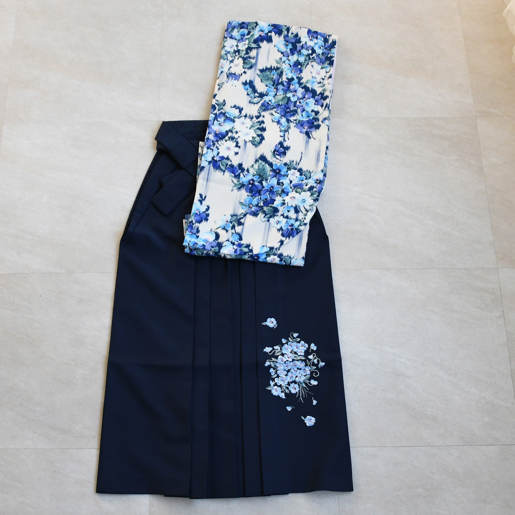 着物・袴・草履・バッグ・重ね襟(着物に縫い付済)・半巾帯・肌襦袢+長襦袢一体化インナー(白無地半襟付き)・前板・着付けベルト・ウエストベルト・腰ひも3本セット・伊達締め ・マジックベルト・衿芯・足袋(プレゼント)