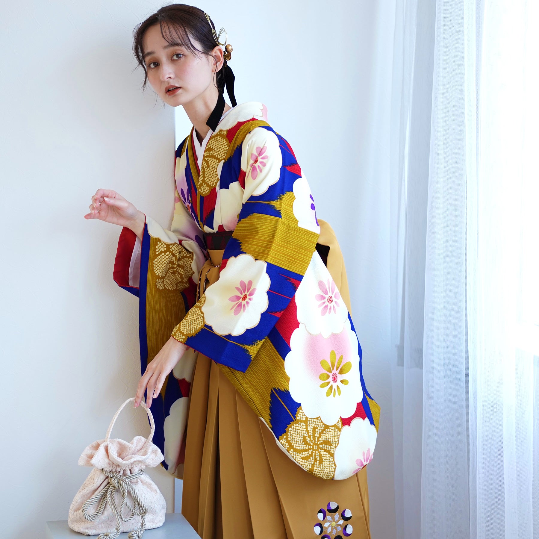 着物・袴・草履・バッグ・重ね襟(着物に縫い付済)・半巾帯・肌襦袢+長襦袢一体化インナー(白無地半襟付き)・前板・着付けベルト・ウエストベルト・腰ひも3本セット・伊達締め ・マジックベルト・衿芯・足袋(プレゼント)