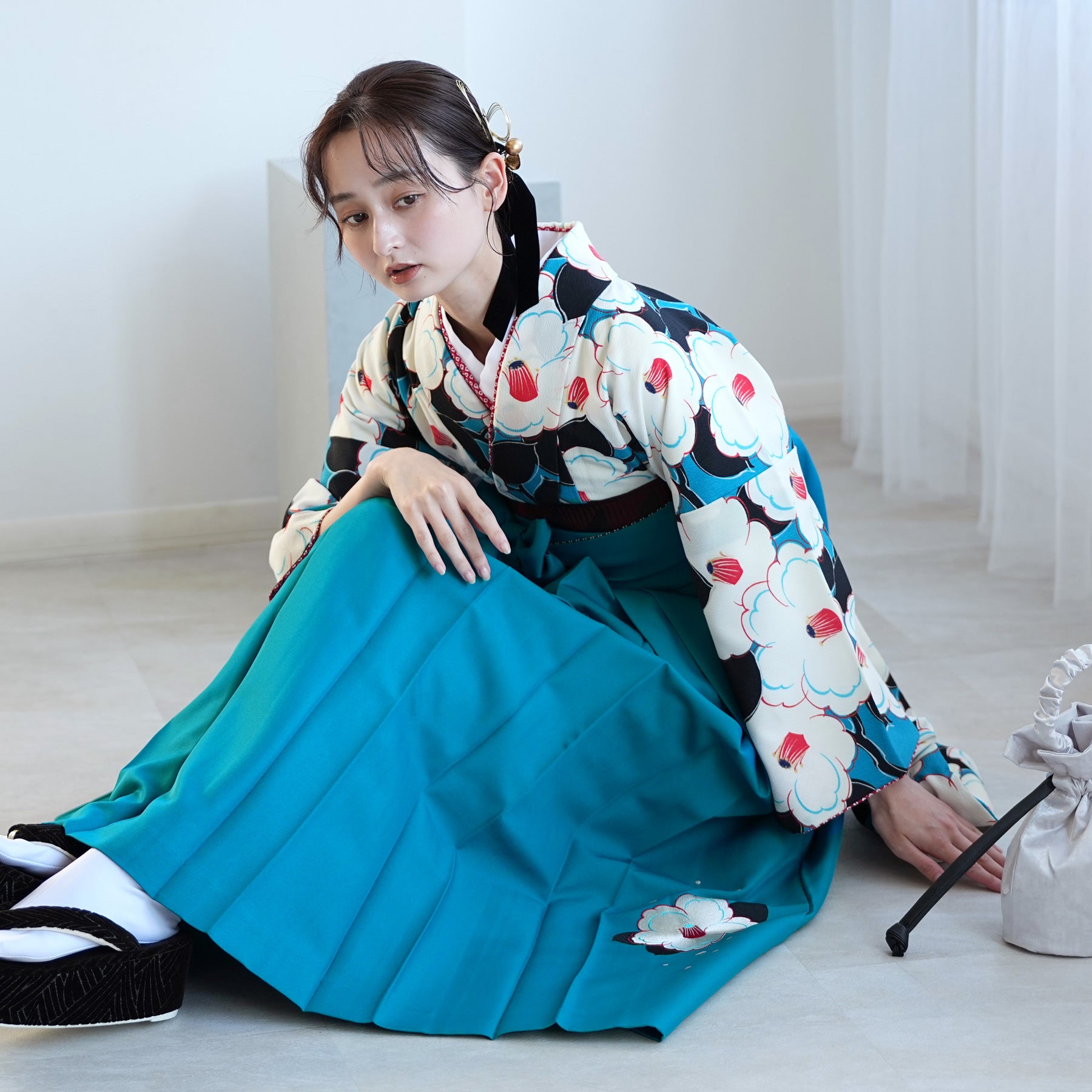 着物・袴・草履・バッグ・重ね襟(着物に縫い付済)・半巾帯・肌襦袢+長襦袢一体化インナー(白無地半襟付き)・前板・着付けベルト・ウエストベルト・腰ひも3本セット・伊達締め ・マジックベルト・衿芯・足袋(プレゼント)