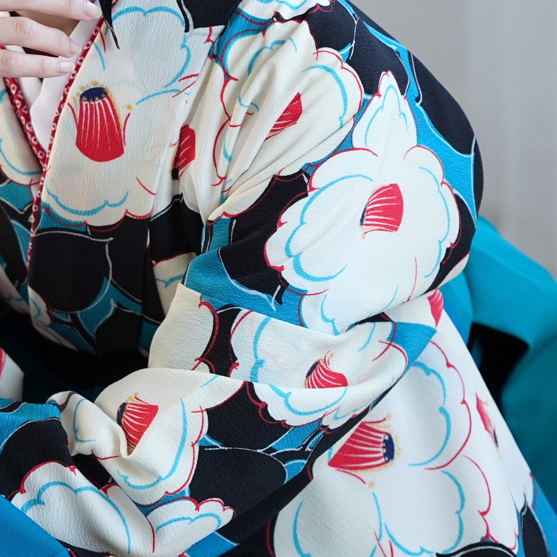 | [ 実寸サイズ ] | 着物:身丈 約108cm・袖丈 約76cm・裄丈 約68cm 袴丈91cm・95cm・99cm 足袋・草履 ワンサイズ(フリーサイズ) ※約23cm-24cm前後に対応 ※ソックスタイプストレッチ足袋 |