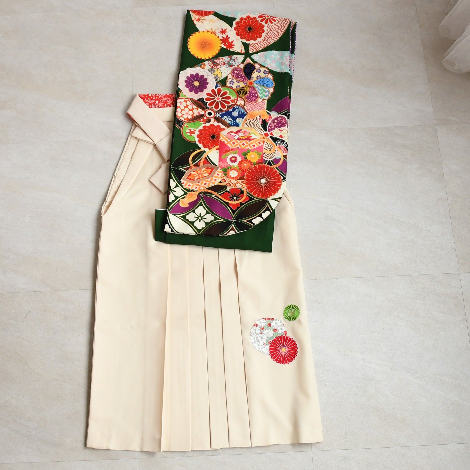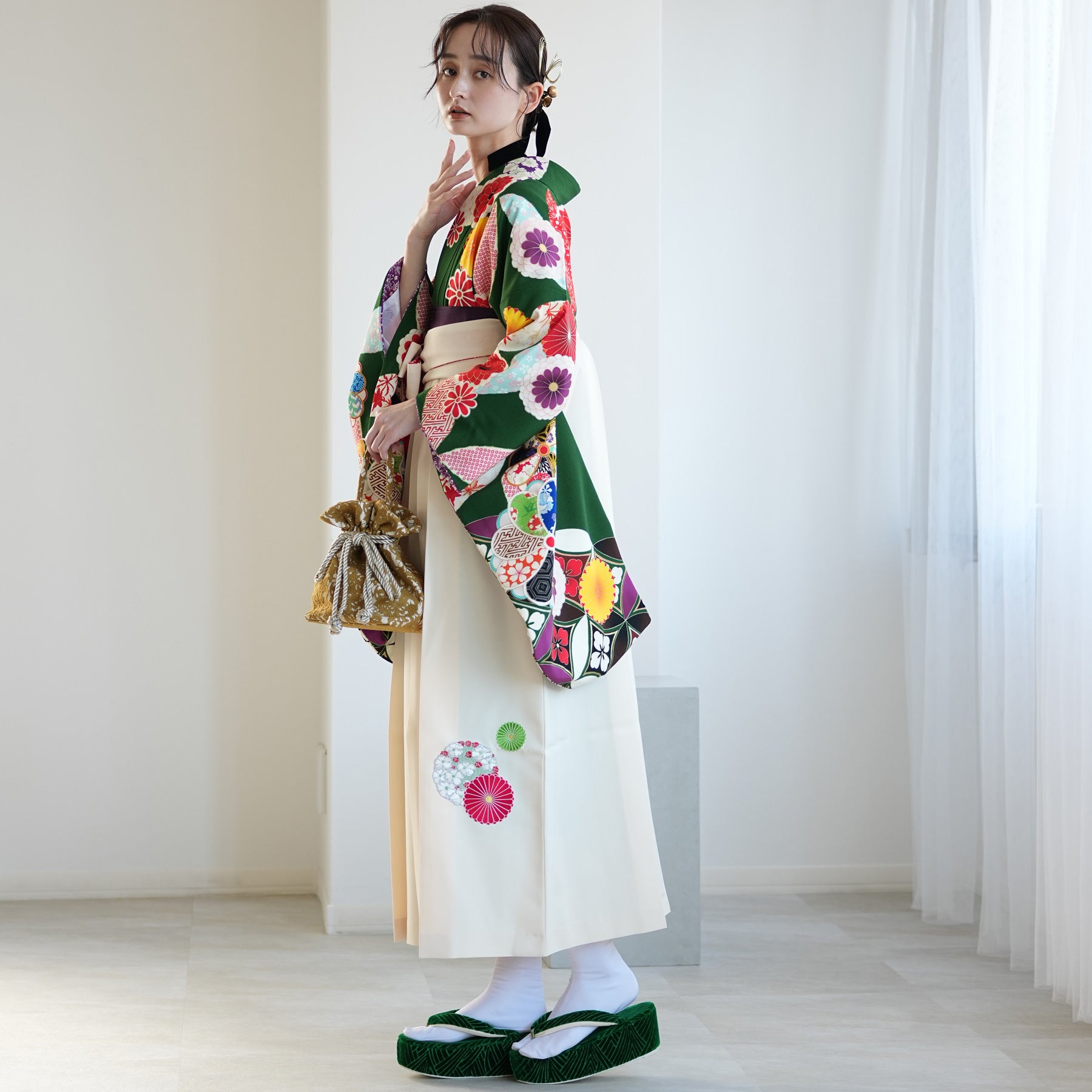 着物・袴・草履・バッグ・重ね襟(着物に縫い付済)・半巾帯・肌襦袢+長襦袢一体化インナー(白無地半襟付き)・前板・着付けベルト・ウエストベルト・腰ひも3本セット・伊達締め ・マジックベルト・衿芯・足袋(プレゼント)