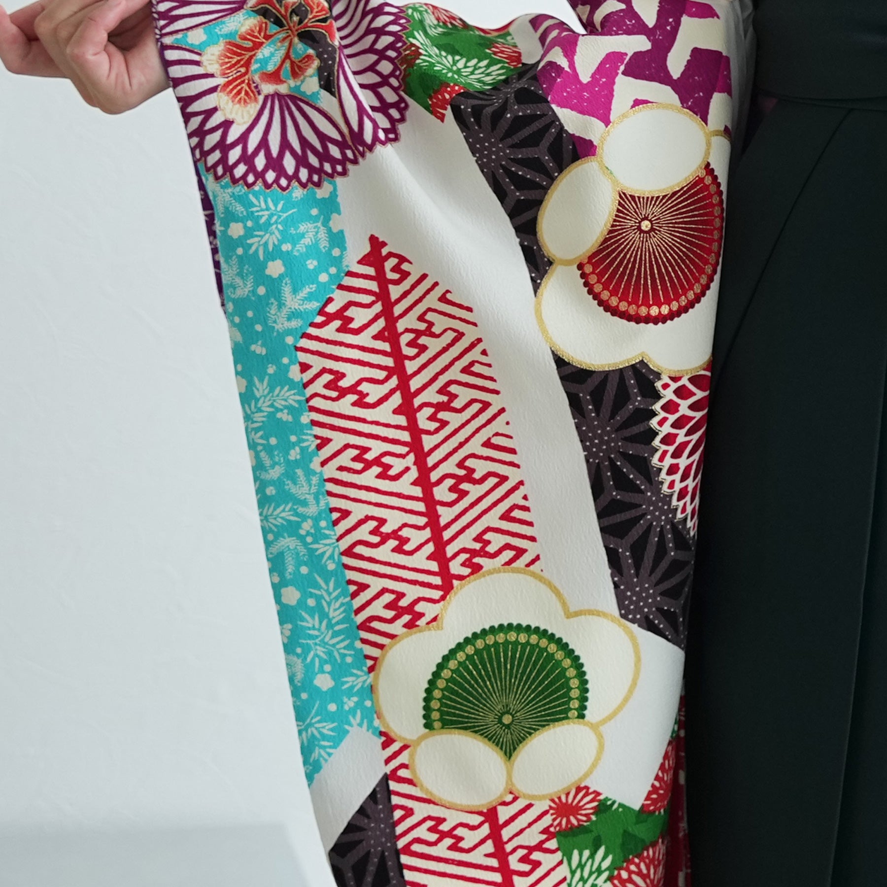 着物・袴・草履・バッグ・重ね襟(着物に縫い付済)・半巾帯・肌襦袢+長襦袢一体化インナー(白無地半襟付き)・前板・着付けベルト・ウエストベルト・腰ひも3本セット・伊達締め ・マジックベルト・衿芯・足袋(プレゼント)