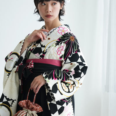 【レンタル】 袴 17点セット モダンアンテナ 袴91-99cm(身長153-170cm) 二尺袖着物 フルセット レディース 大学生 卒業式 日本製 (1020654201)
