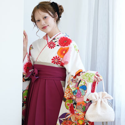 【レンタル】 袴 17点セット JAPANSTYLE 袴91-99cm(身長153-170cm) 二尺袖着物 フルセット レディース 大学生 卒業式 重ね衿縫い付済 (1020653501)