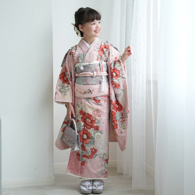 【レンタル】七五三 7歳 女の子 華徒然 着物 日本製 作り帯 子供 kids 四つ身 お祝い着 往復送料無料 (1409602100)