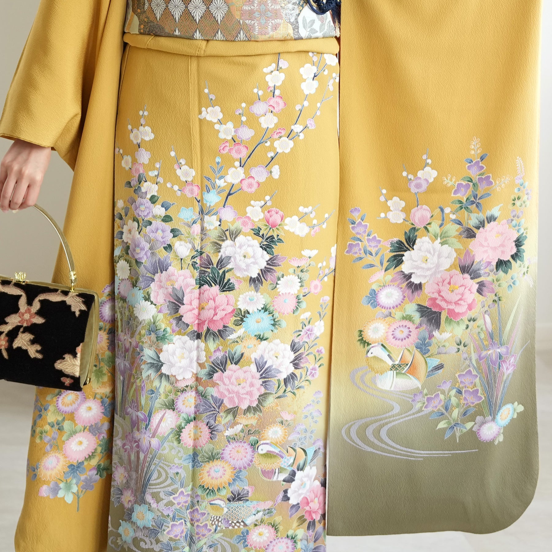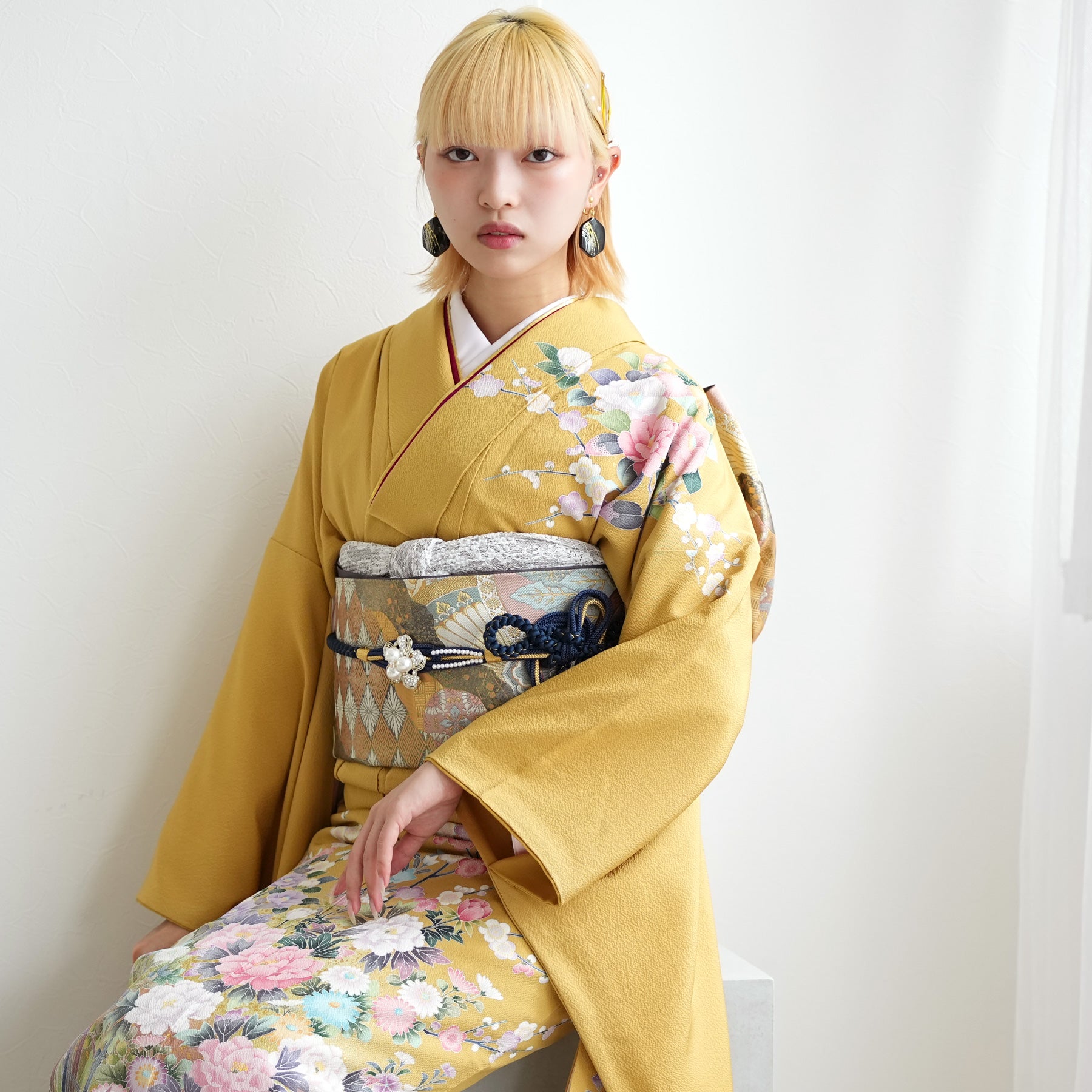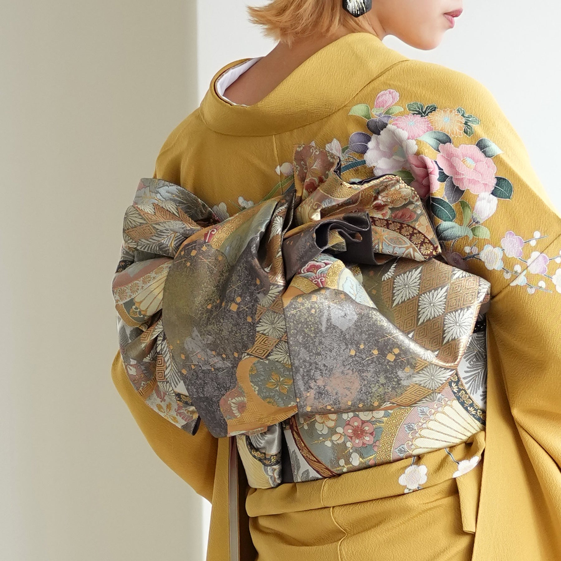 振袖・袋帯・草履・バッグ・長襦袢・帯〆・帯揚げ・重ね衿・肌襦袢・前板・着付けベルト・ウエストベルト・三重仮紐・腰ひも3本セット・帯まくら・伊達締め ・マジックベルト・衿芯・足袋(プレゼント)
