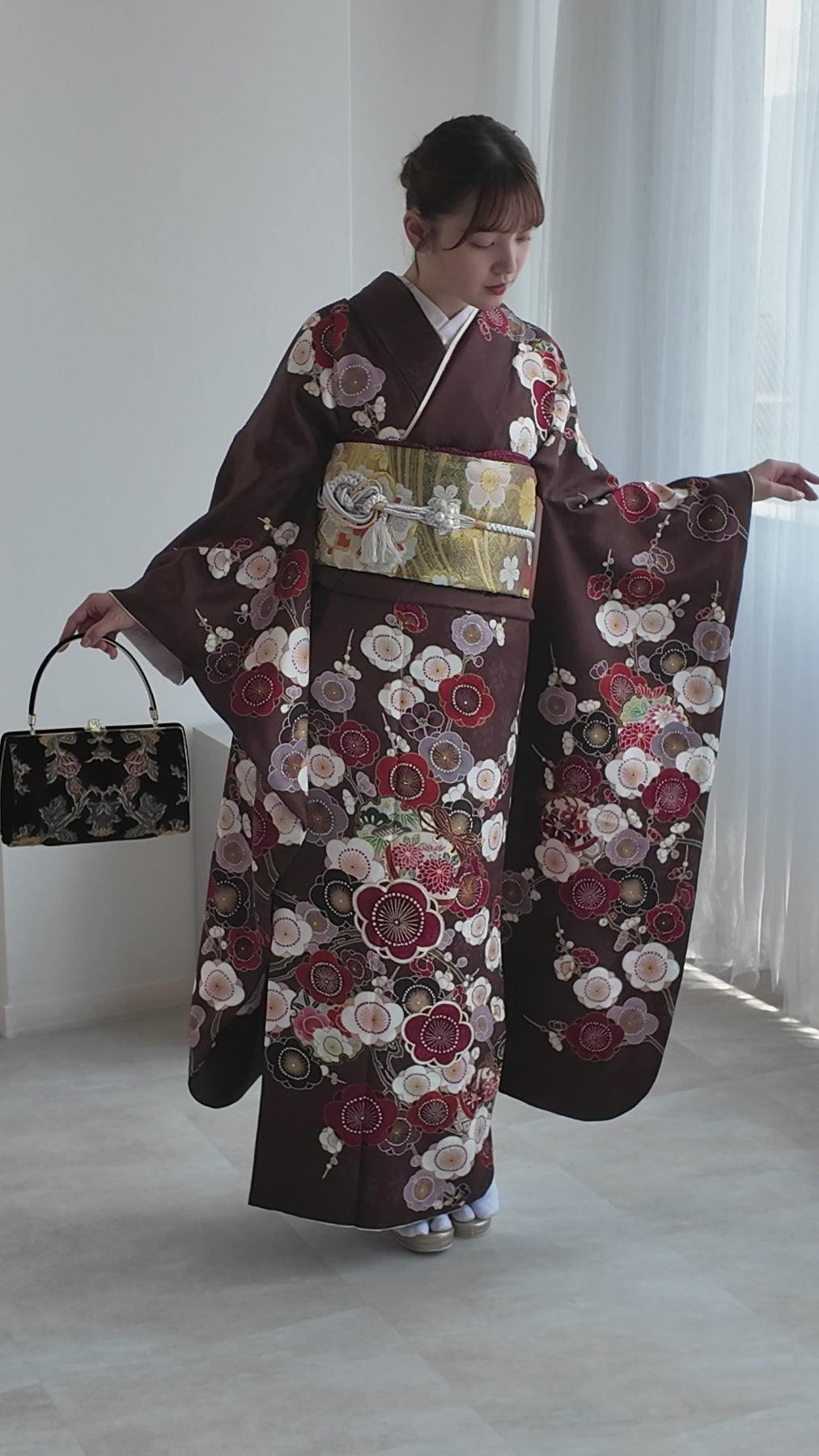 振袖・袋帯・草履・バッグ・長襦袢・帯〆・帯揚げ・重ね衿・肌襦袢・前板・着付けベルト・ウエストベルト・三重仮紐・腰ひも3本セット・帯まくら・伊達締め ・マジックベルト・衿芯・足袋(プレゼント)