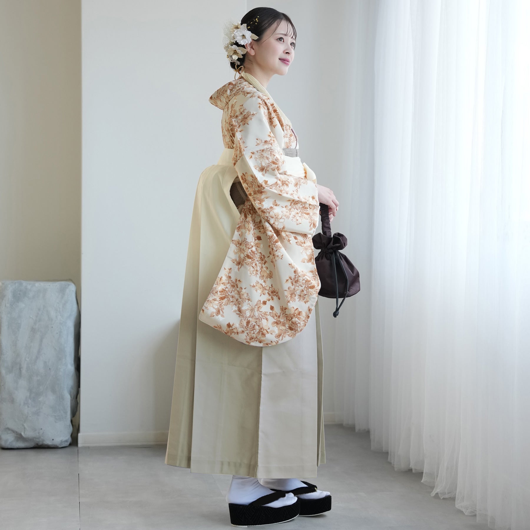 着物・袴・草履・バッグ・重ね襟(着物に縫い付済)・半巾帯・肌襦袢+長襦袢一体化インナー(白無地半襟付き)・前板・着付けベルト・ウエストベルト・腰ひも3本セット・伊達締め ・マジックベルト・衿芯・足袋(プレゼント)