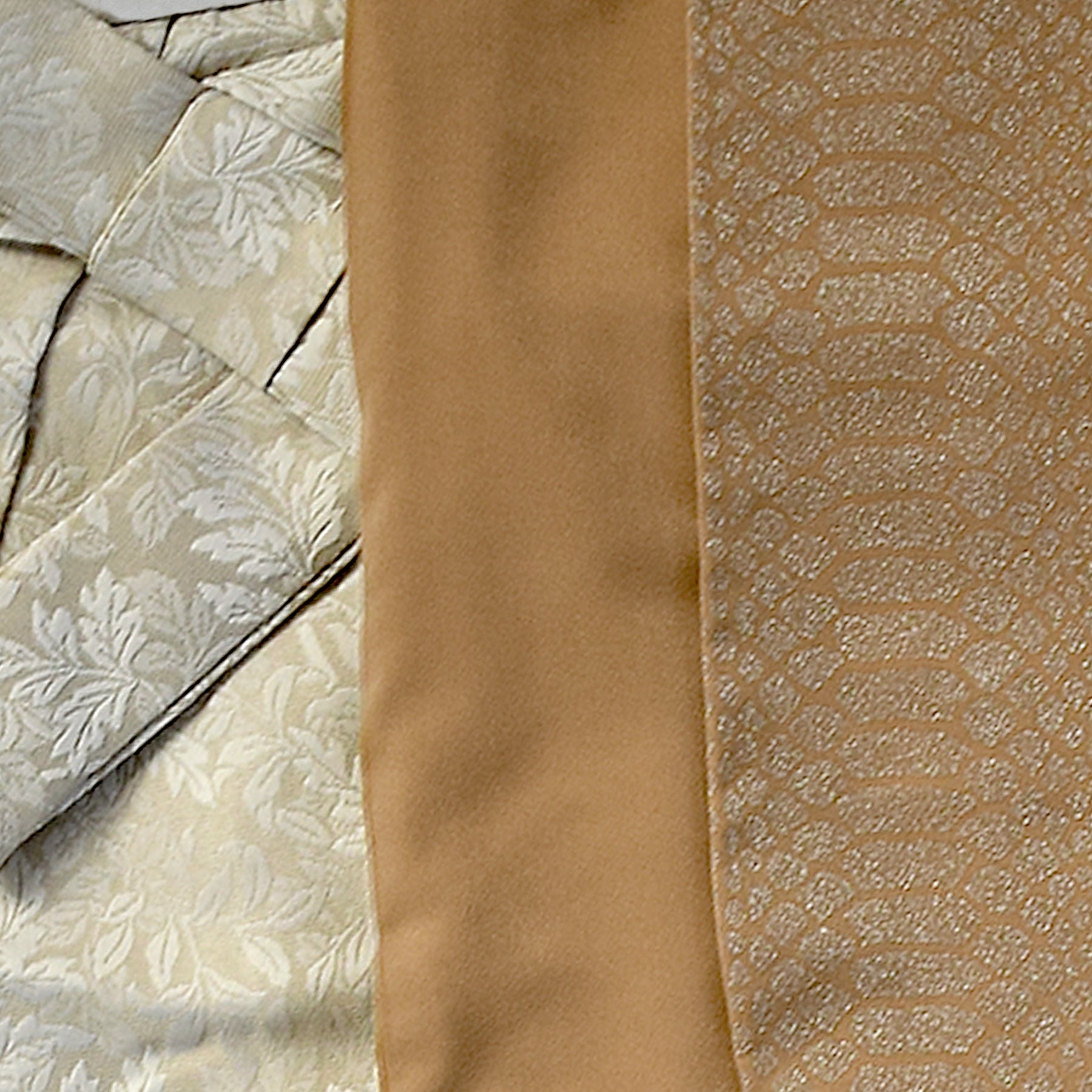 縫い付け済の重ね衿は着物(無地部分)と同生地のものになります。