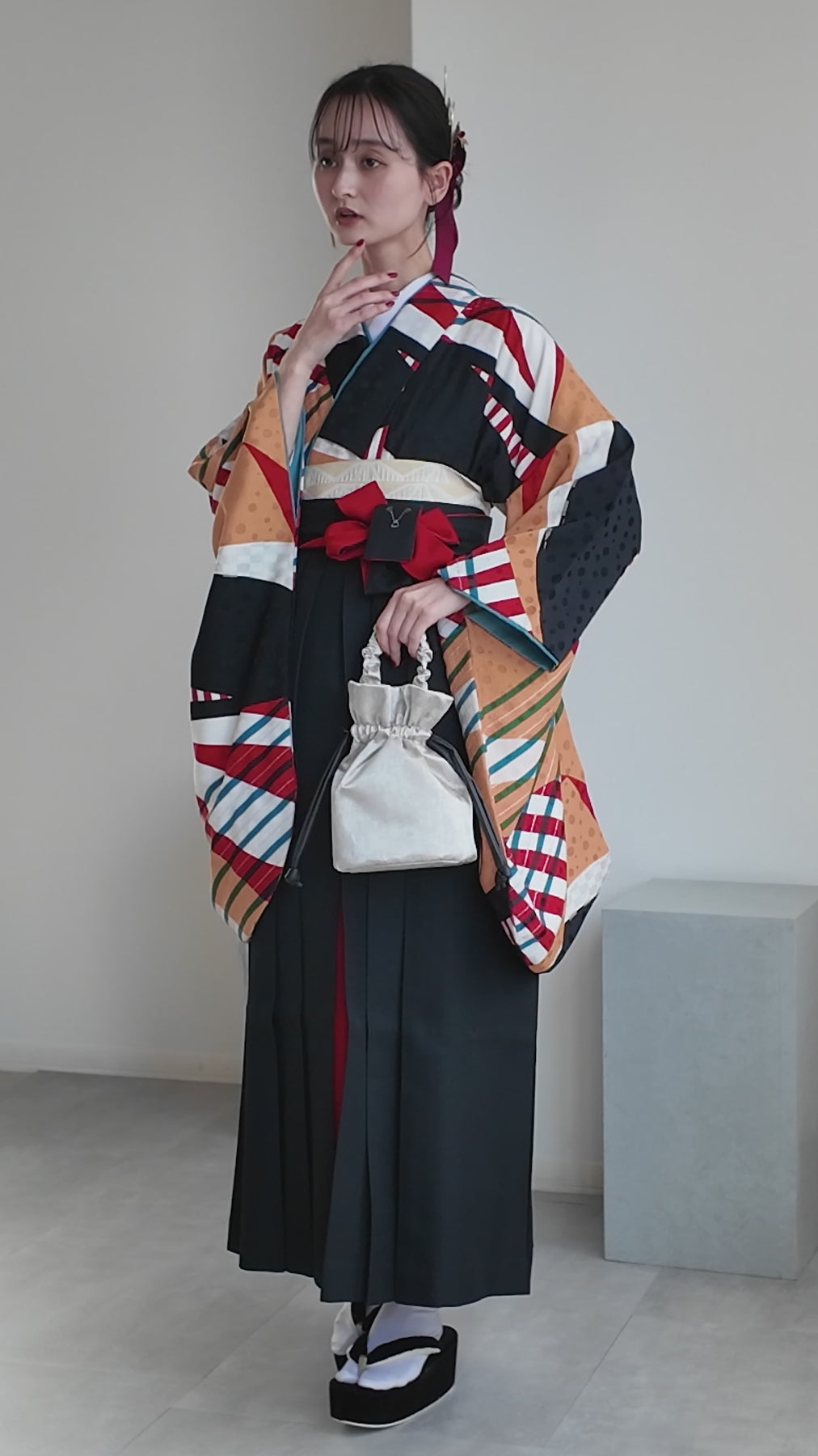 着物・袴・草履・バッグ・重ね襟(着物に縫い付済)・半巾帯・肌襦袢+長襦袢一体化インナー(白無地半襟付き)・前板・着付けベルト・ウエストベルト・腰ひも3本セット・伊達締め ・マジックベルト・衿芯・足袋(プレゼント)