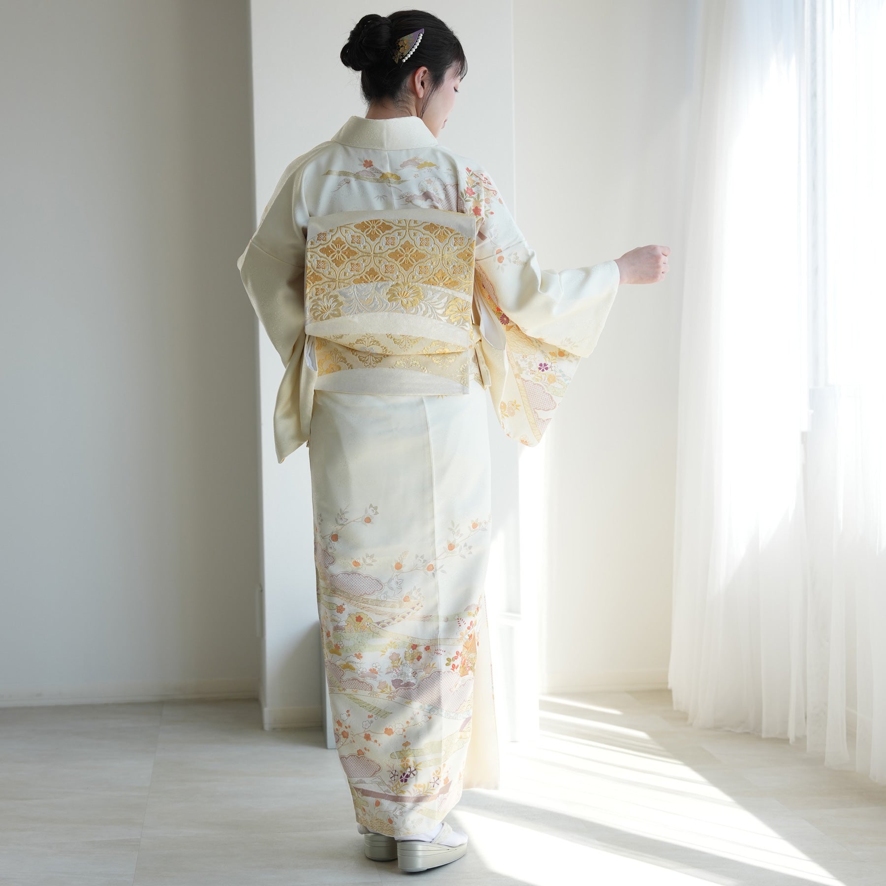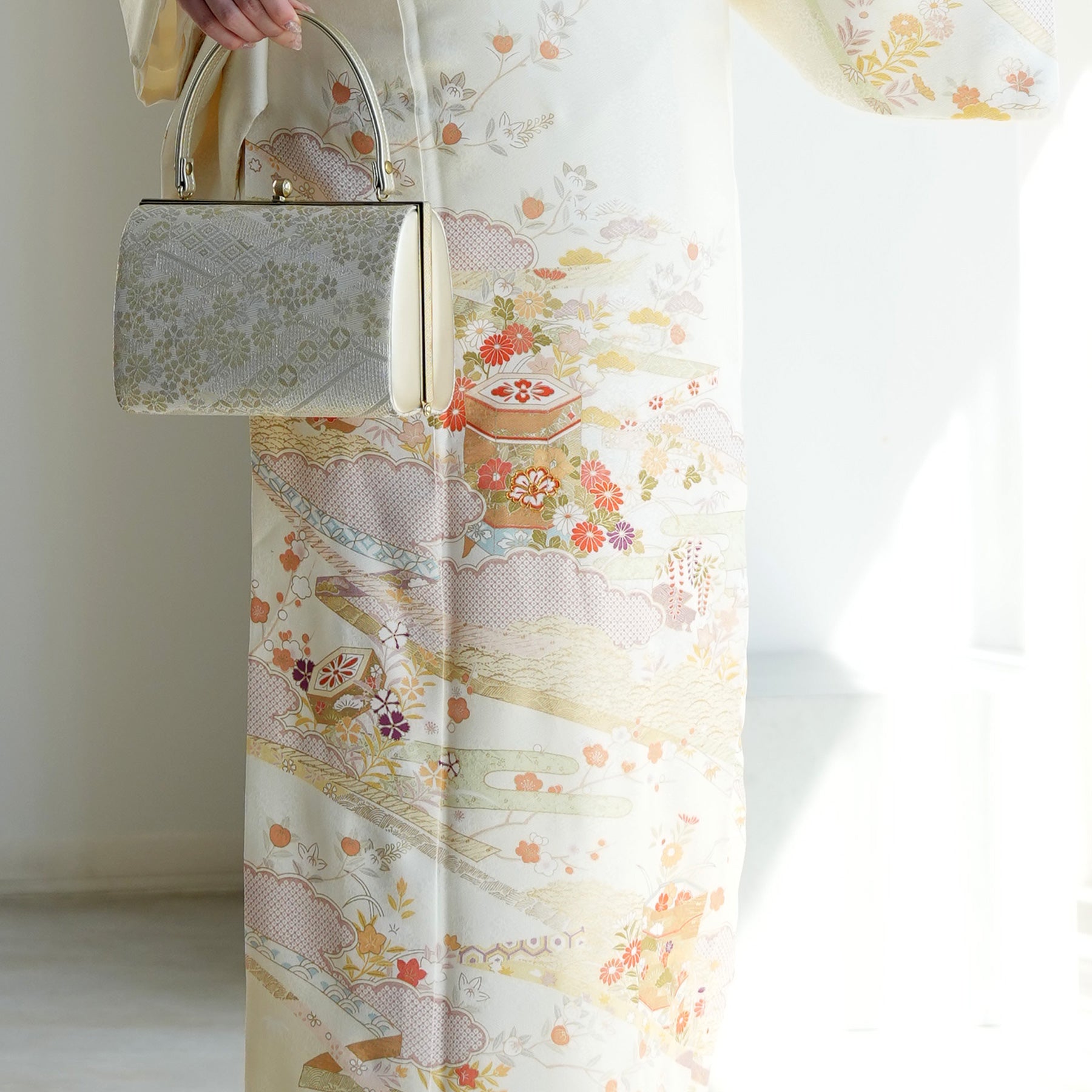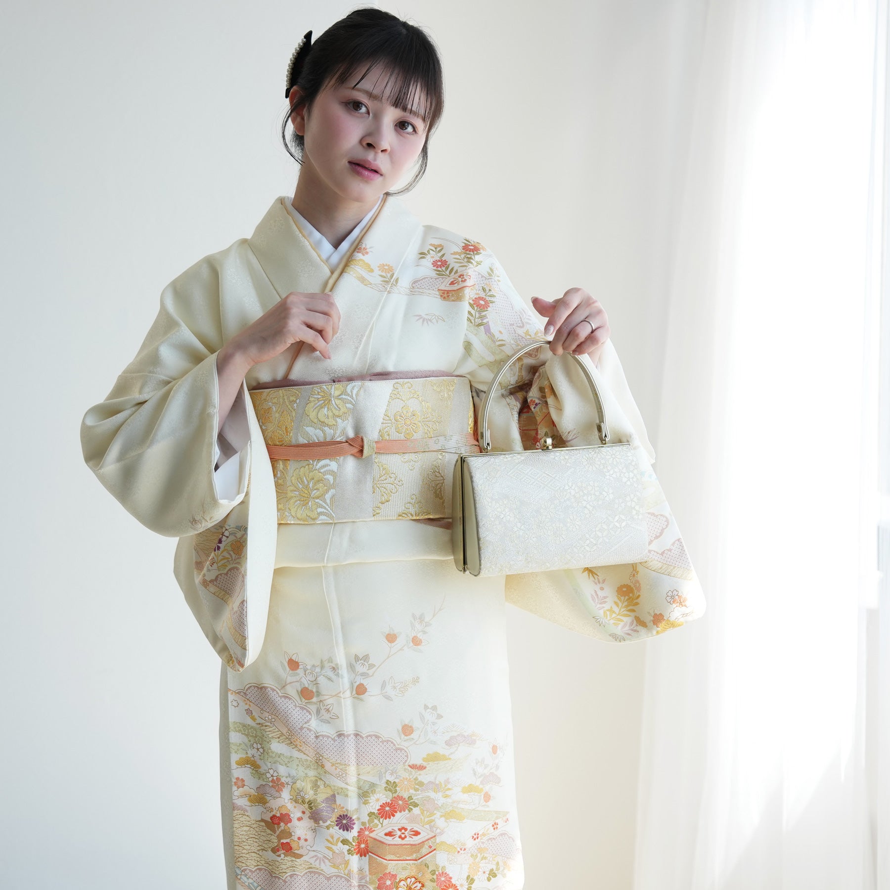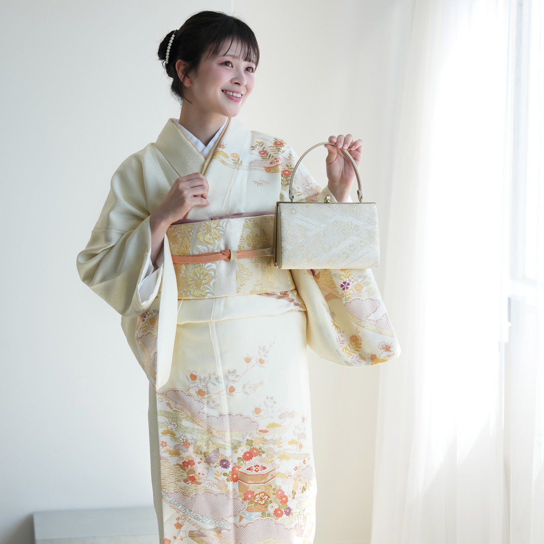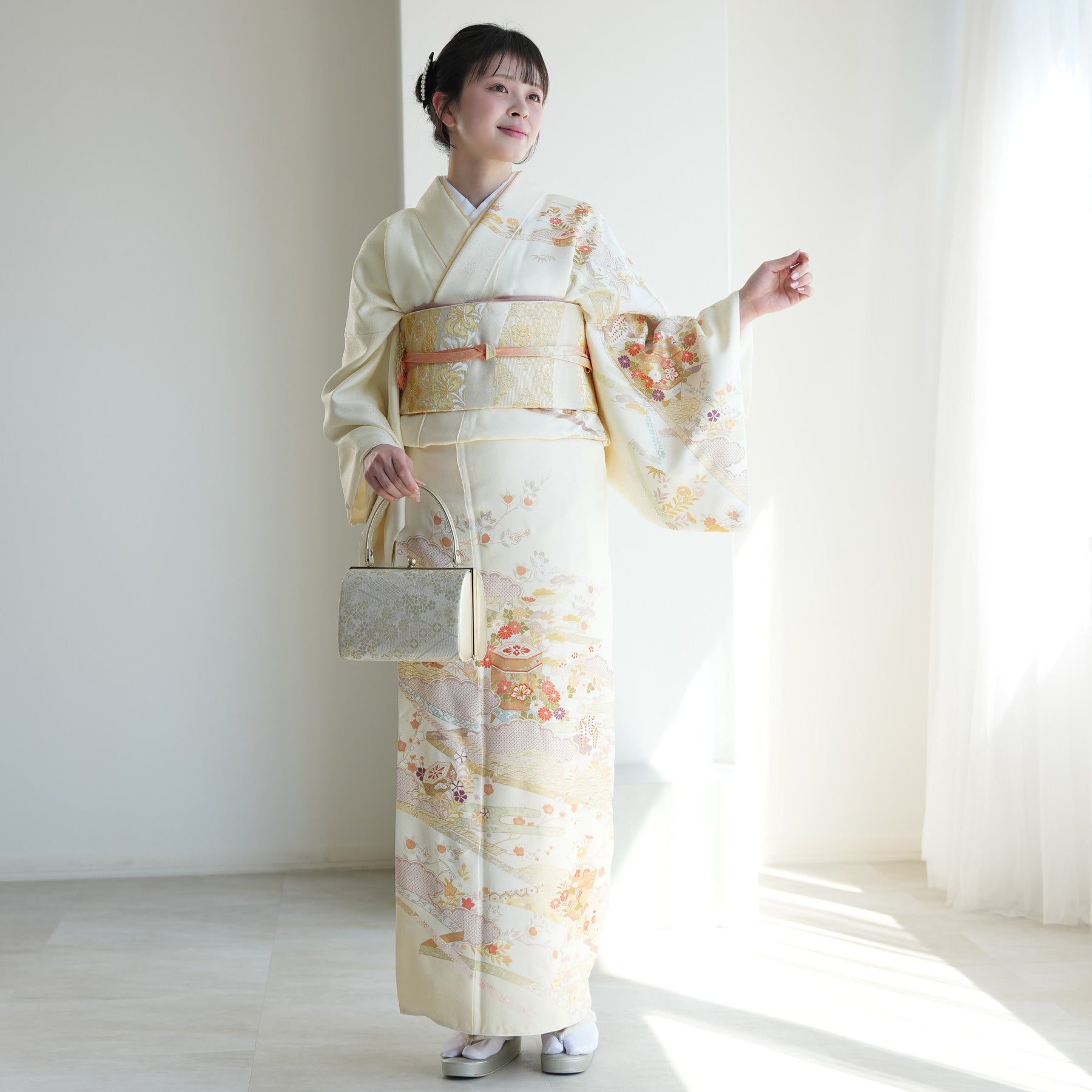 着物・袋帯・草履・バッグ・長襦袢・帯〆・帯揚げ・重ね衿・肌襦袢・前板・着付けベルト・ウエストベルト・腰ひも3本セット・帯まくら・伊達締め・マジックベルト・衿芯・足袋(プレゼント)