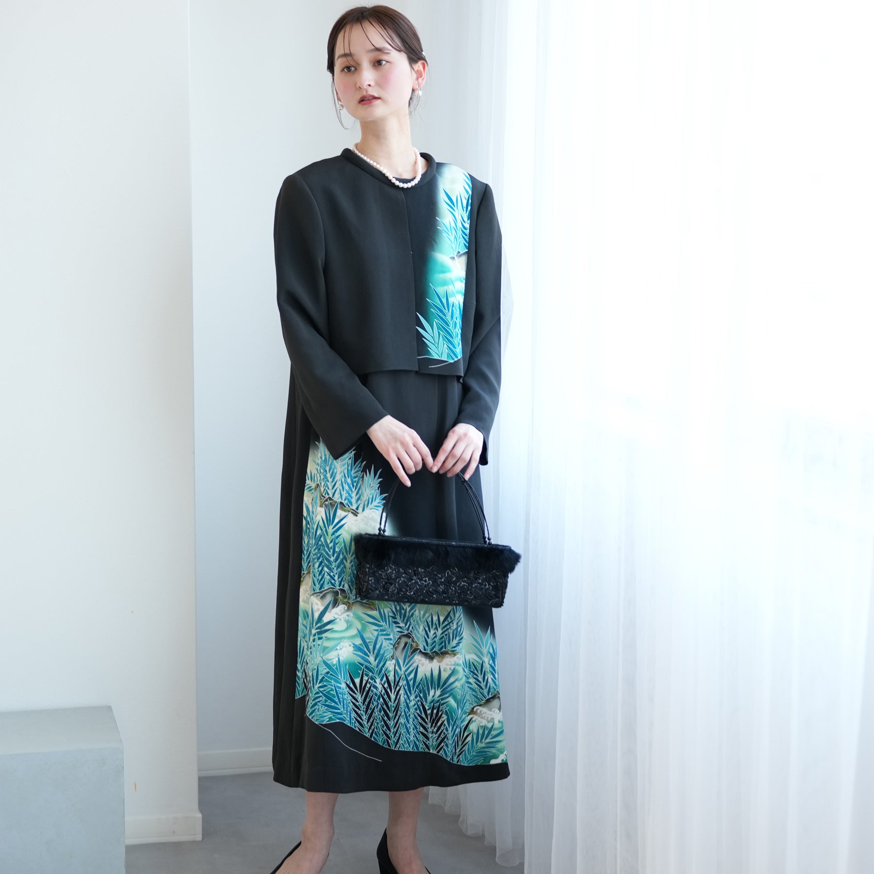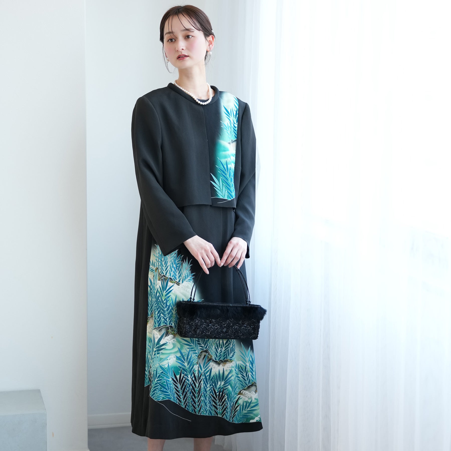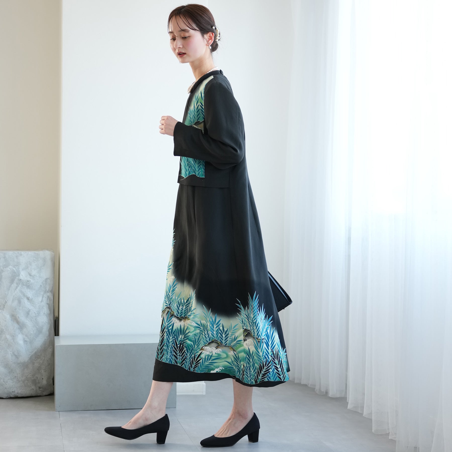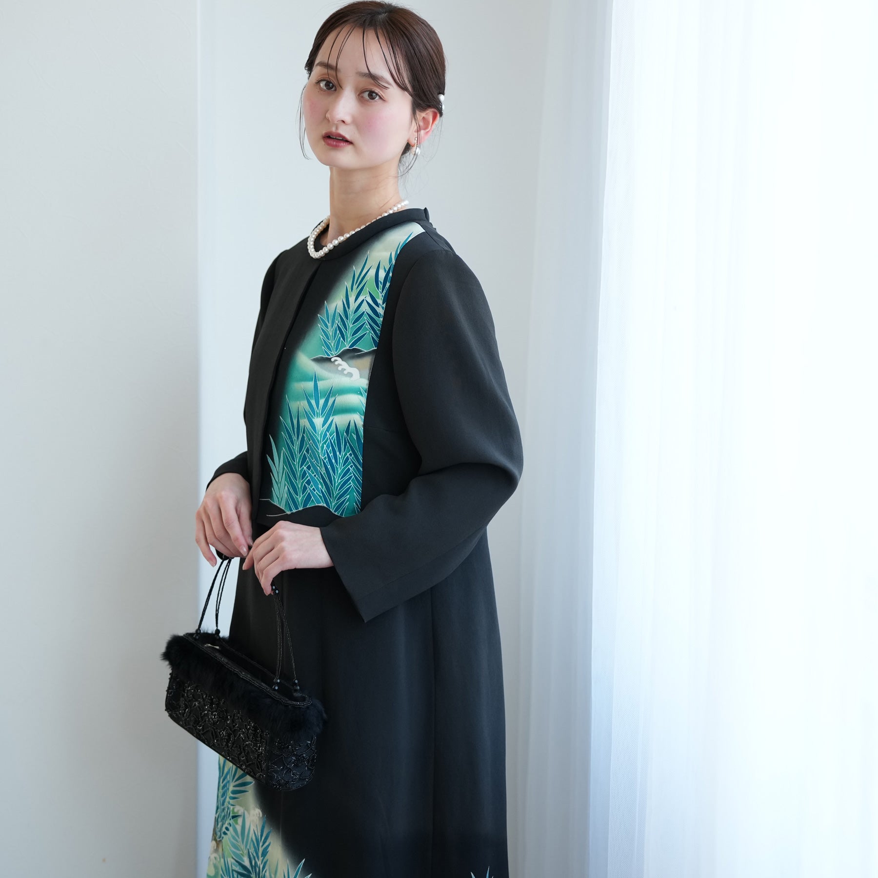 日本の伝統衣装である留袖の美しさをそのままに、洋装として仕立てることで、着物に引けを取らない格調と華やかさを実現しました。