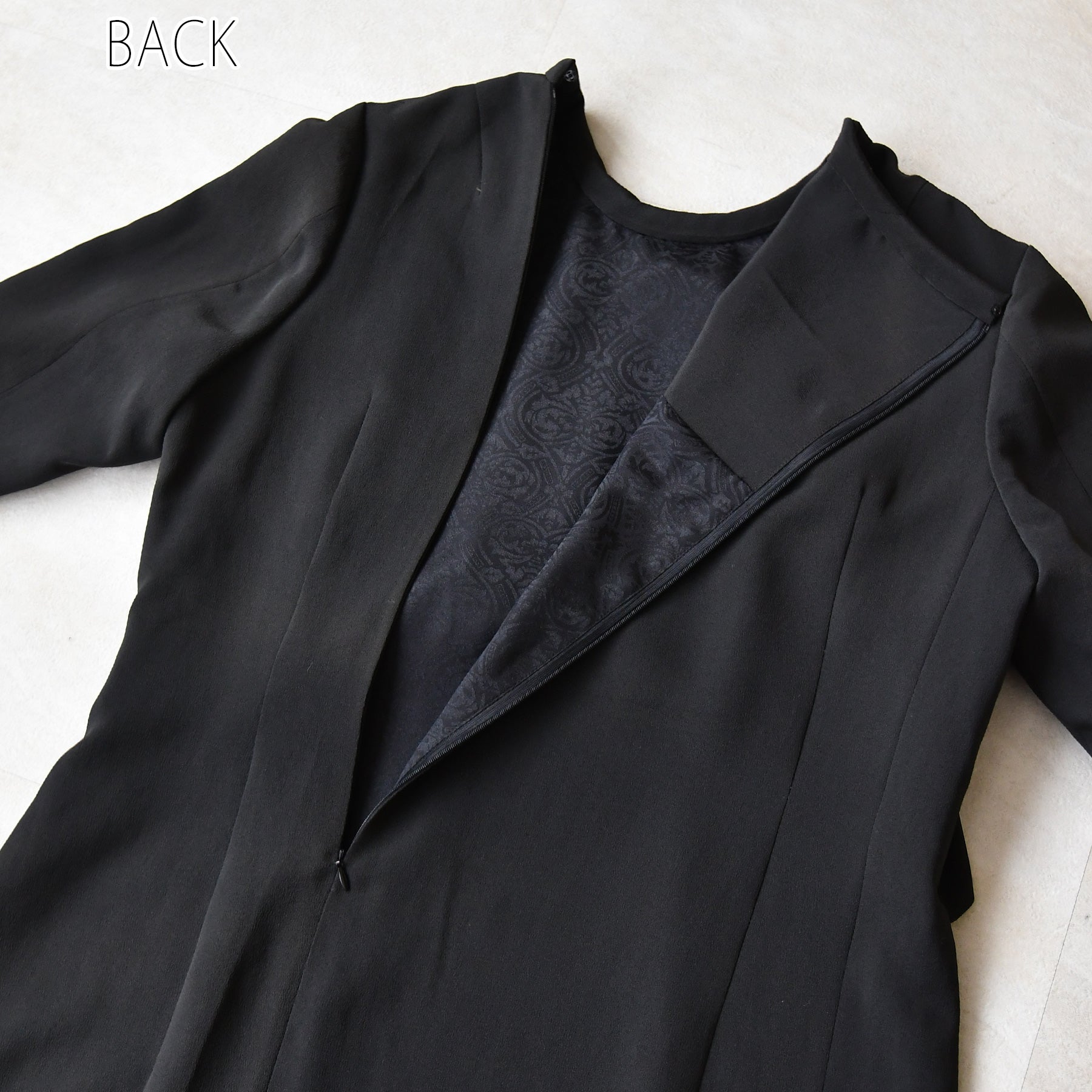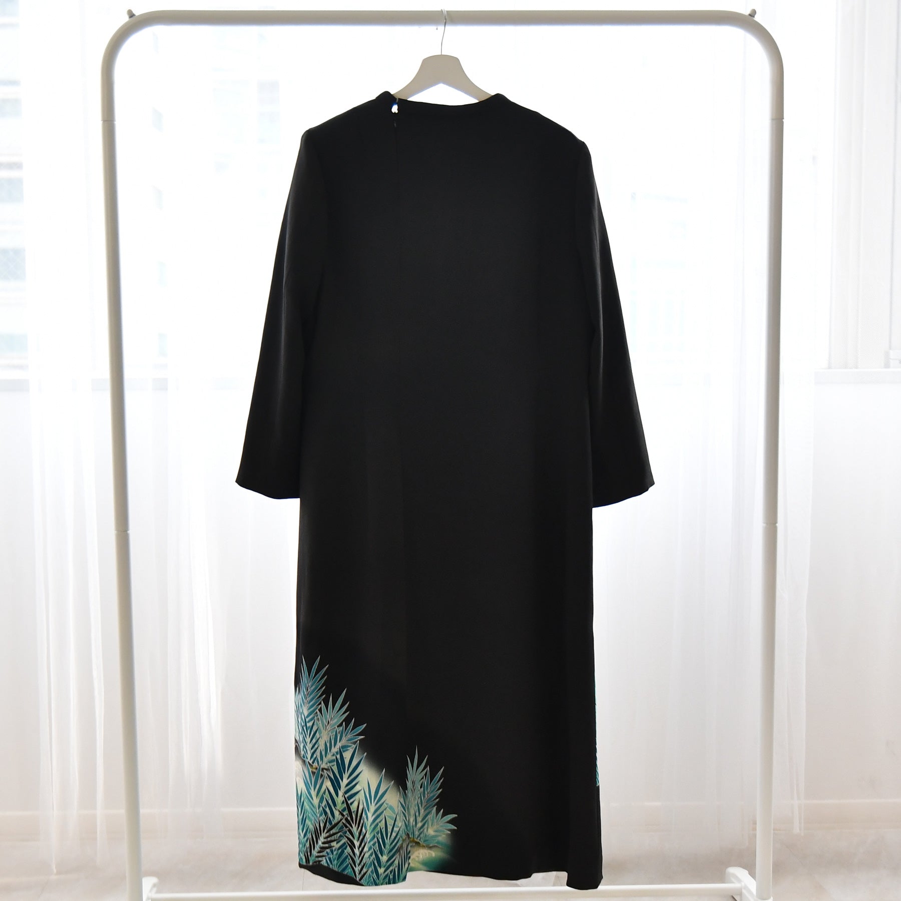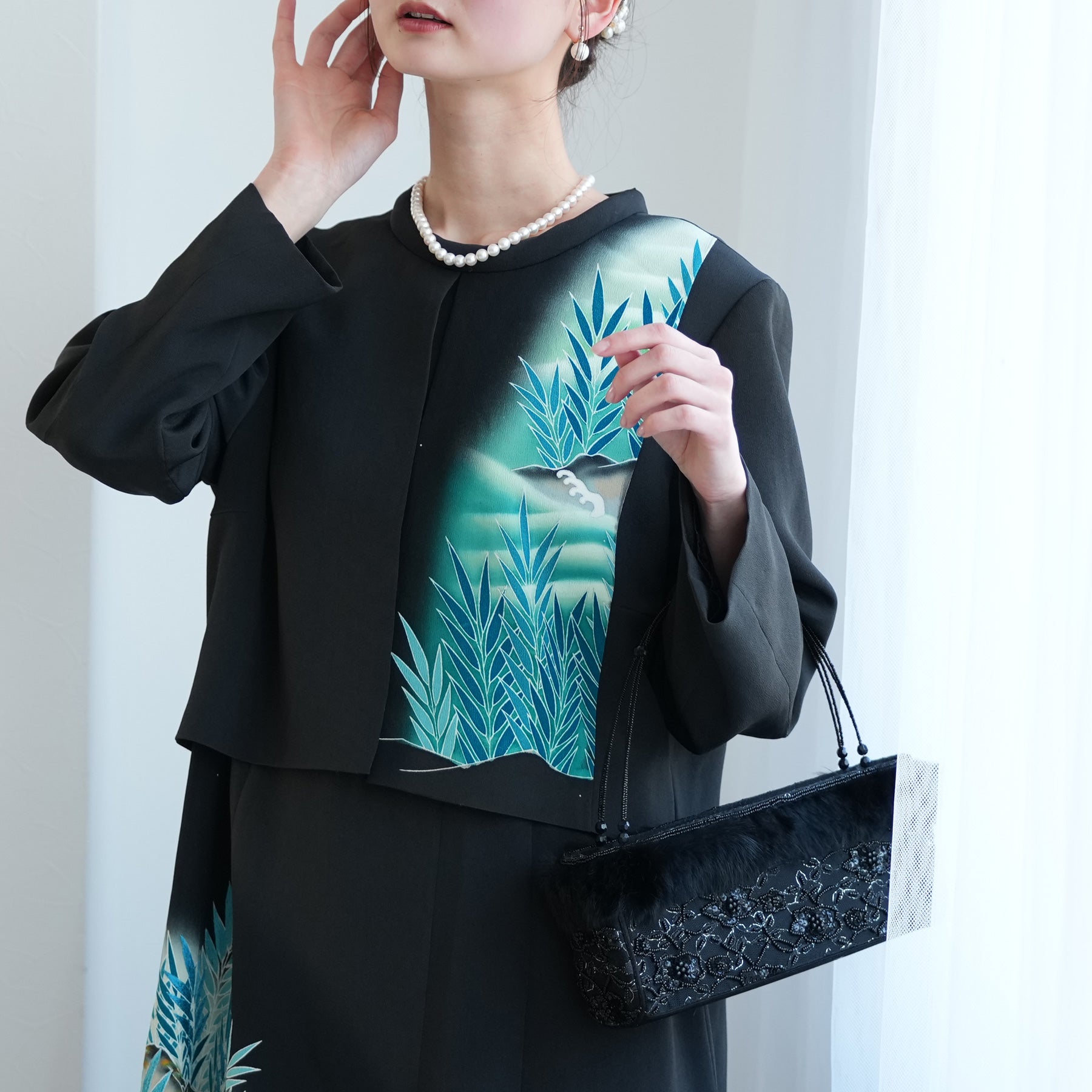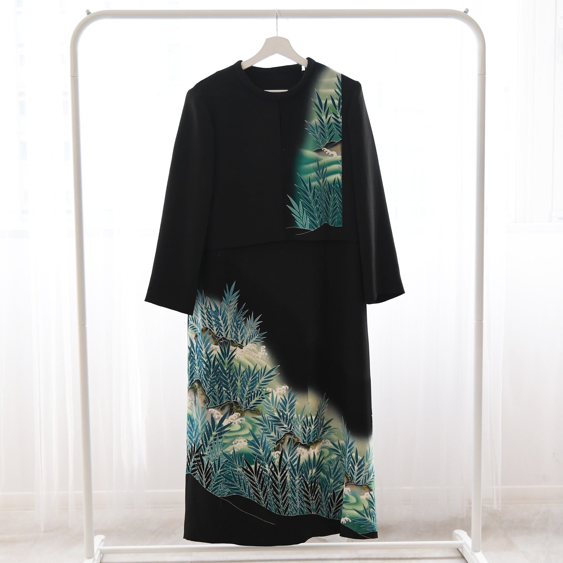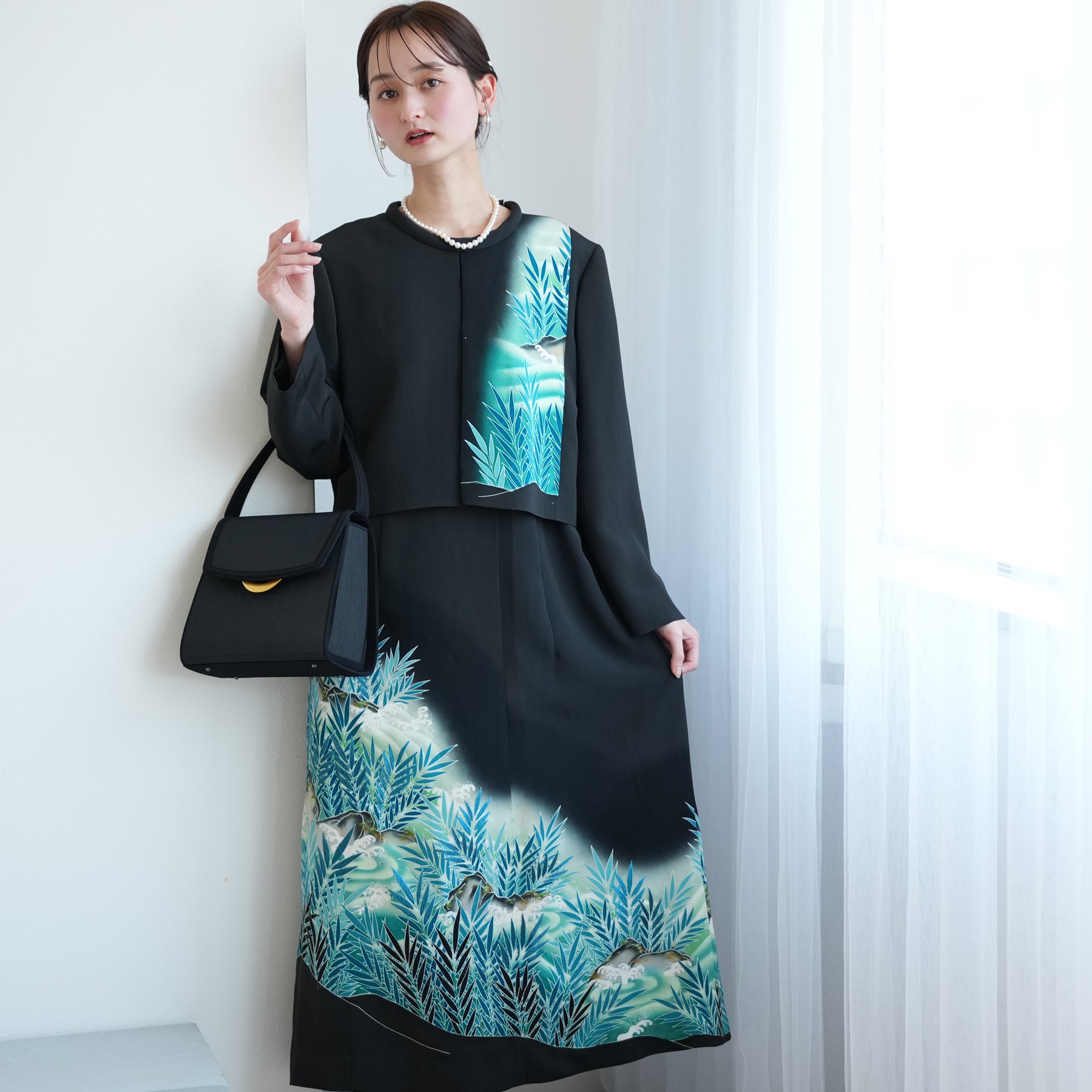 日本の伝統衣装である留袖の美しさをそのままに、洋装として仕立てることで、着物に引けを取らない格調と華やかさを実現しました。