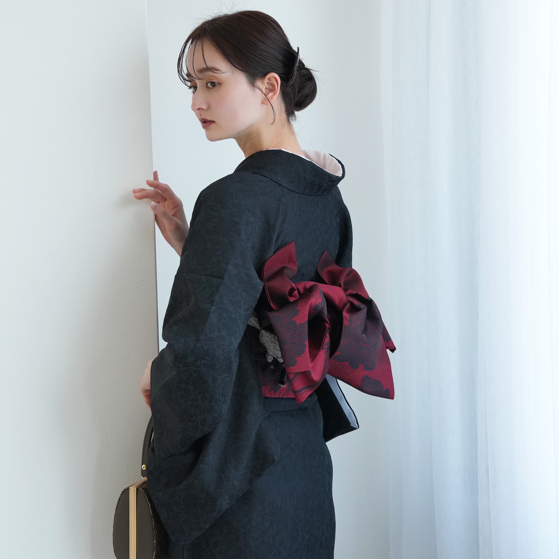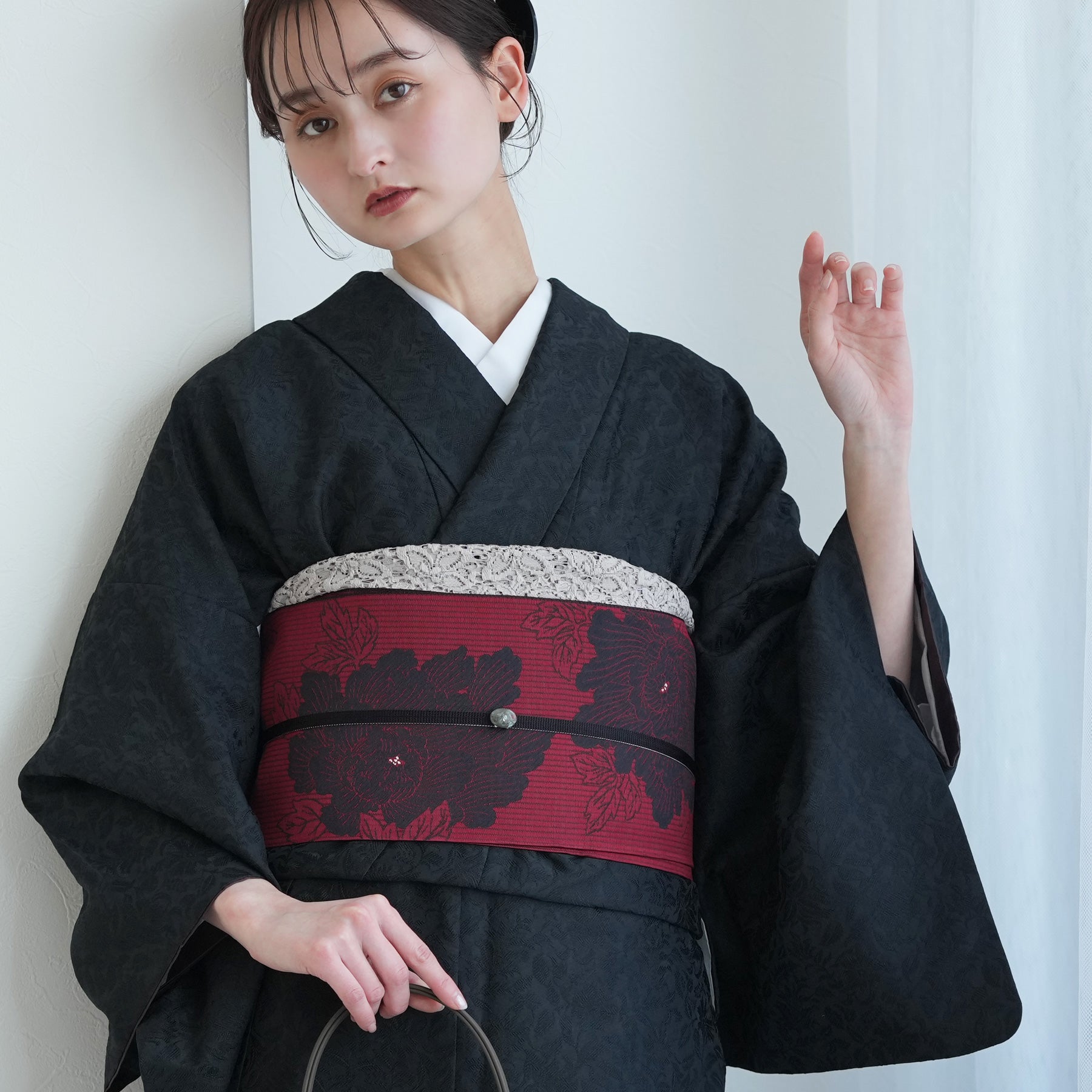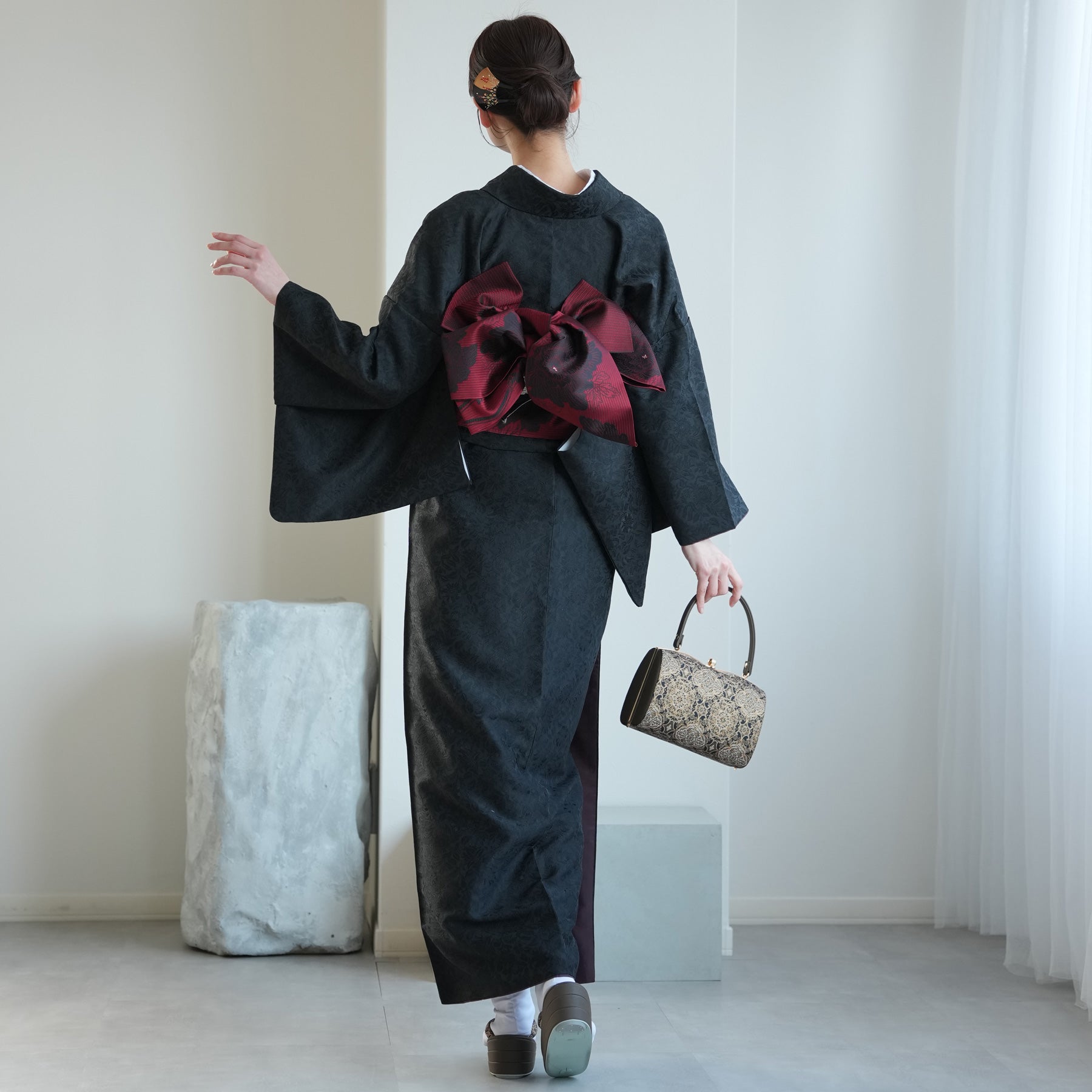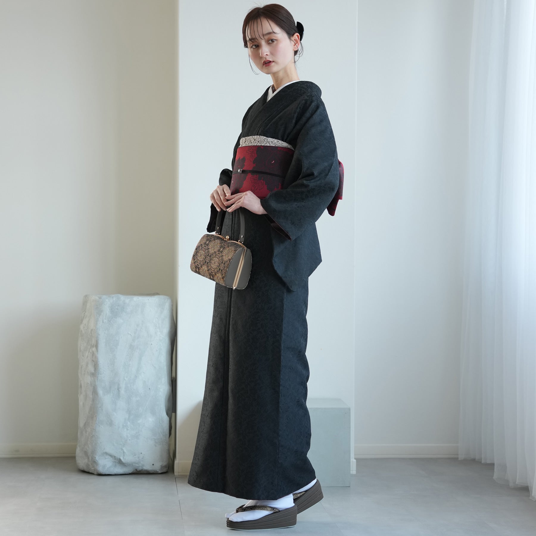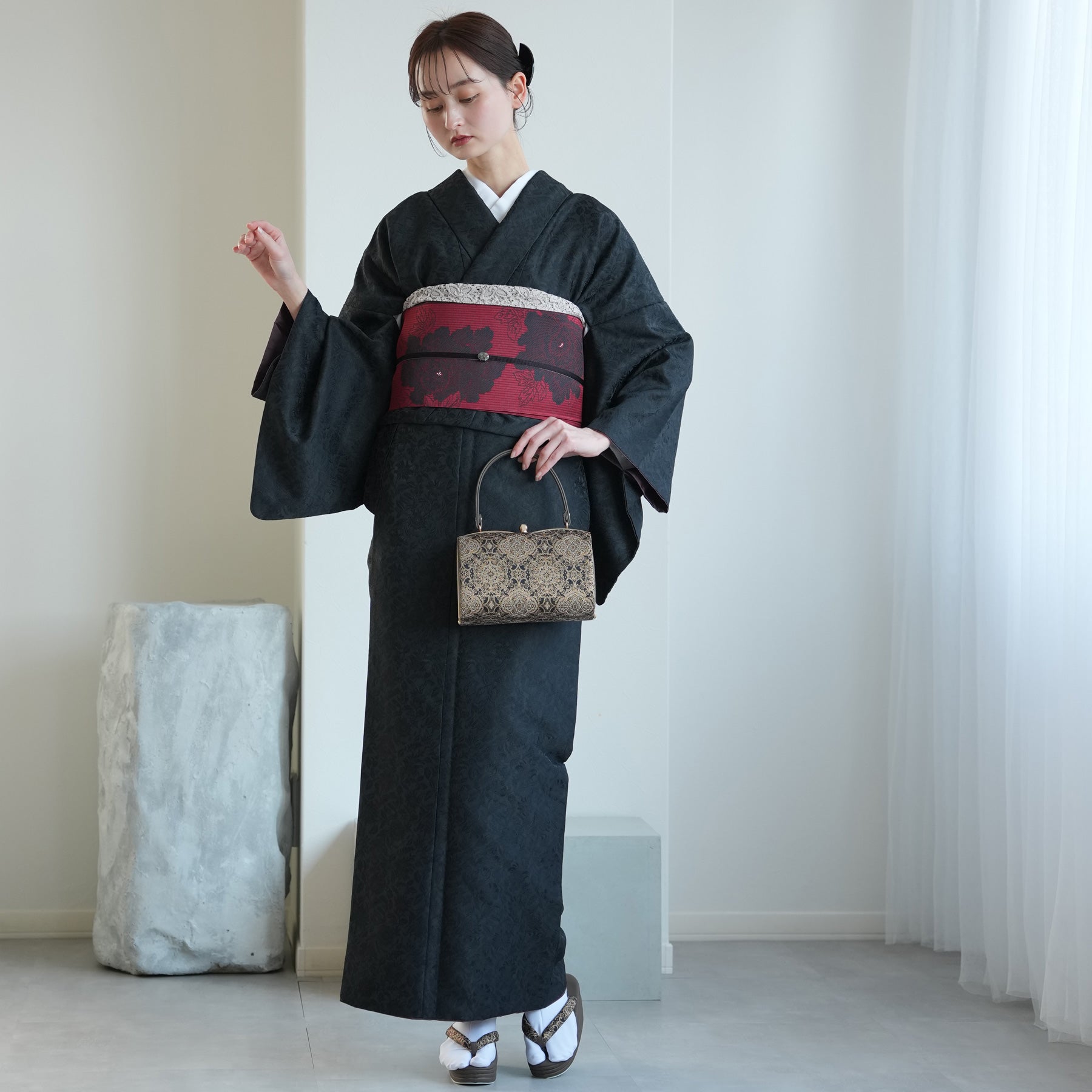 【着物単品 更紗ジャガード・花唐草 ブラック】ファブリック着物 日本製 袷着物 小紋 フリーサイズ お仕立て上がり(5132609200)