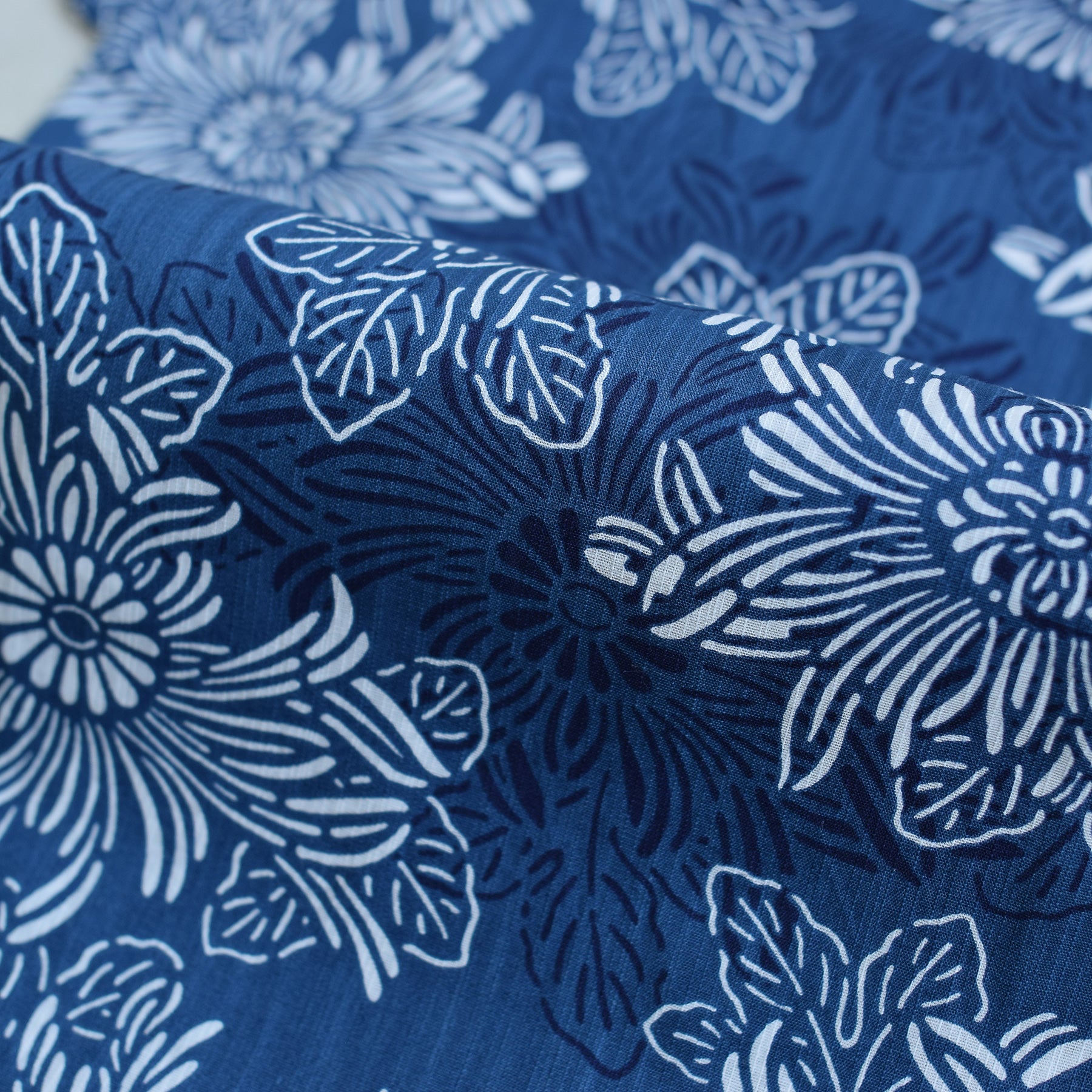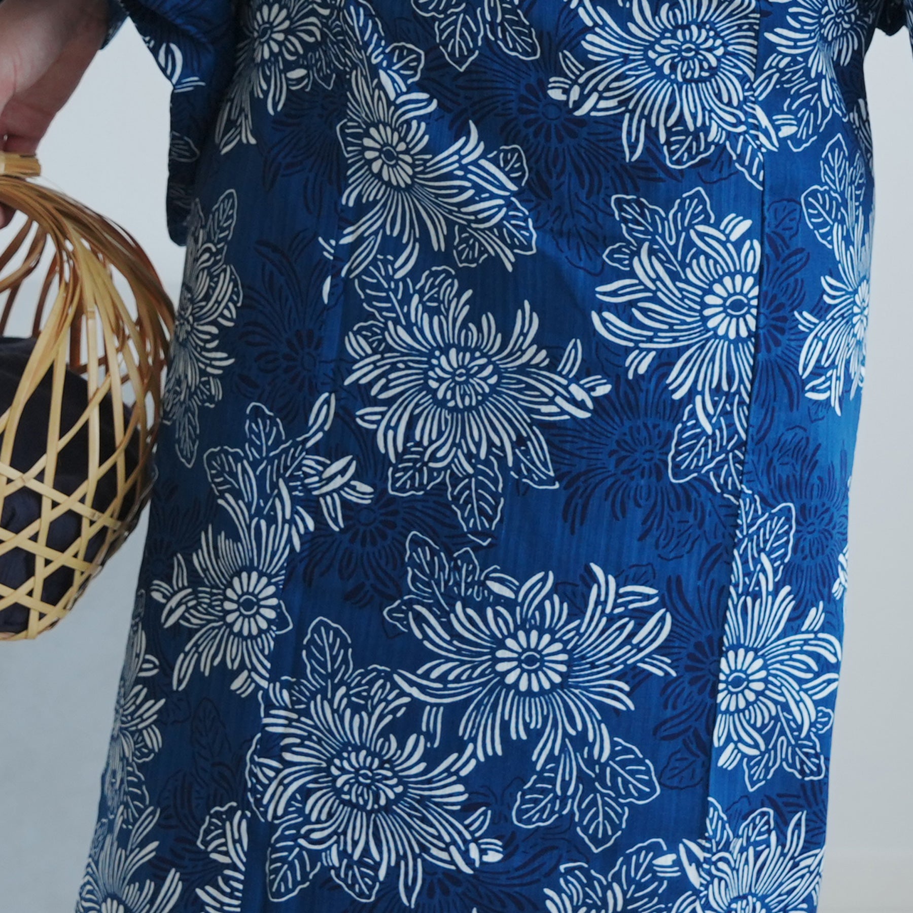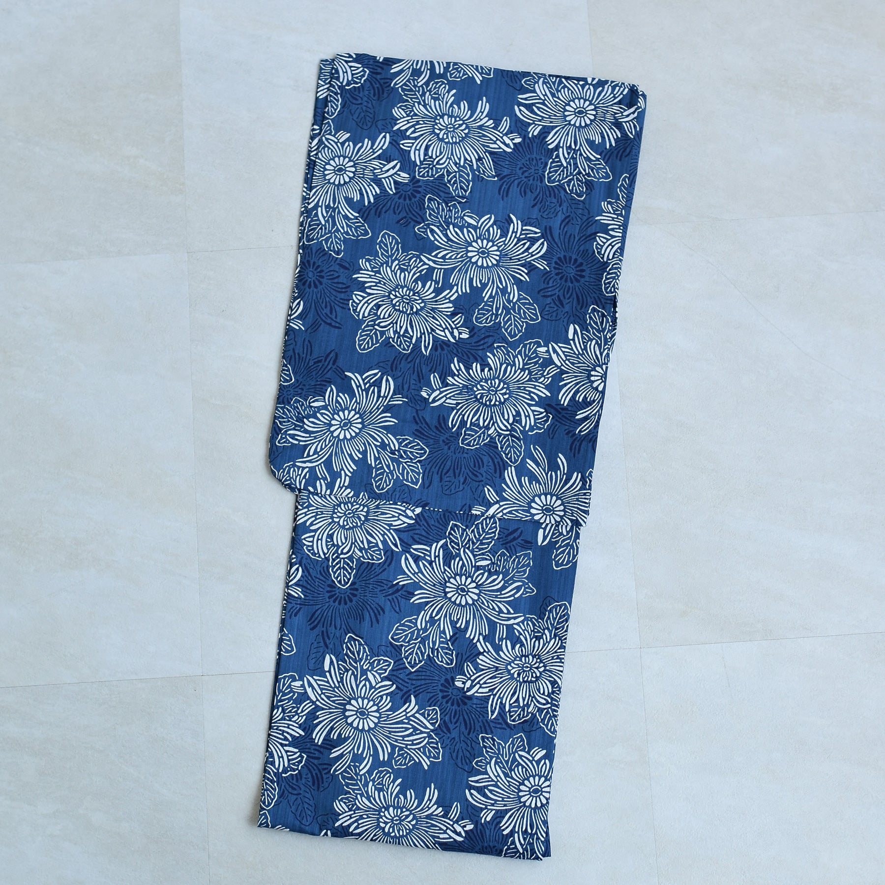【utatane 高級変わり織 浴衣3点セット ( ゆかた・帯・下駄 ) 青藍に重なる古典菊】 Sサイズ (150-160cm)国産生地 国内染色 昭和初期アンティーク復刻版(5011278811)