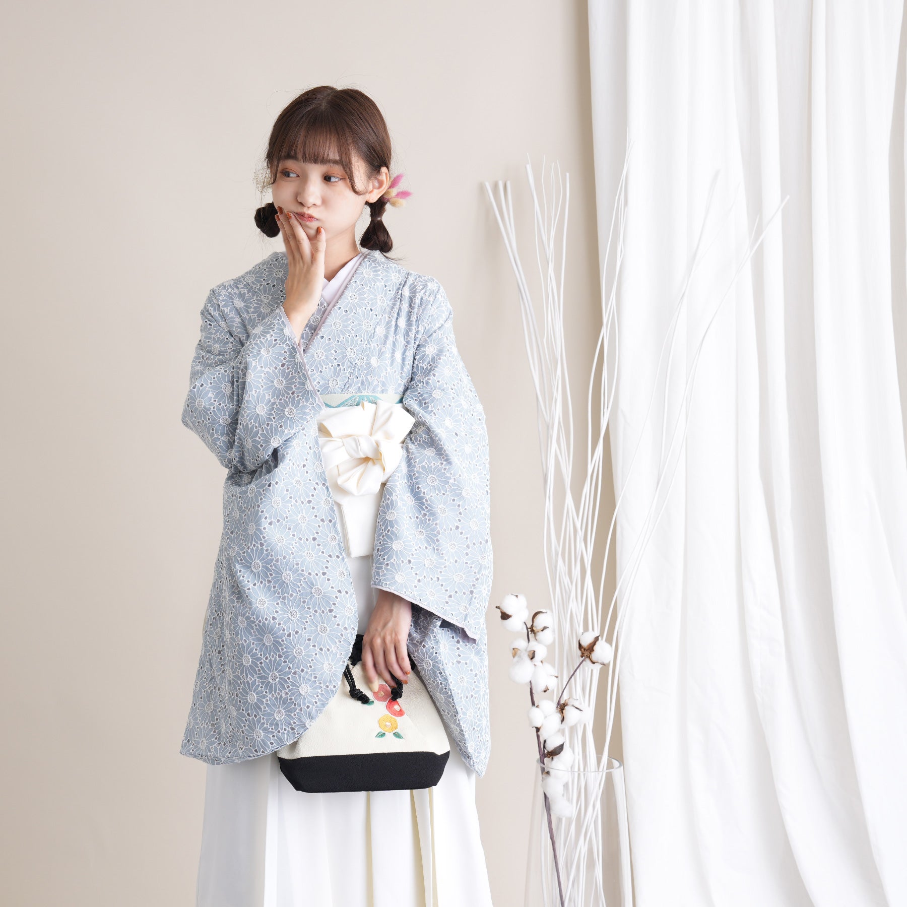 【リサイクル着物】 2尺袖着物 袴 2点セット 販売品 中古 USED くすみカラー 刺繍  袴91cm(身長153-158cm)卒業式 大学生 (5182697911)【中古販売】