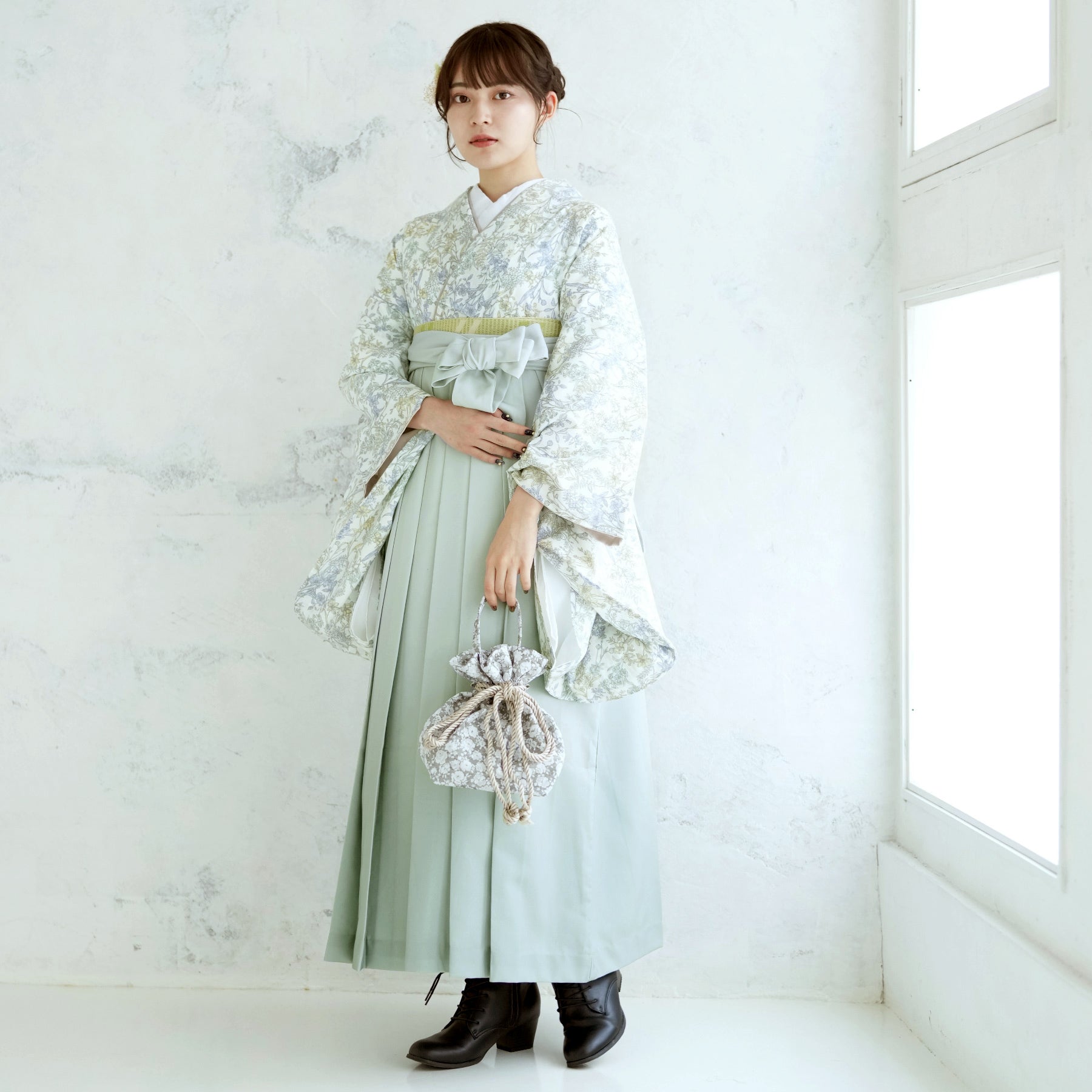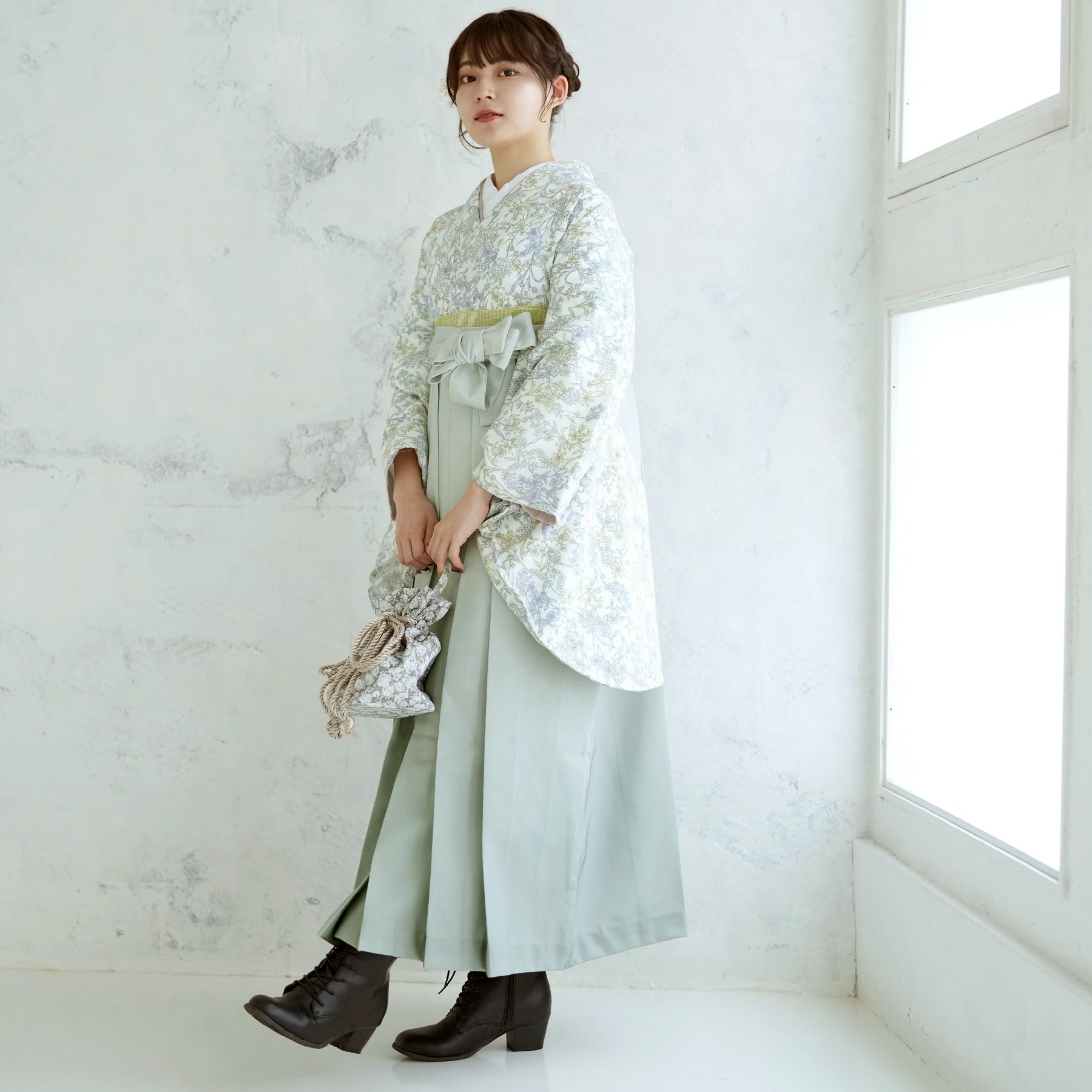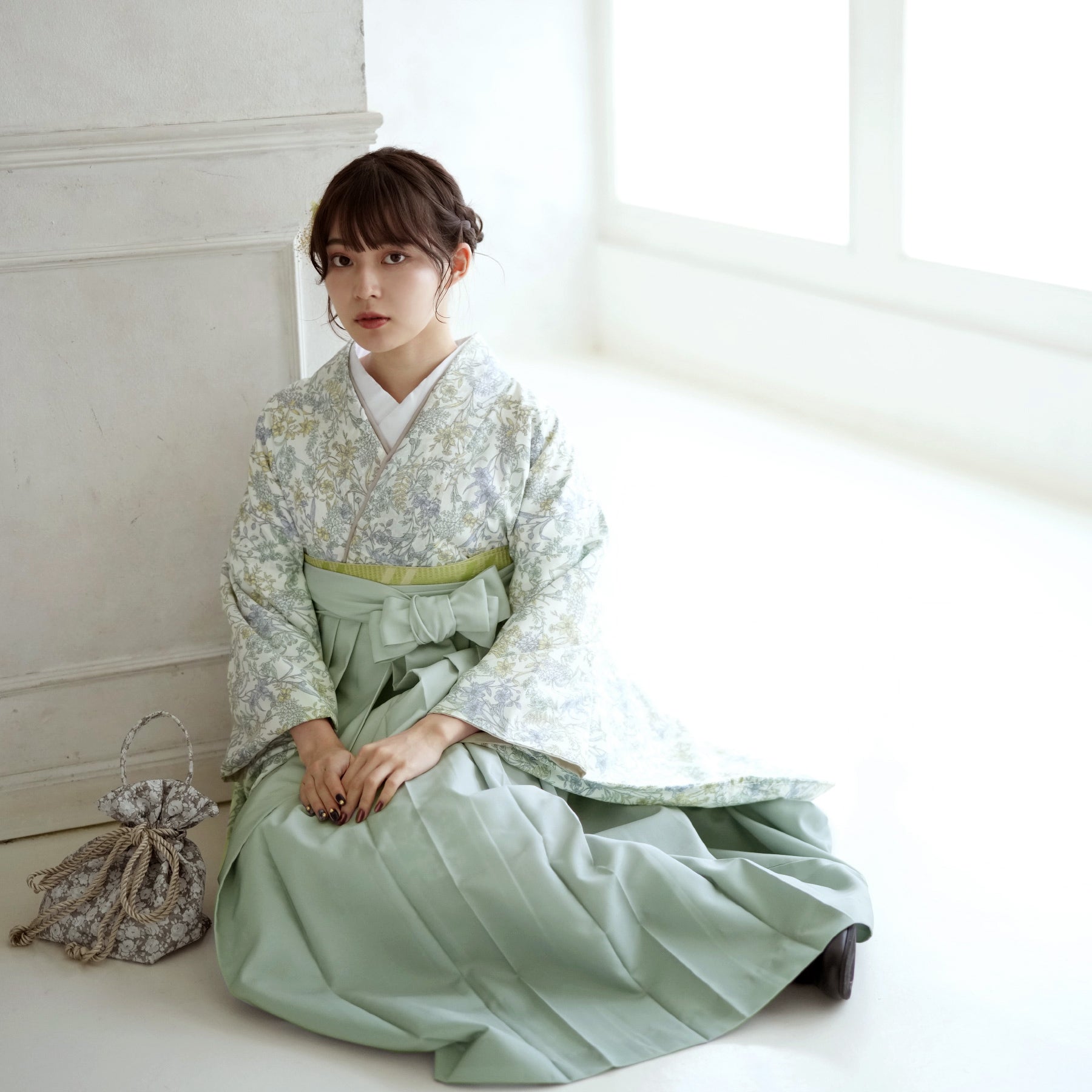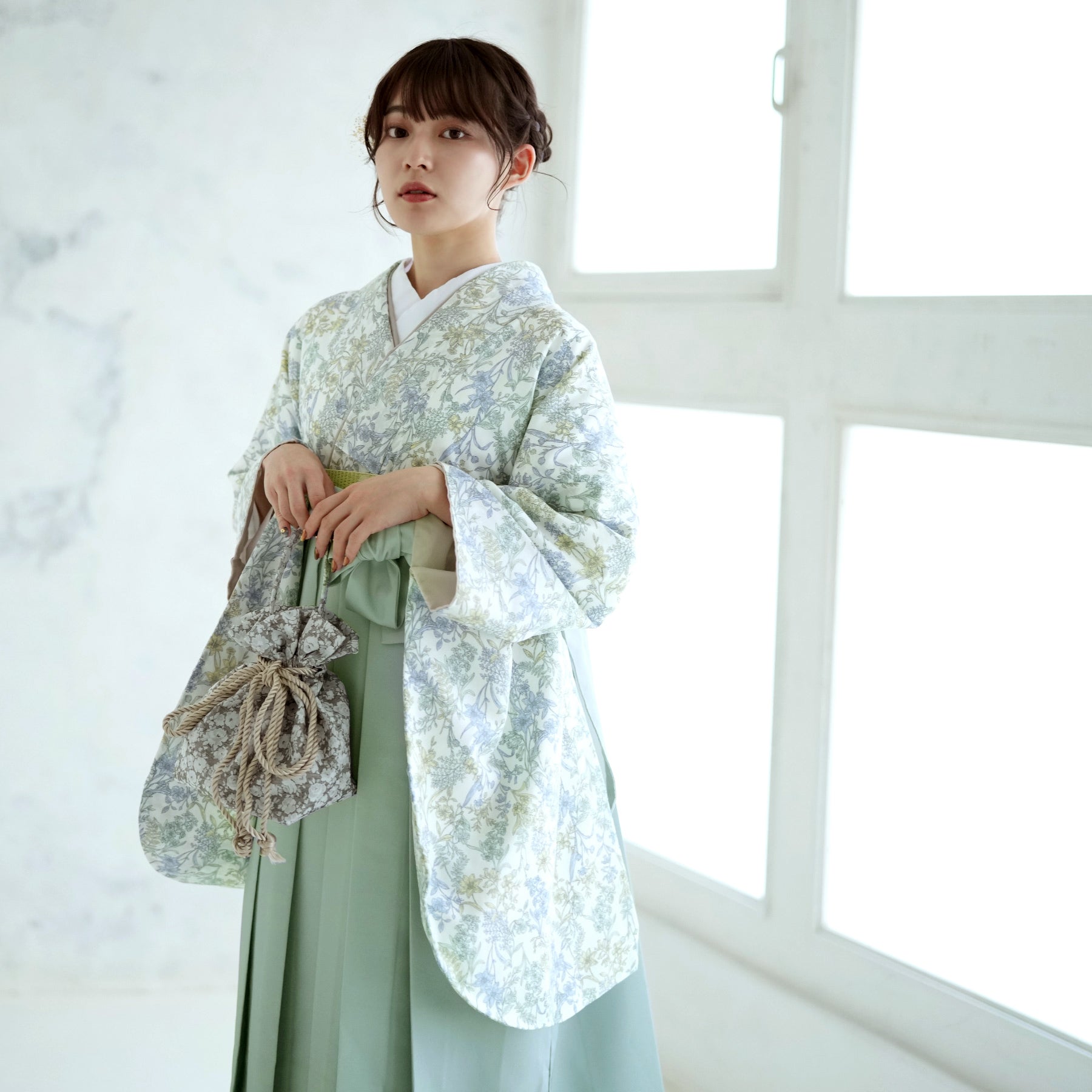 【リサイクル着物】 2尺袖着物 袴 2点セット 販売品 中古 USED ボタニカル 手書き風  袴91cm(身長153-158cm)卒業式 大学生 (5182700911)【中古販売】