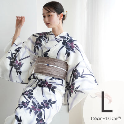 【 utatane 高級変わり織 浴衣3点セット ( ゆかた・帯・下駄 ) レトロホワイトに流れる美人花 】 Lサイズ トールサイズ(身長165-175cm) 国産生地 国内染色 (5012230512)