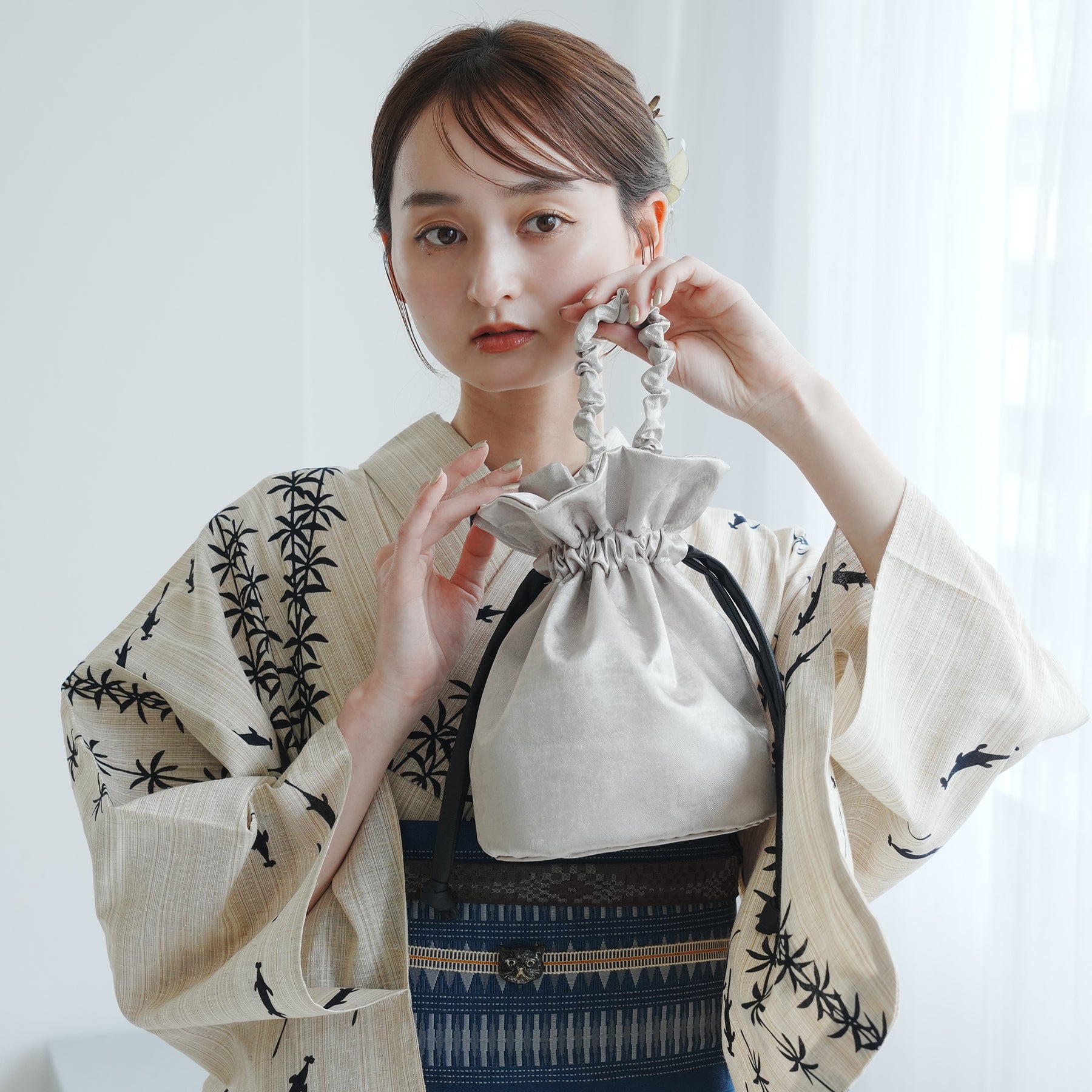 和装にも普段着にもお使いいただきやすい巾着バッグ。