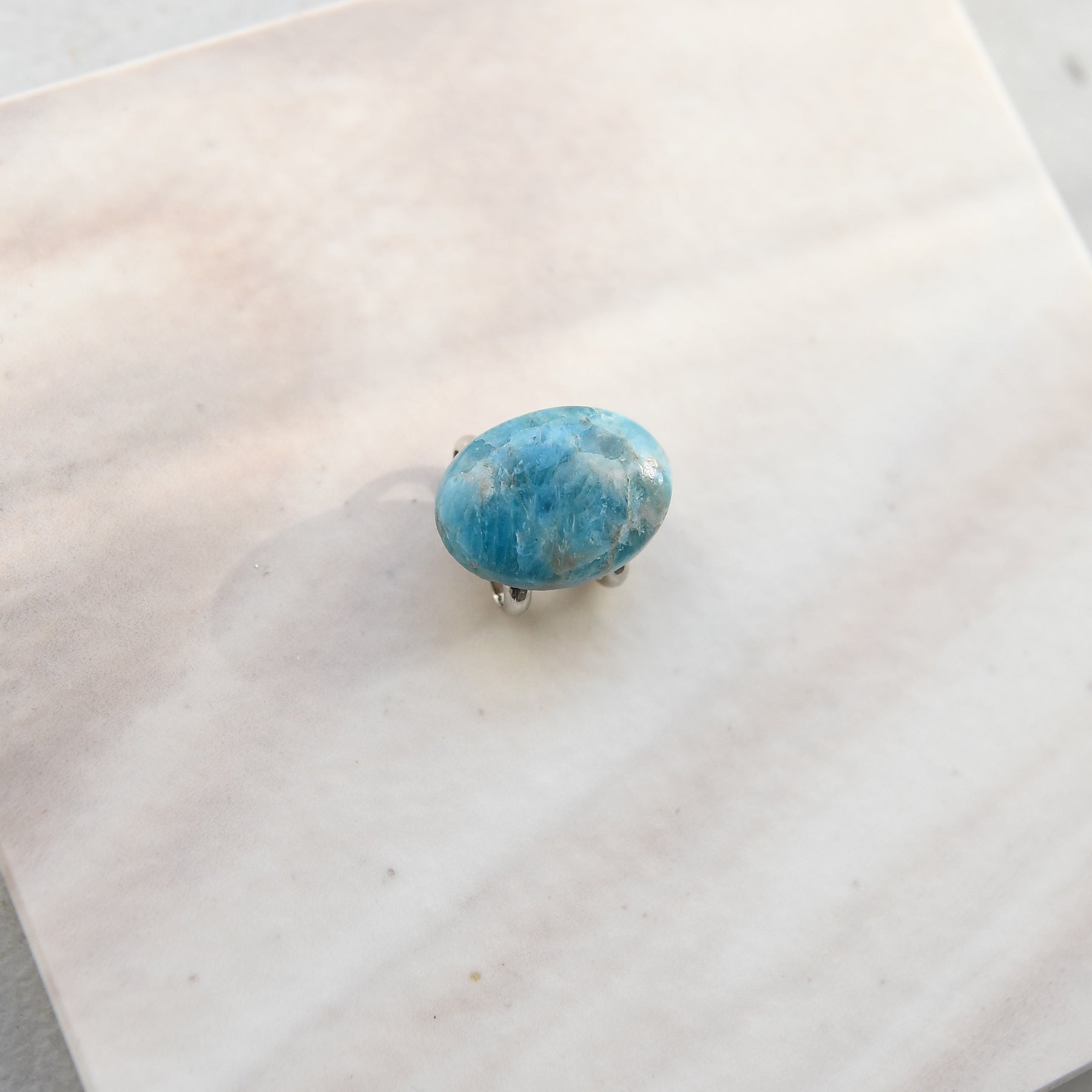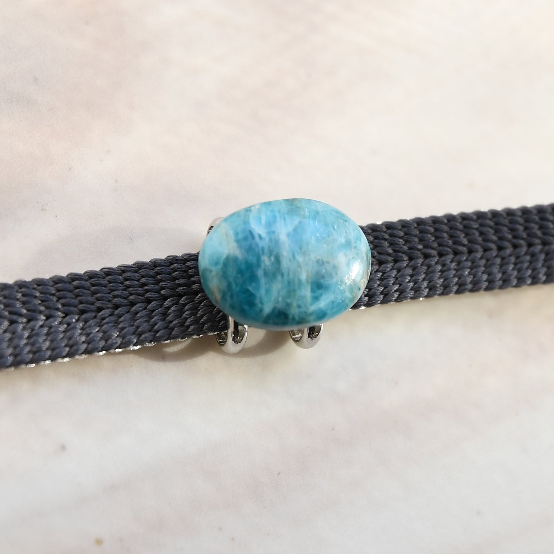 ブルーアパタイトの帯留〈オーバル〉― 海辺の風をまとって