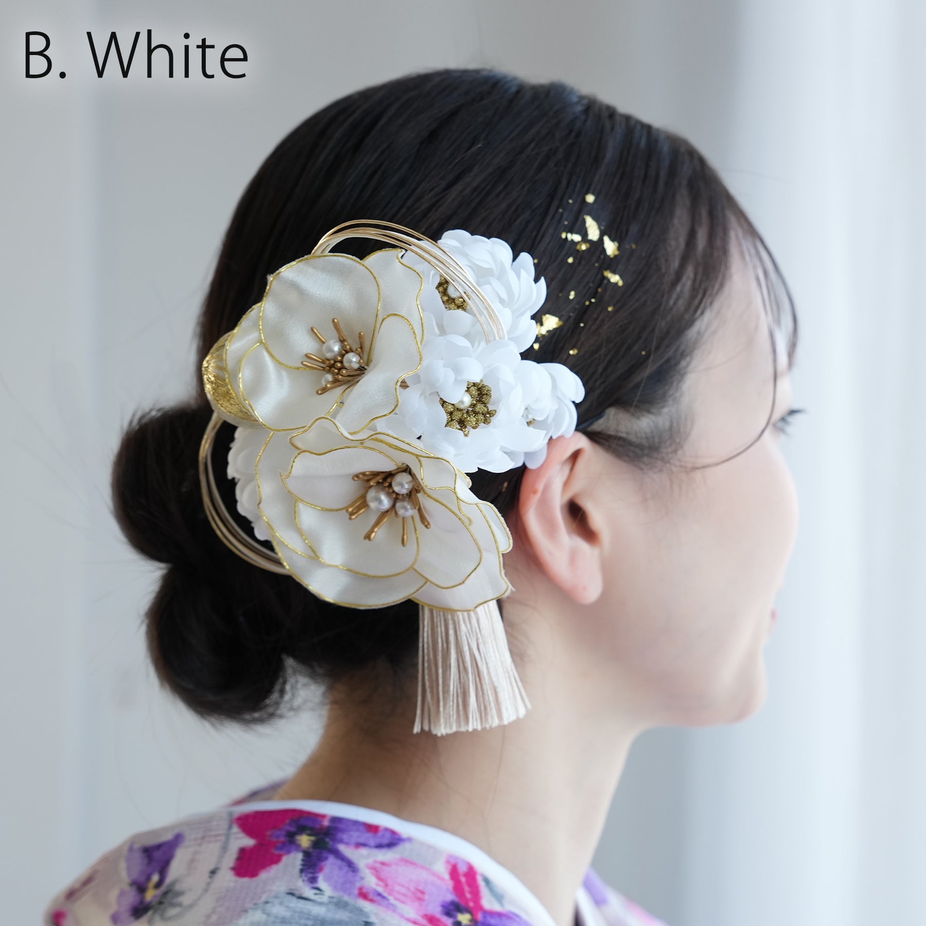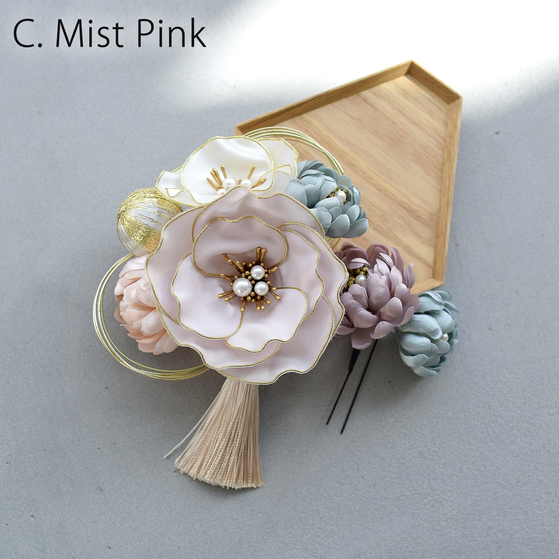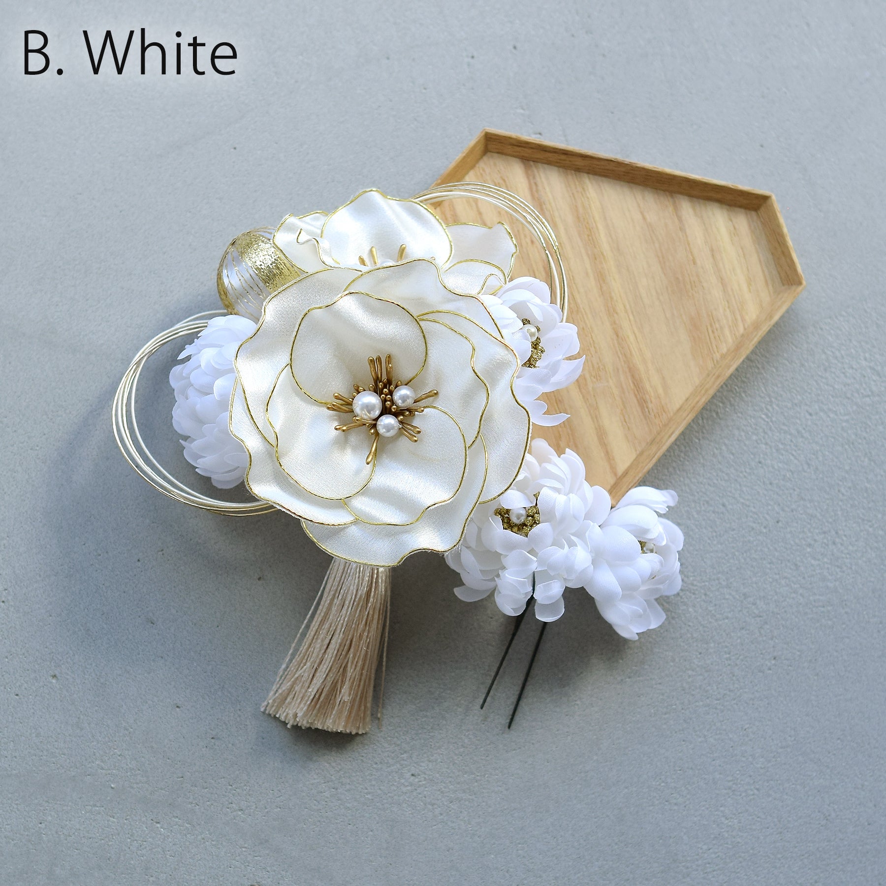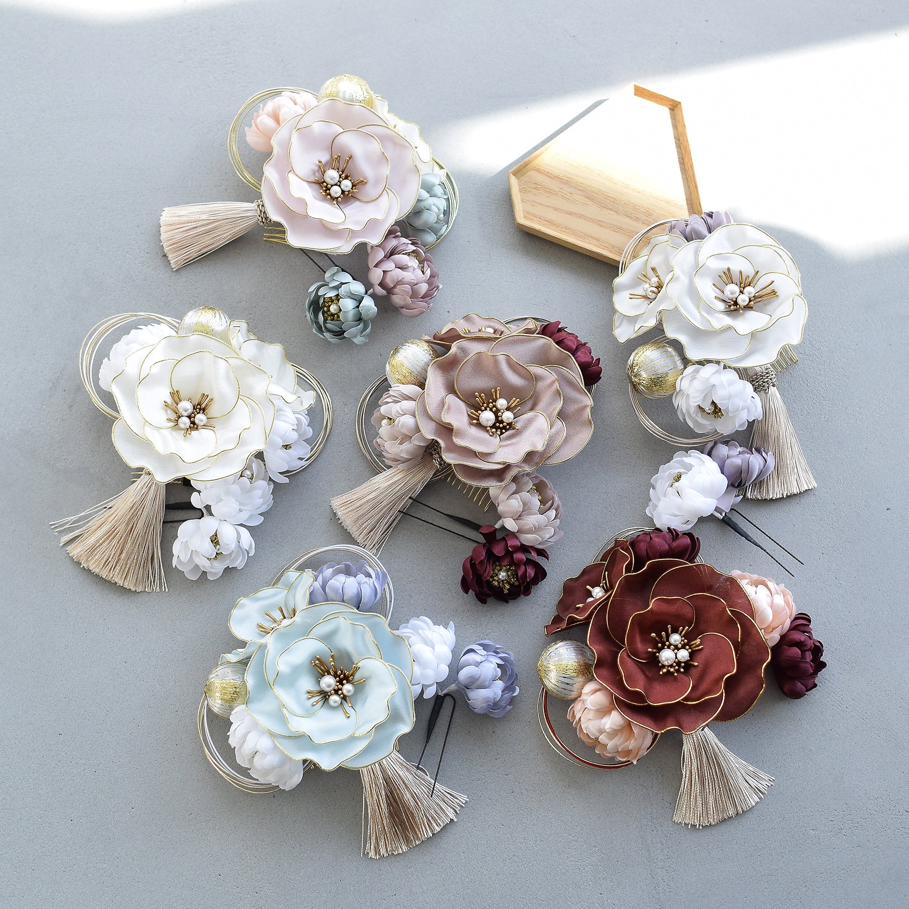 【髪飾り シルクフラワー芙蓉 コームUピン2点セット】水引 タッセル 菊 ヘアアクセサリー 日本製 成人式振袖や卒業式袴にも(5432635401)【取り寄せ品】