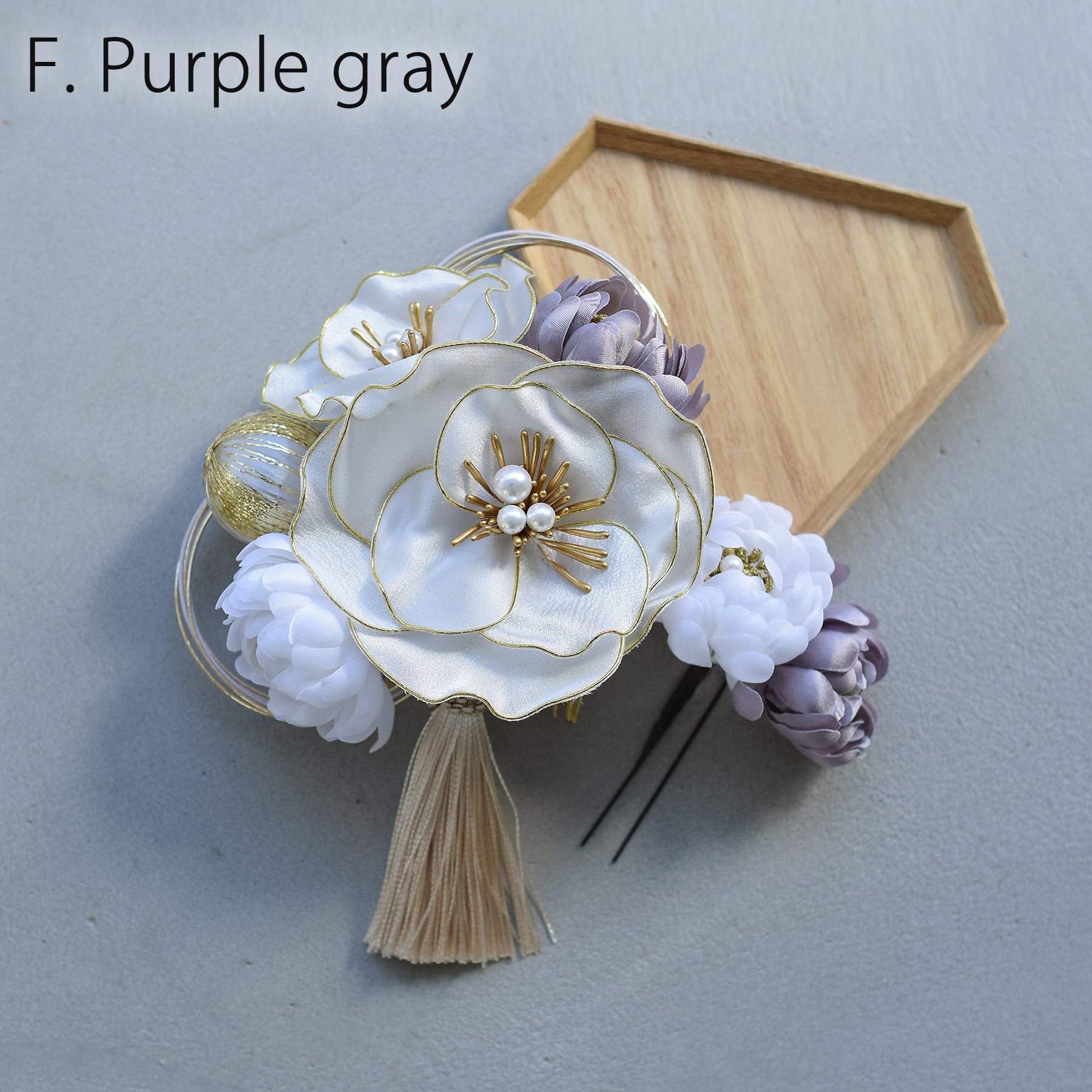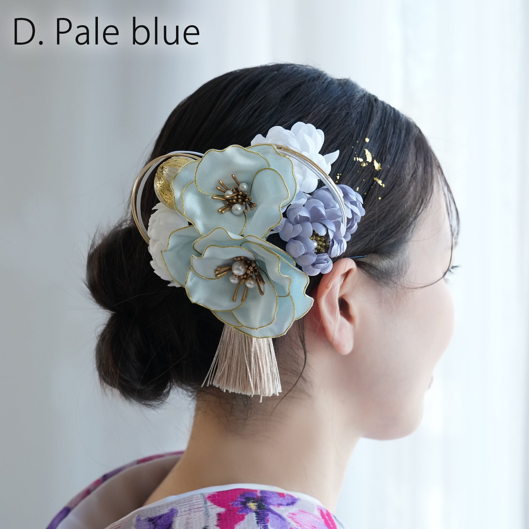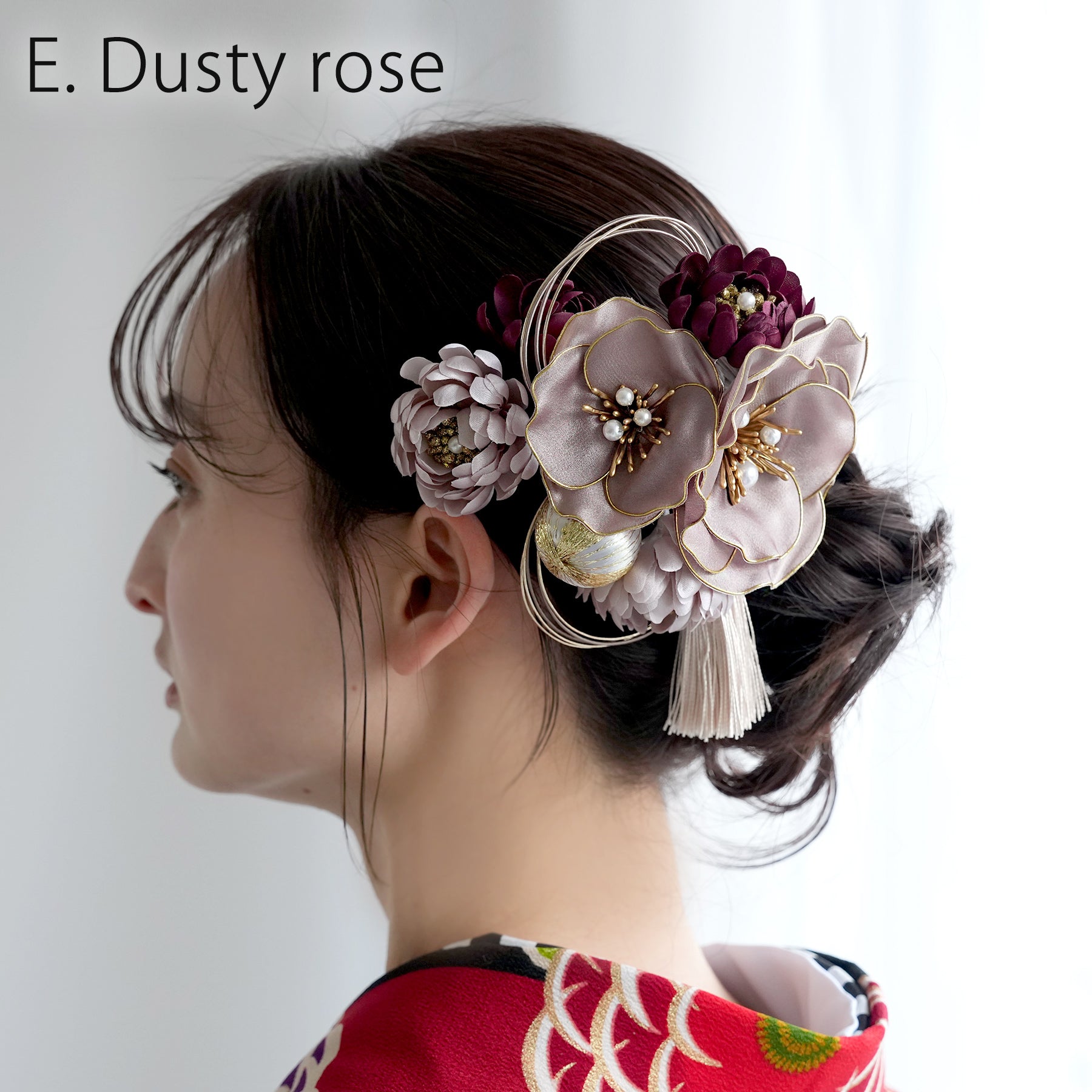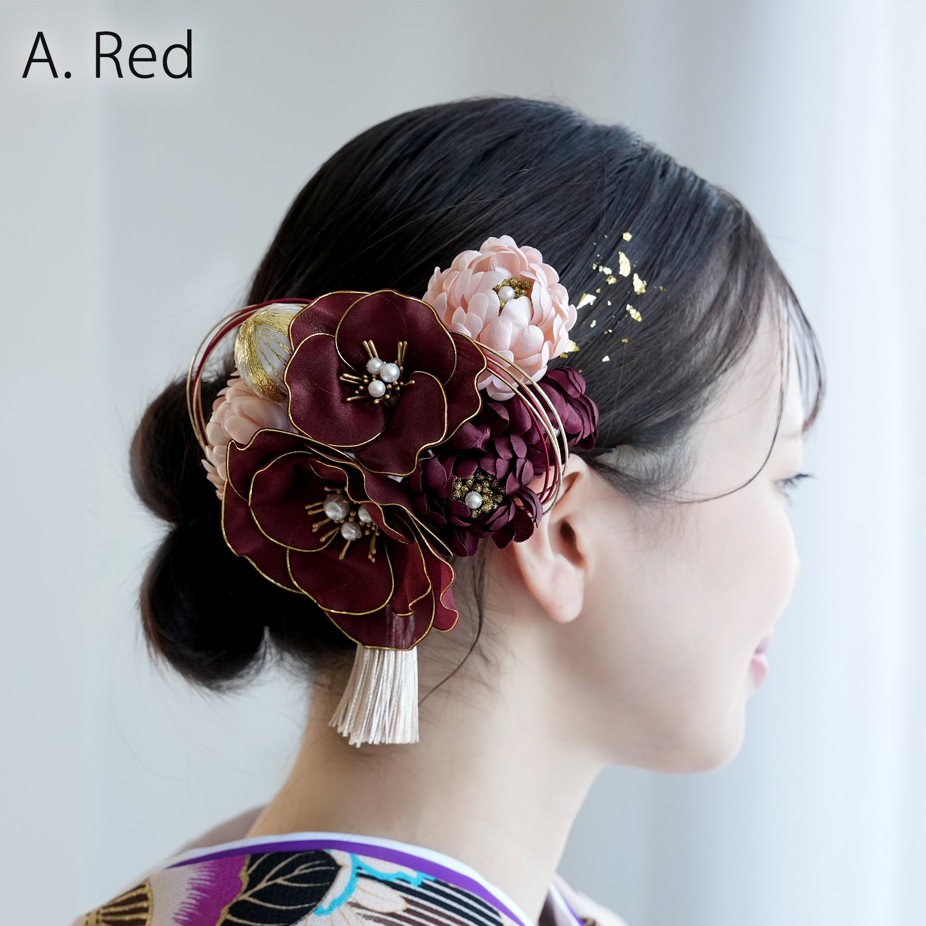 【髪飾り シルクフラワー芙蓉 コームUピン2点セット】水引 タッセル 菊 ヘアアクセサリー 日本製 成人式振袖や卒業式袴にも(5432635401)【取り寄せ品】