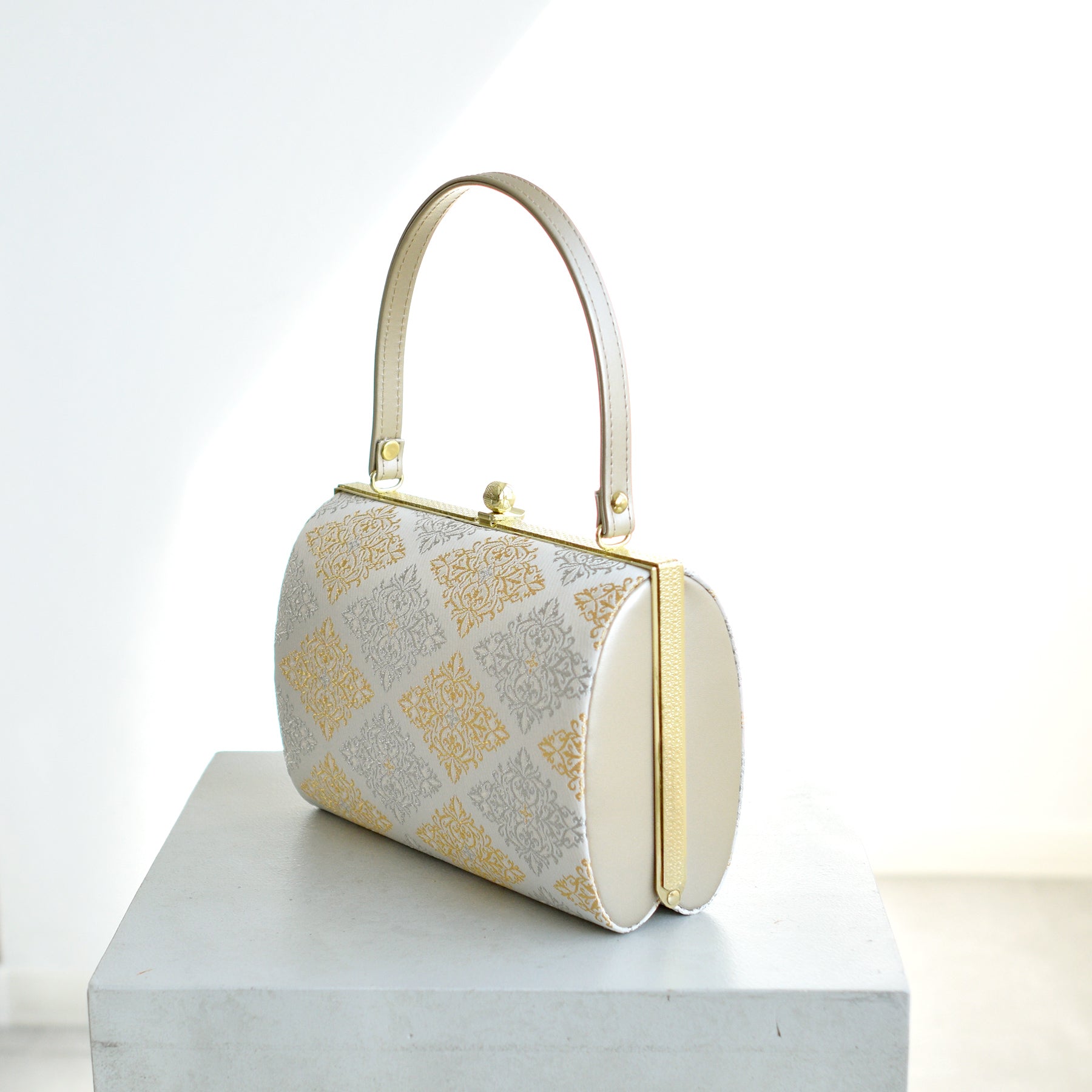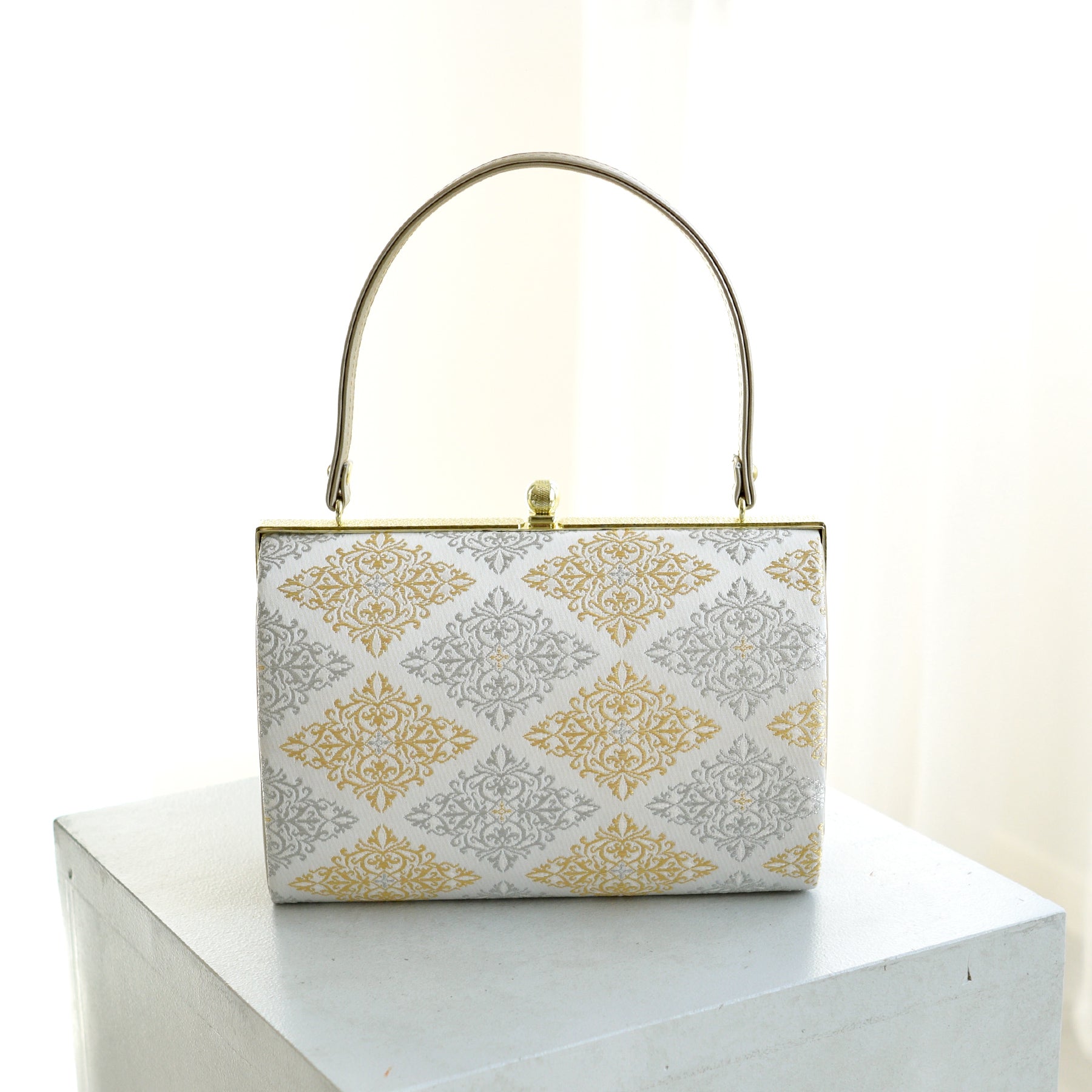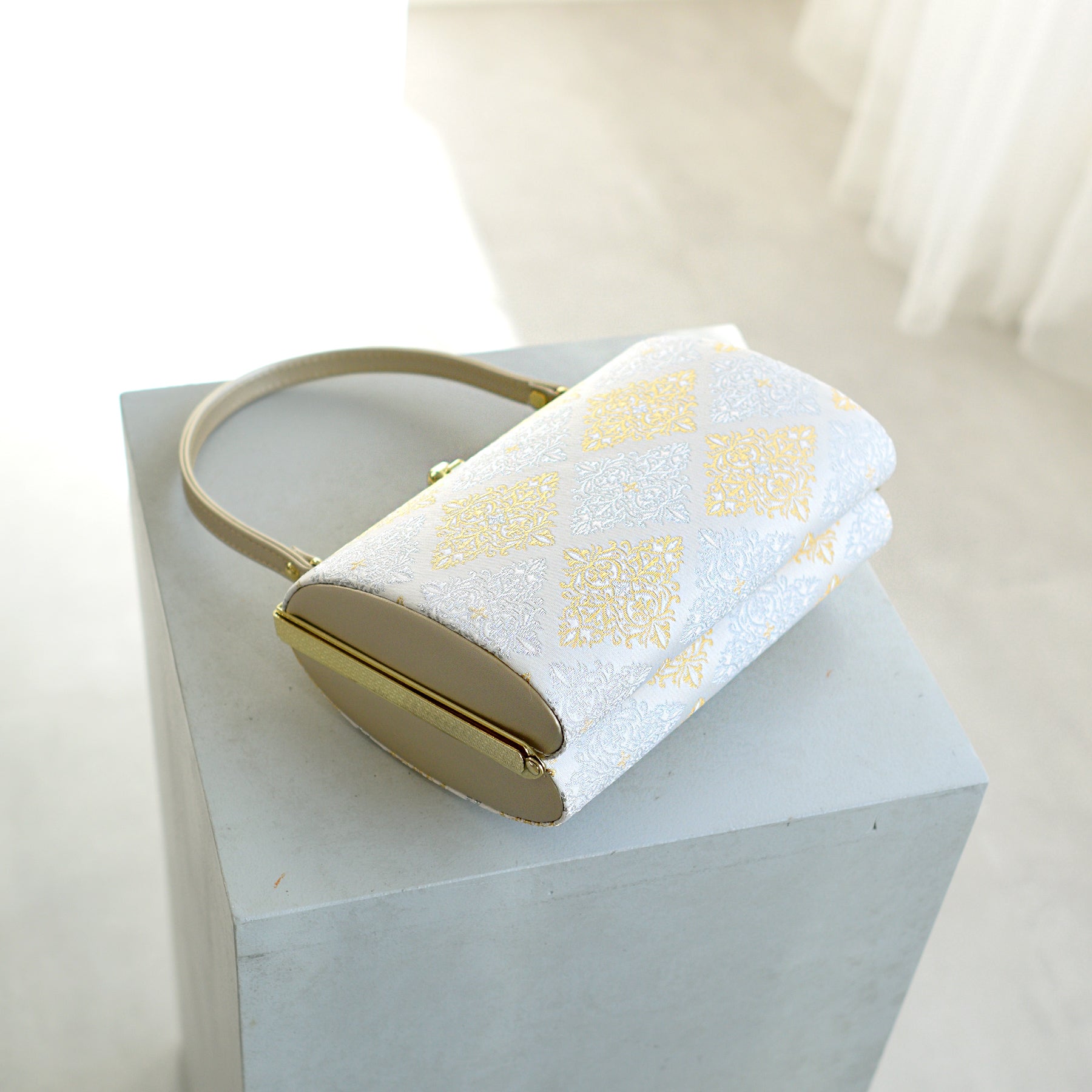 草履バッグ セット 瑞祥菱・白金 西陣帯地 3枚芯 フォーマル用 成人式振袖や卒業式袴、結婚式などの訪問着に(5338613200)