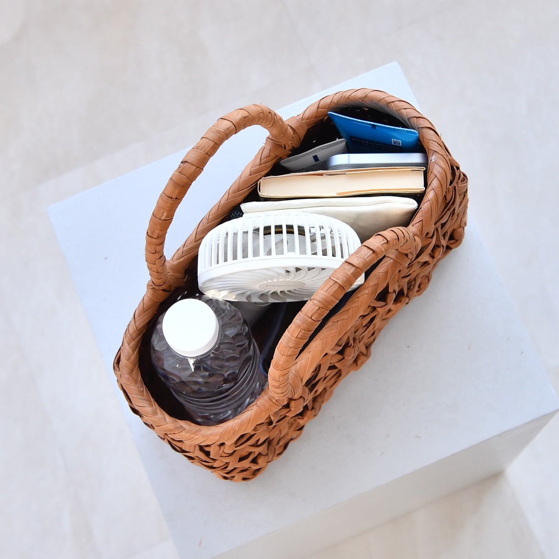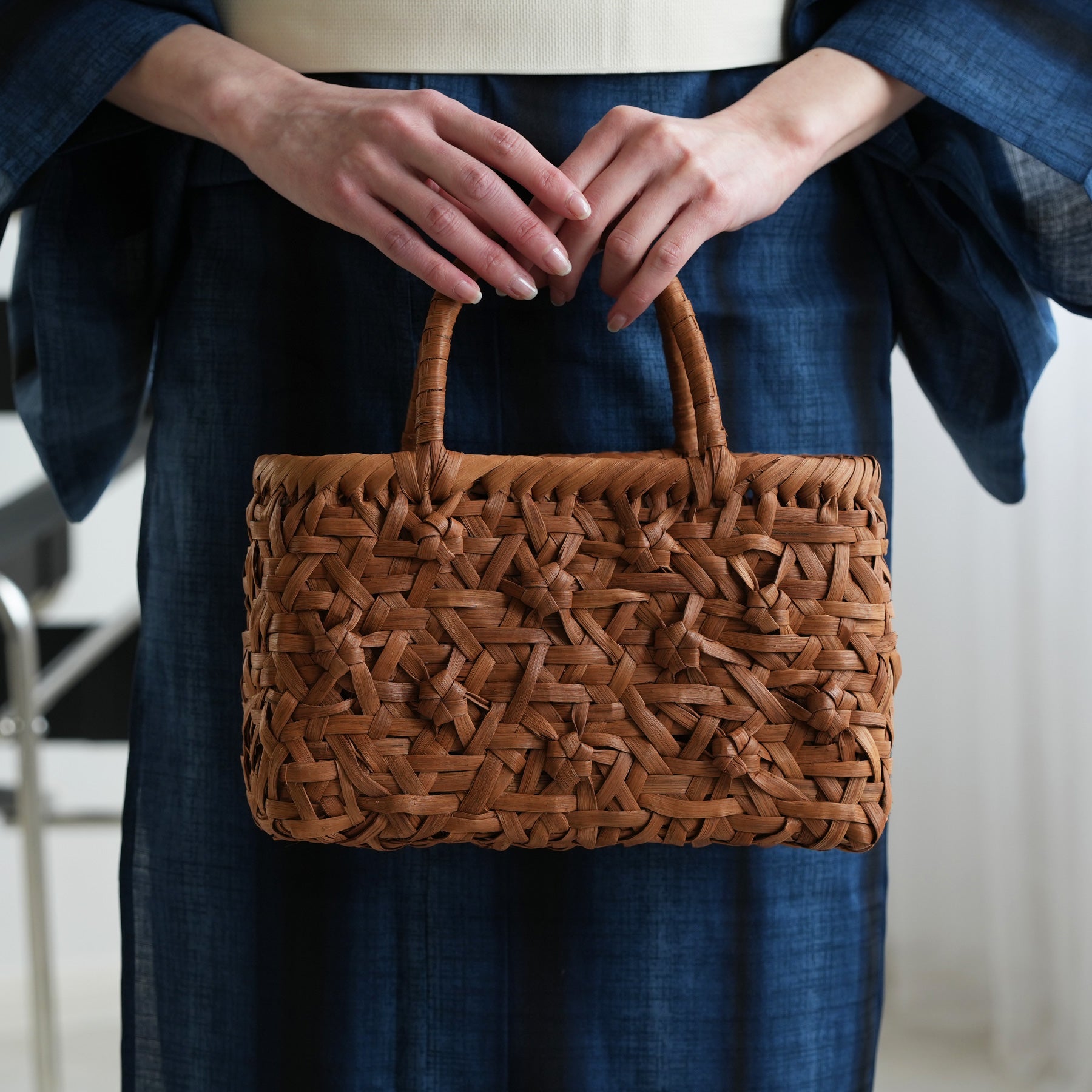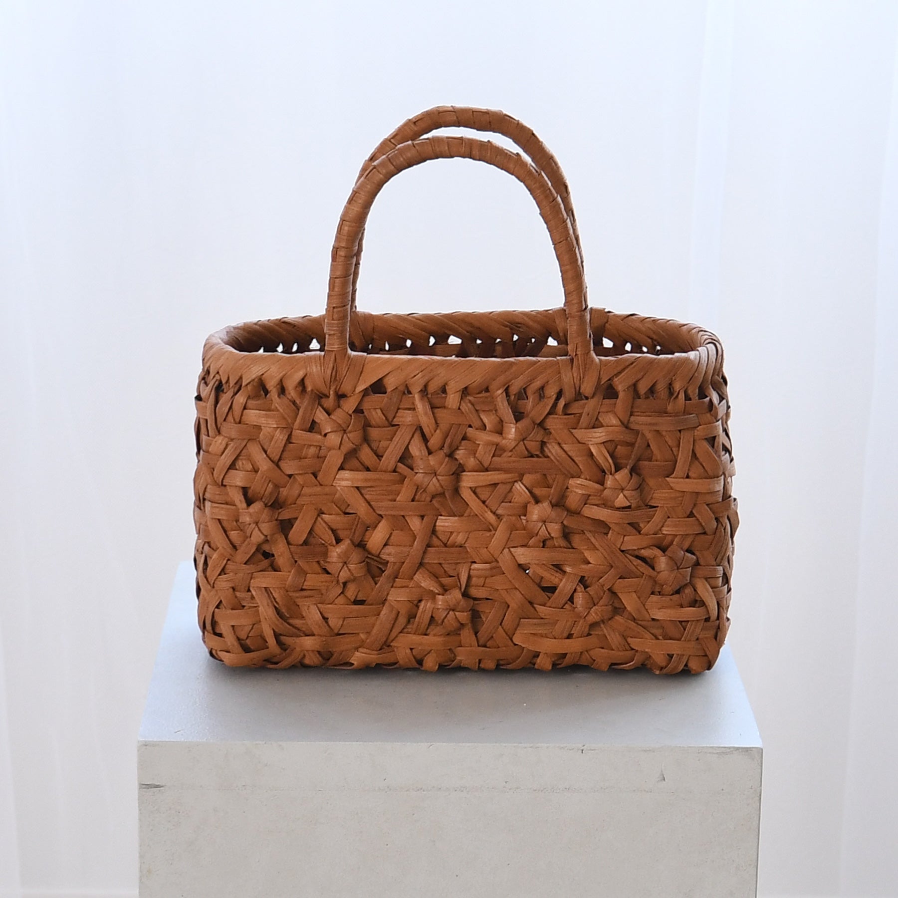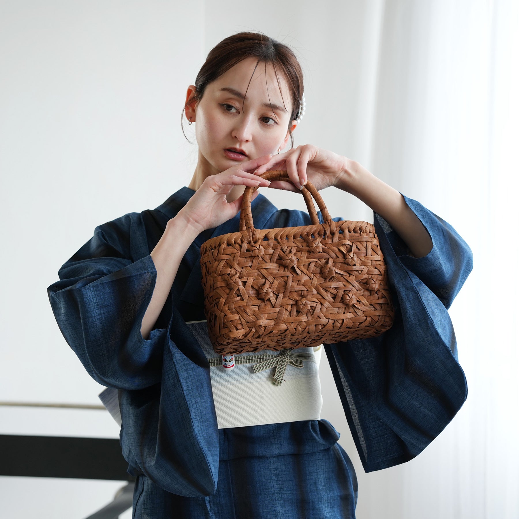 自然の恵みをそのまま編み上げた山葡萄のかごバッグ。